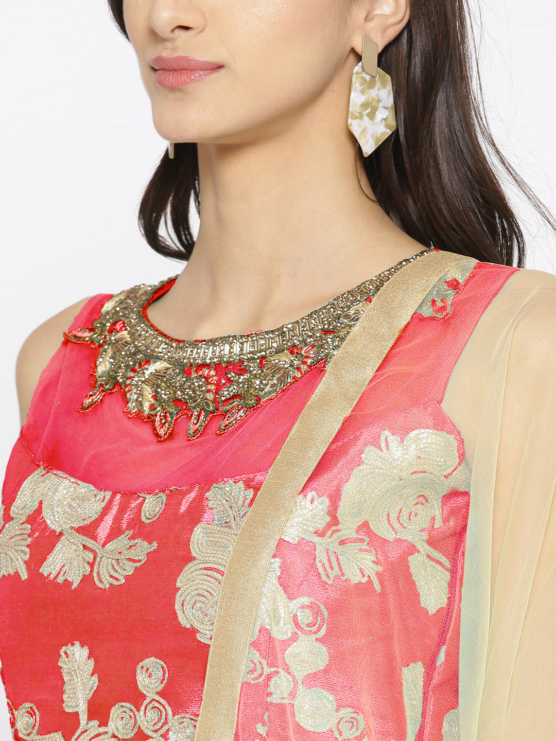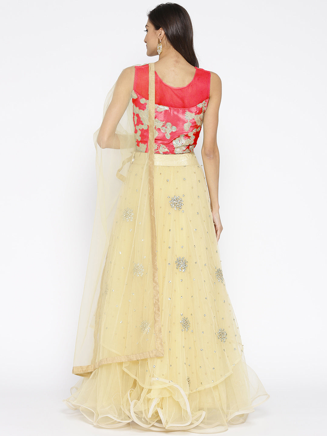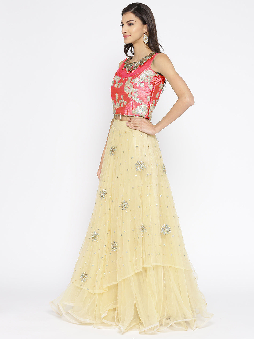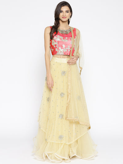 Red Resham and Nakshi Embellished Crop top Lehanga set