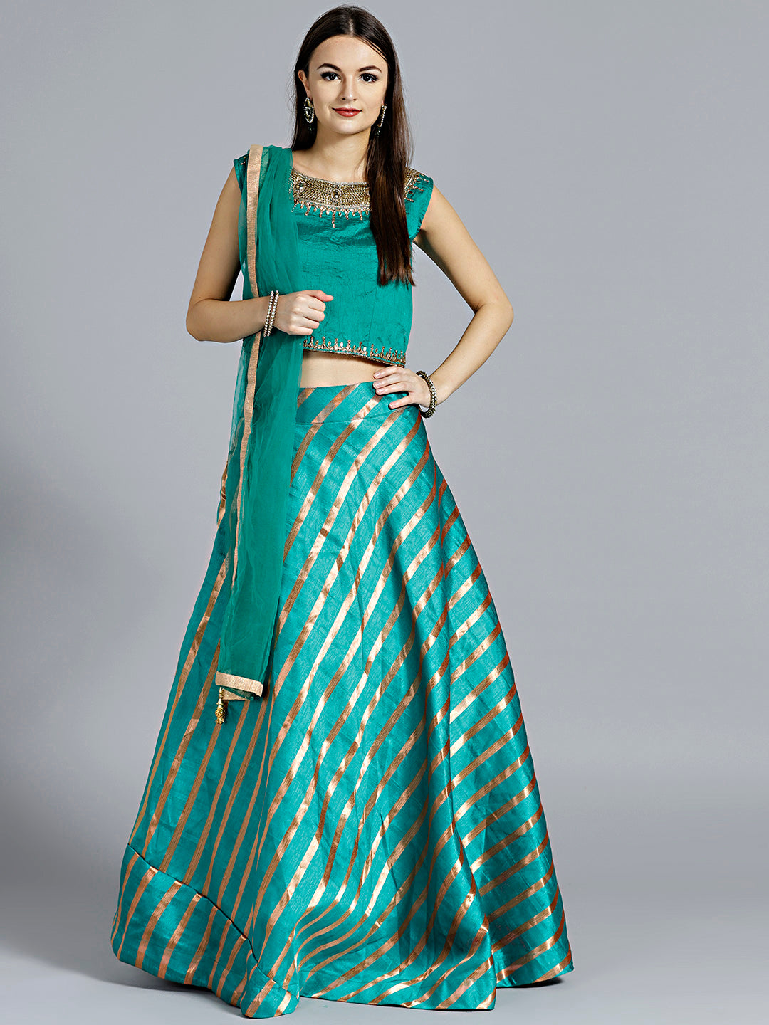 Contemporary Striped Lehenga with Zircon Embellished Crop top