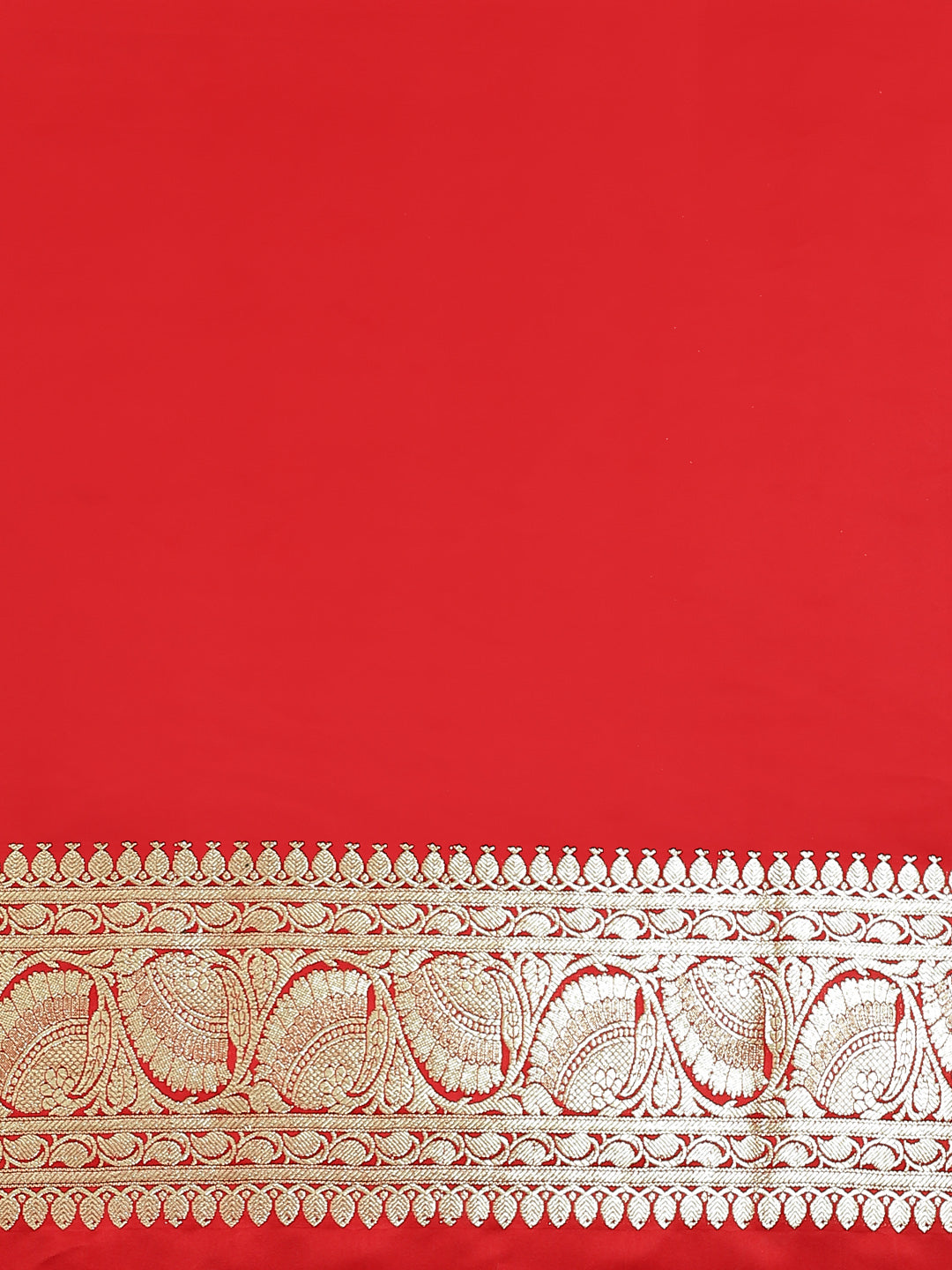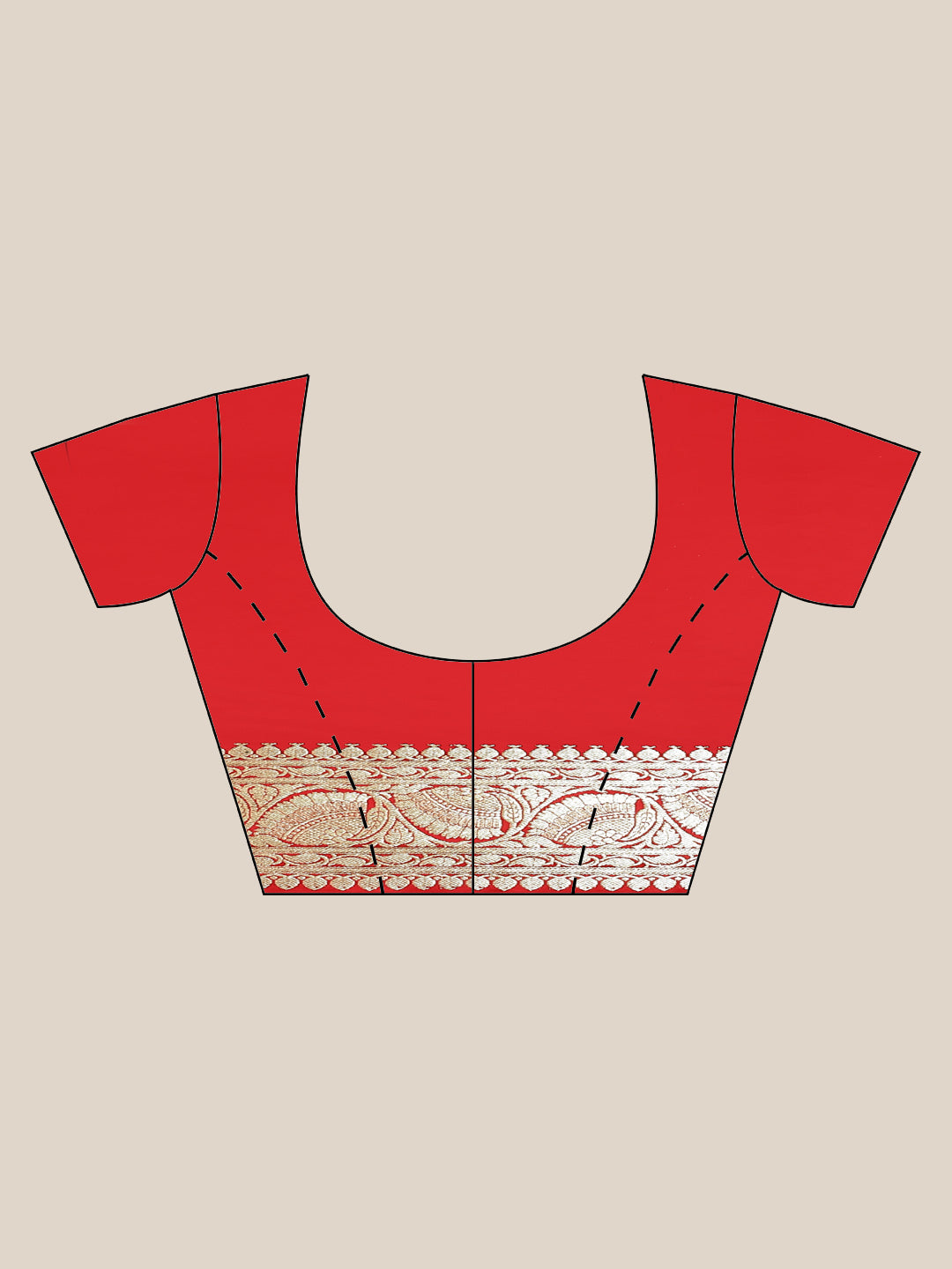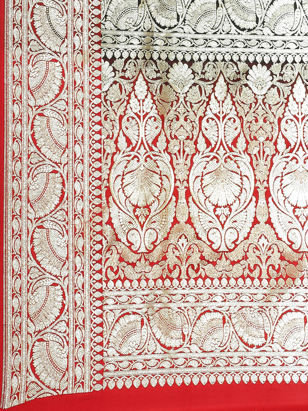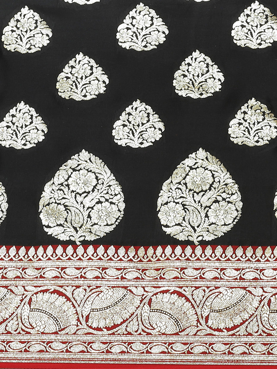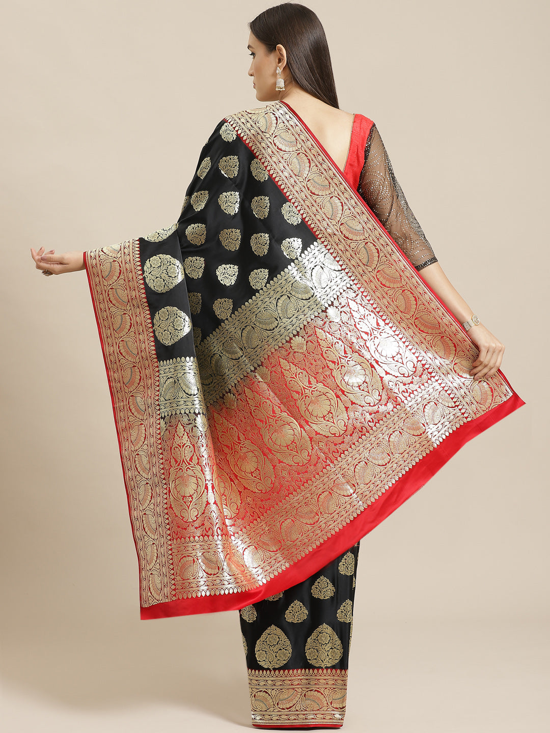 Banarasi Silk Blend Embossed Handloom Saree with Paisley Weaving & Contrast Border,Pallu
