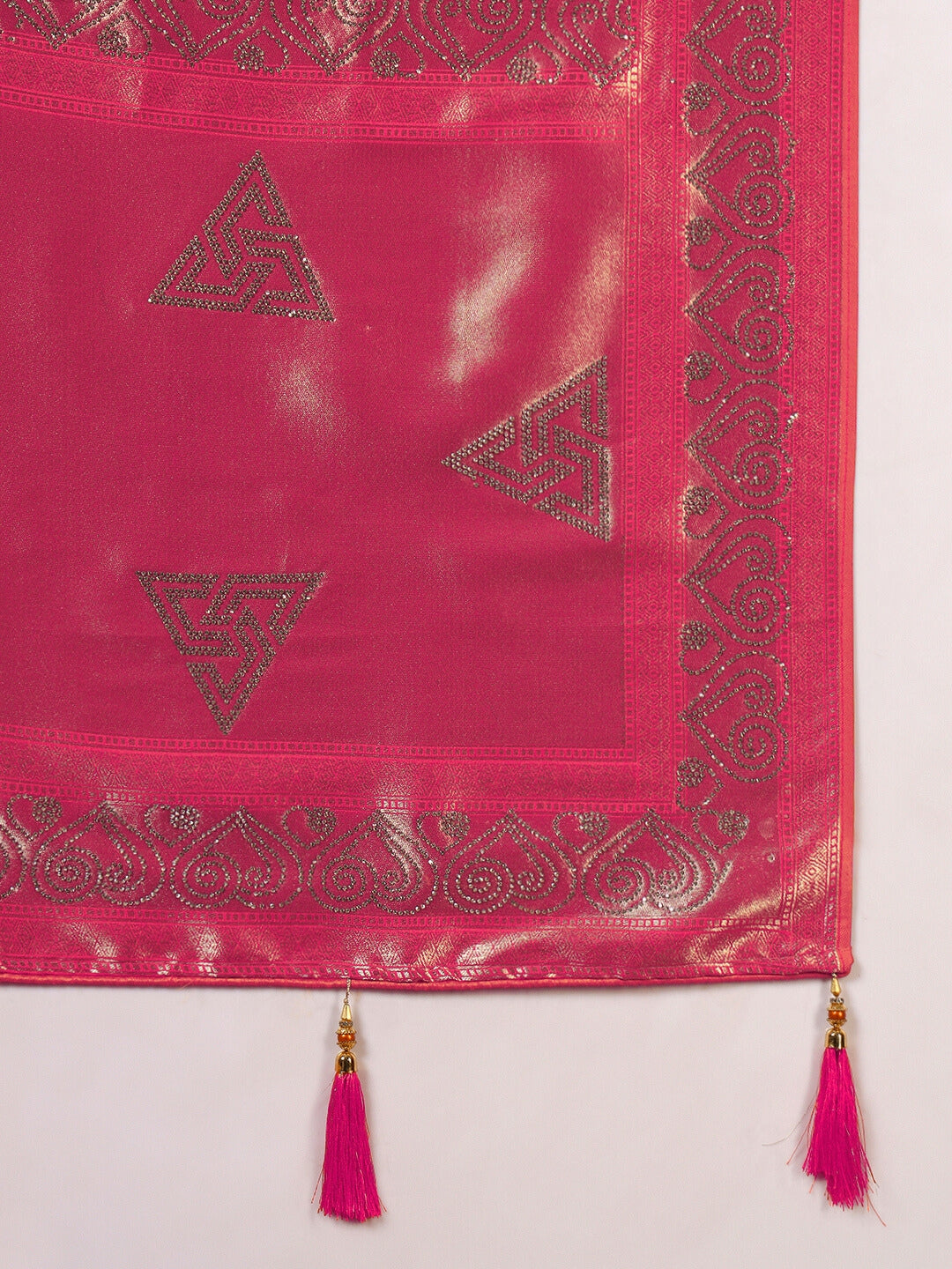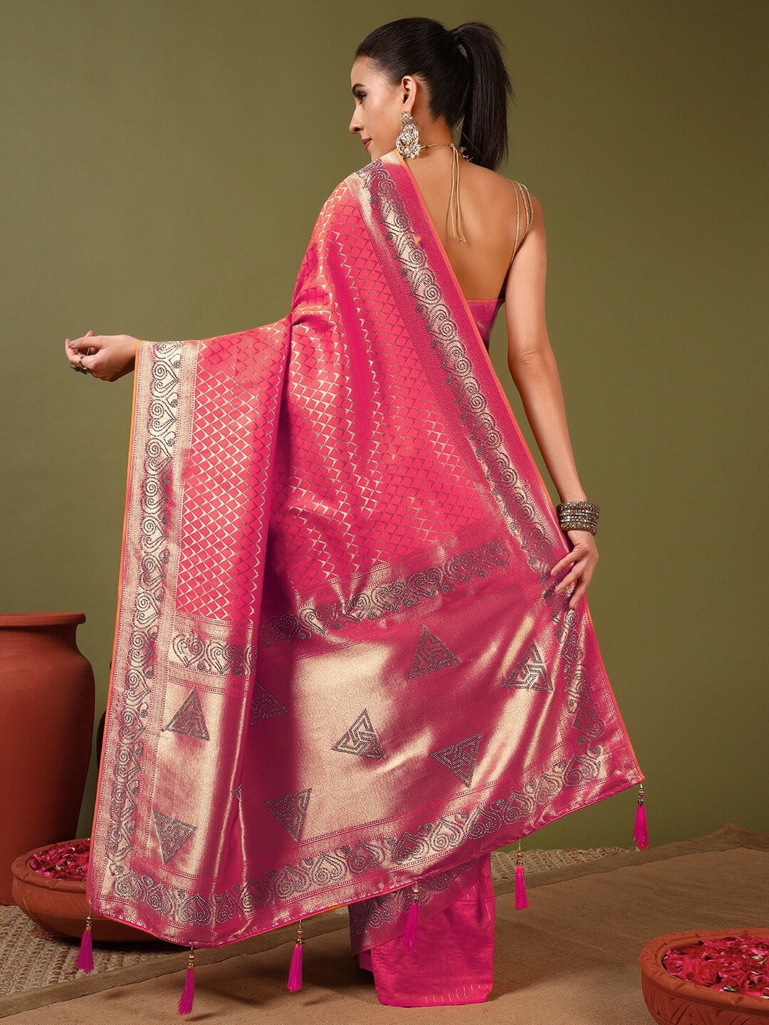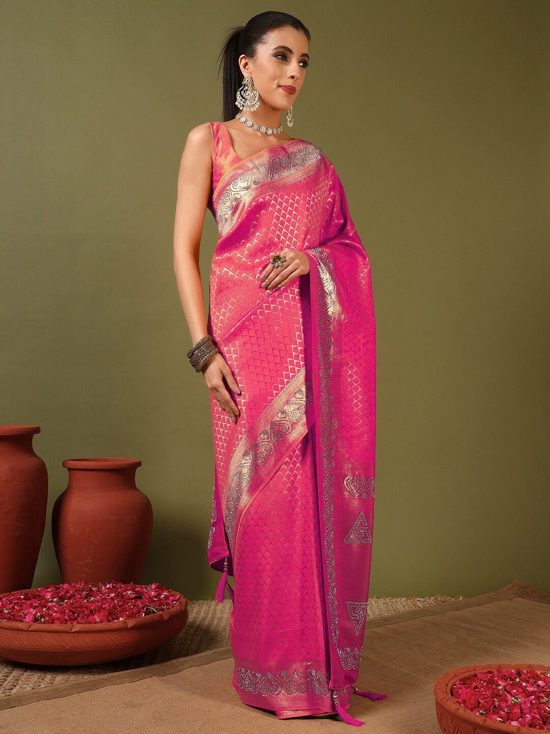 Banarasi Handloom saree with Lattice Weaving & Crystal Embellished Heart Motif Border