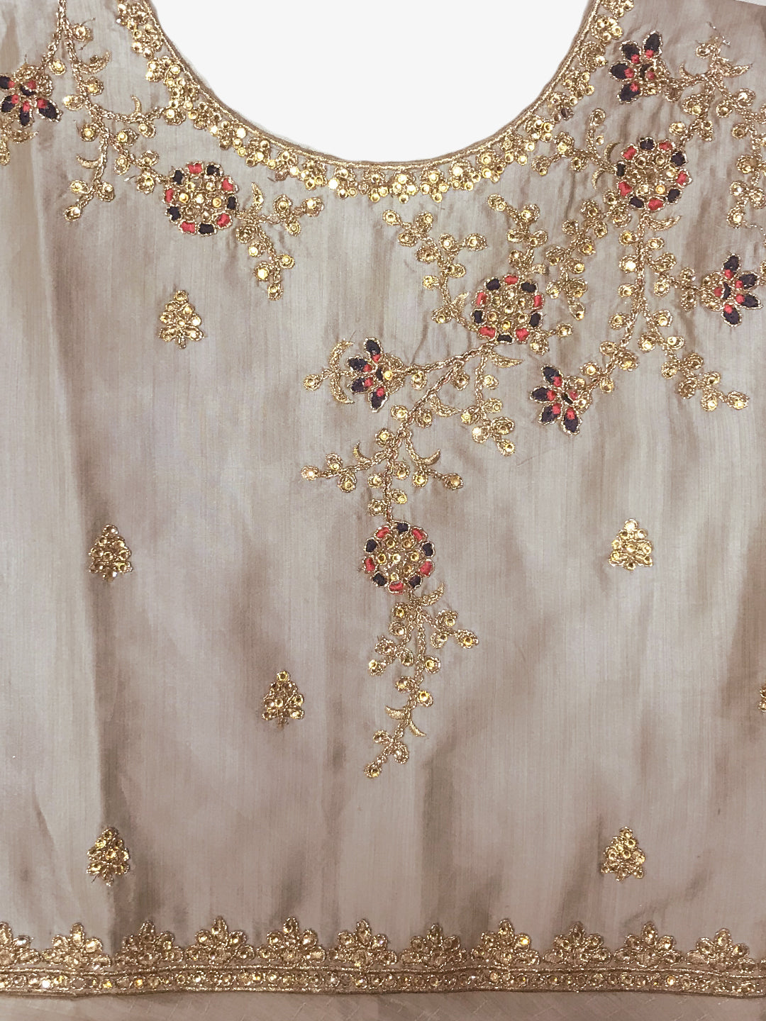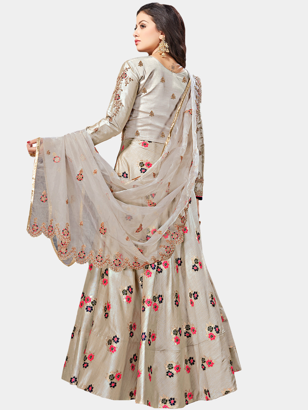 Chhabra 555 Made-to-Measure Beige Embellished Gown with Banarasi weaving and Zari Embroidered Dupatta