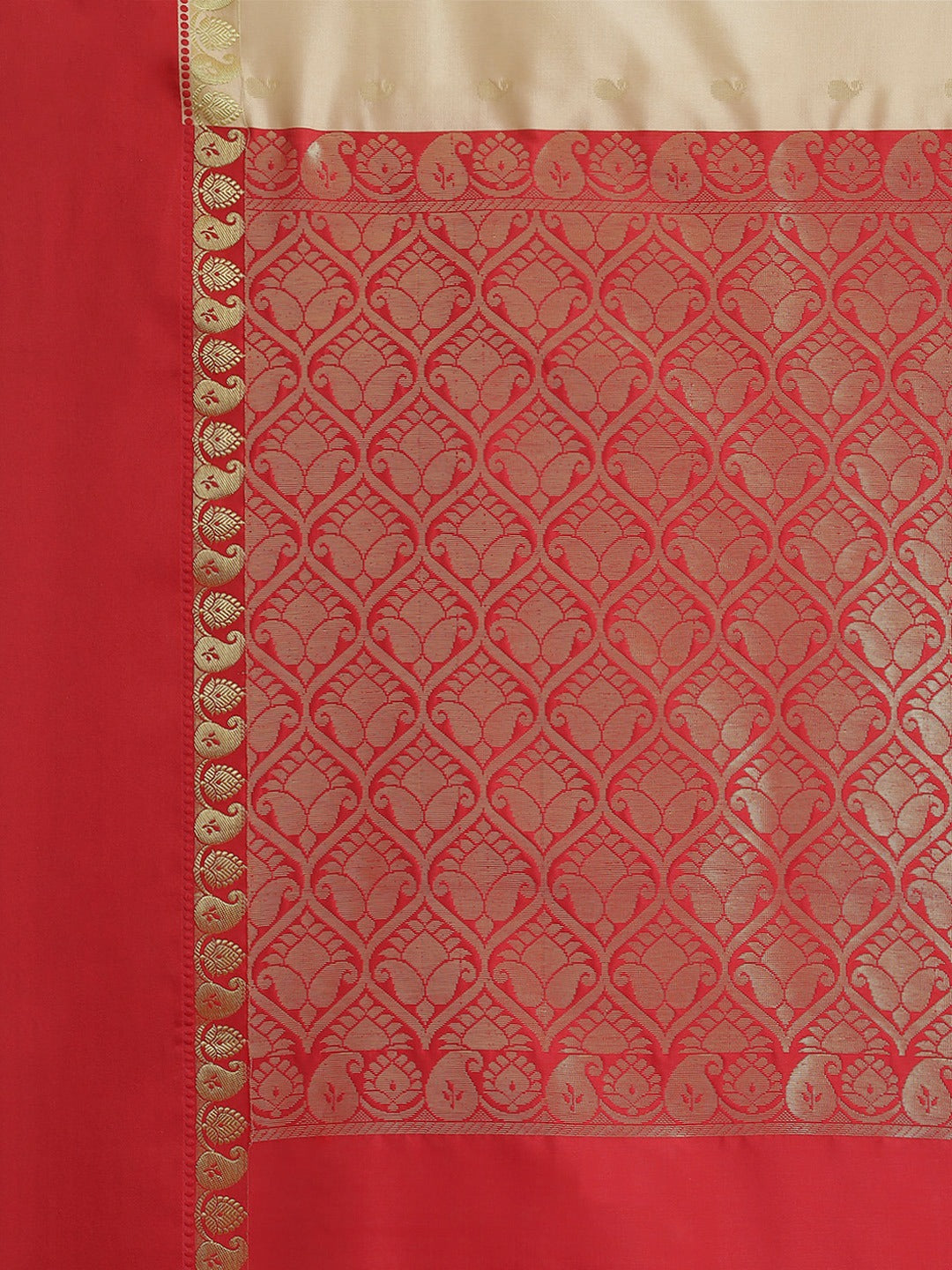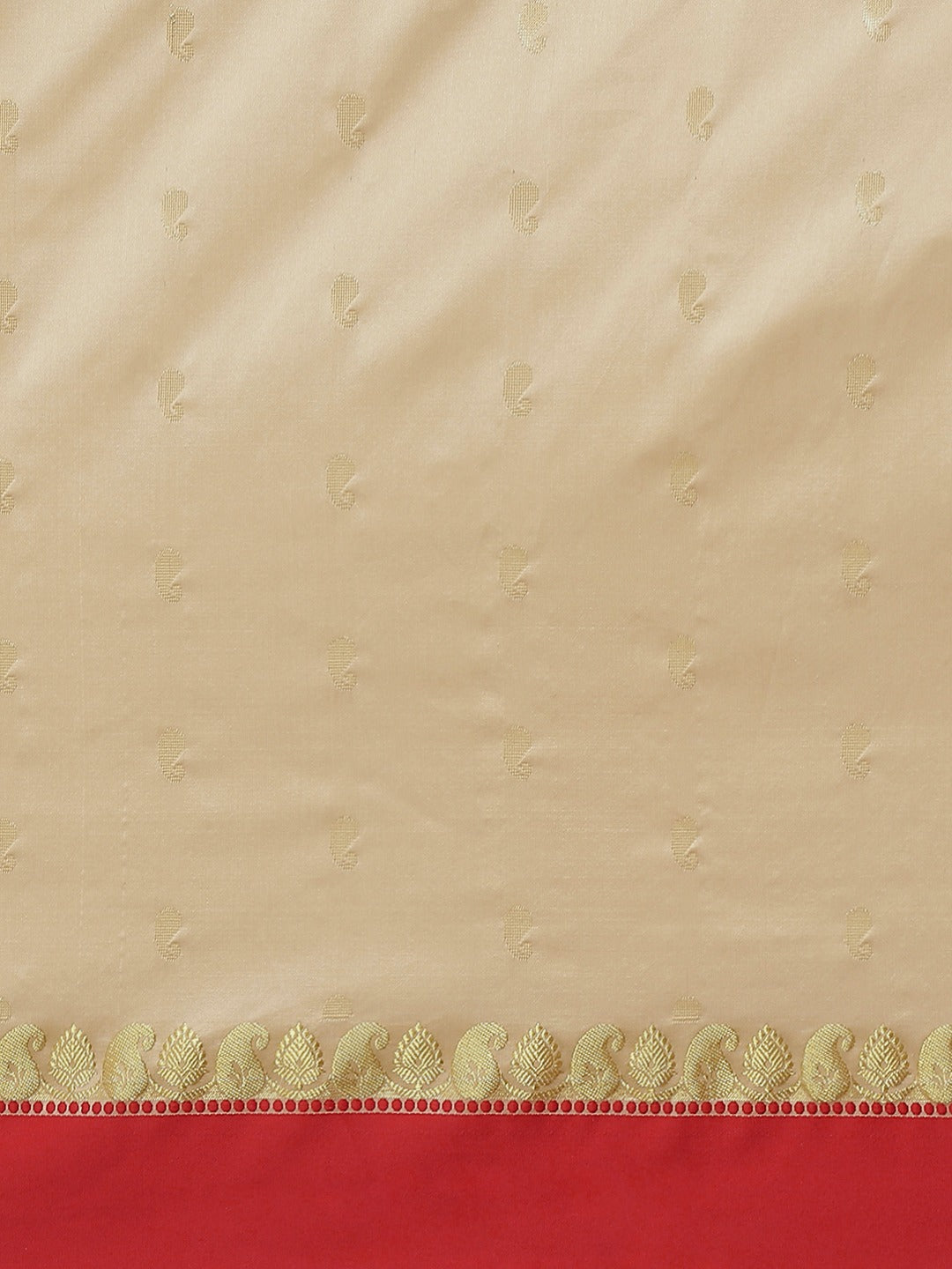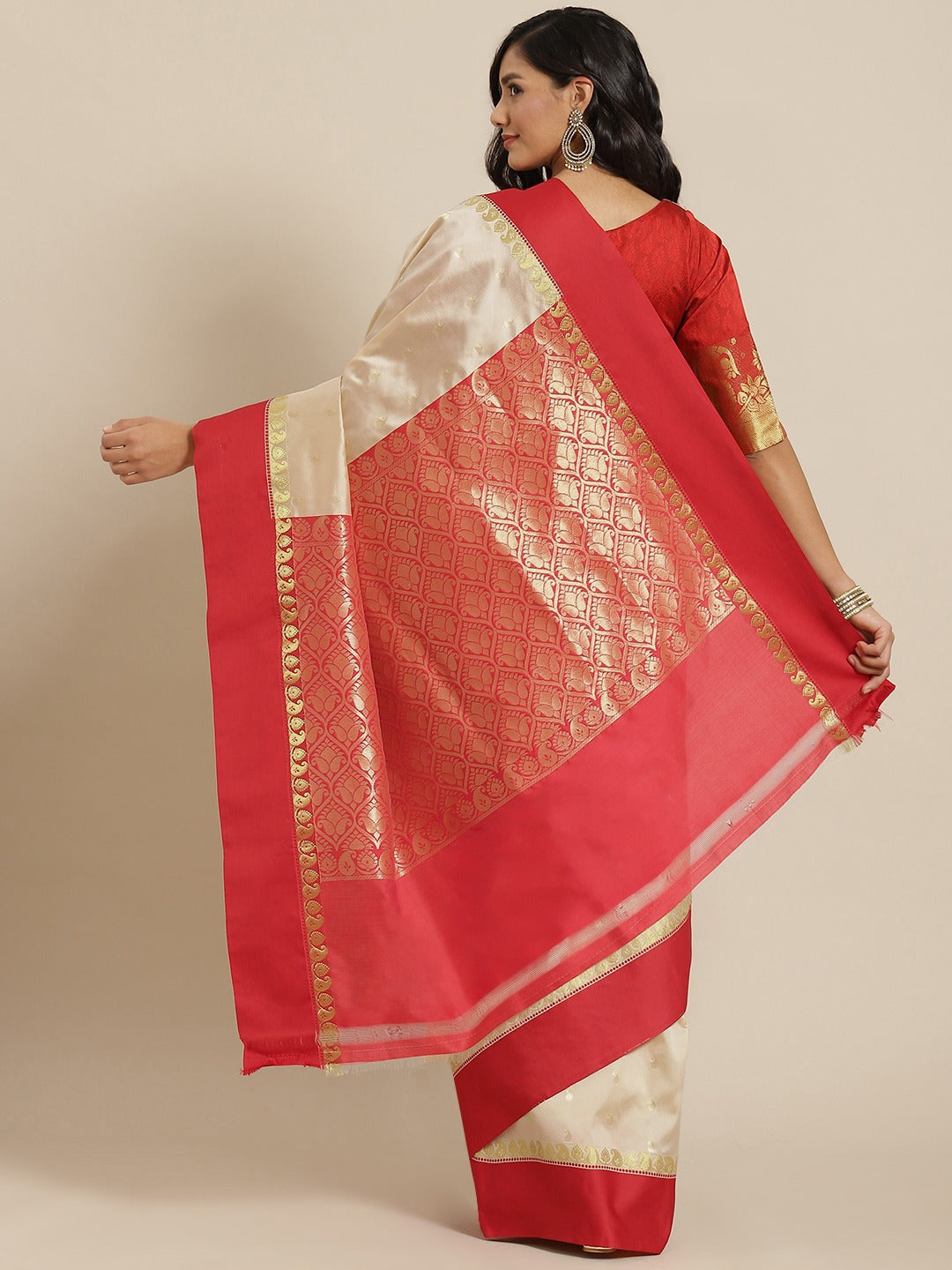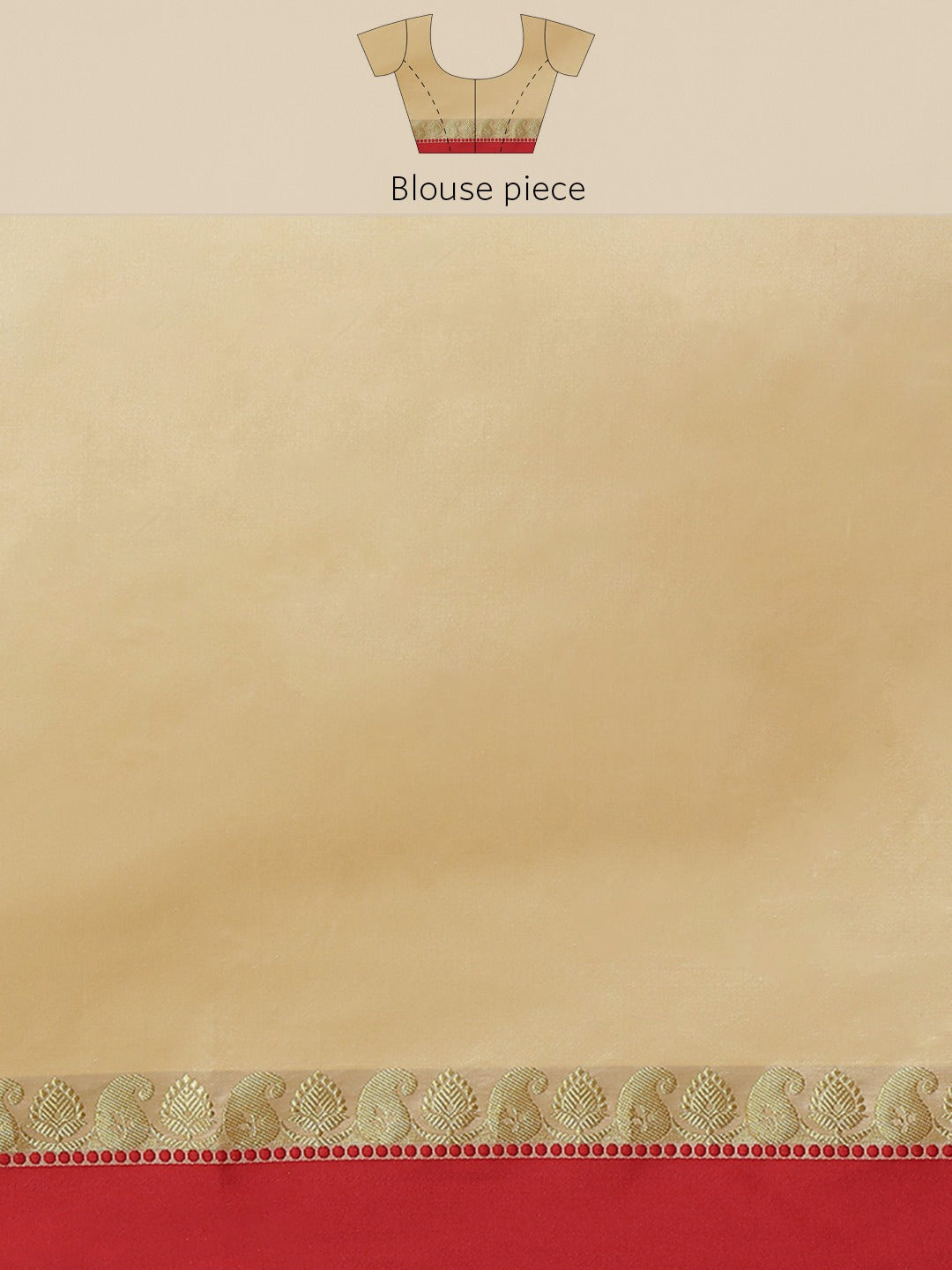 Handloom Bengali Style Kasavu Saree With Red Broad Border