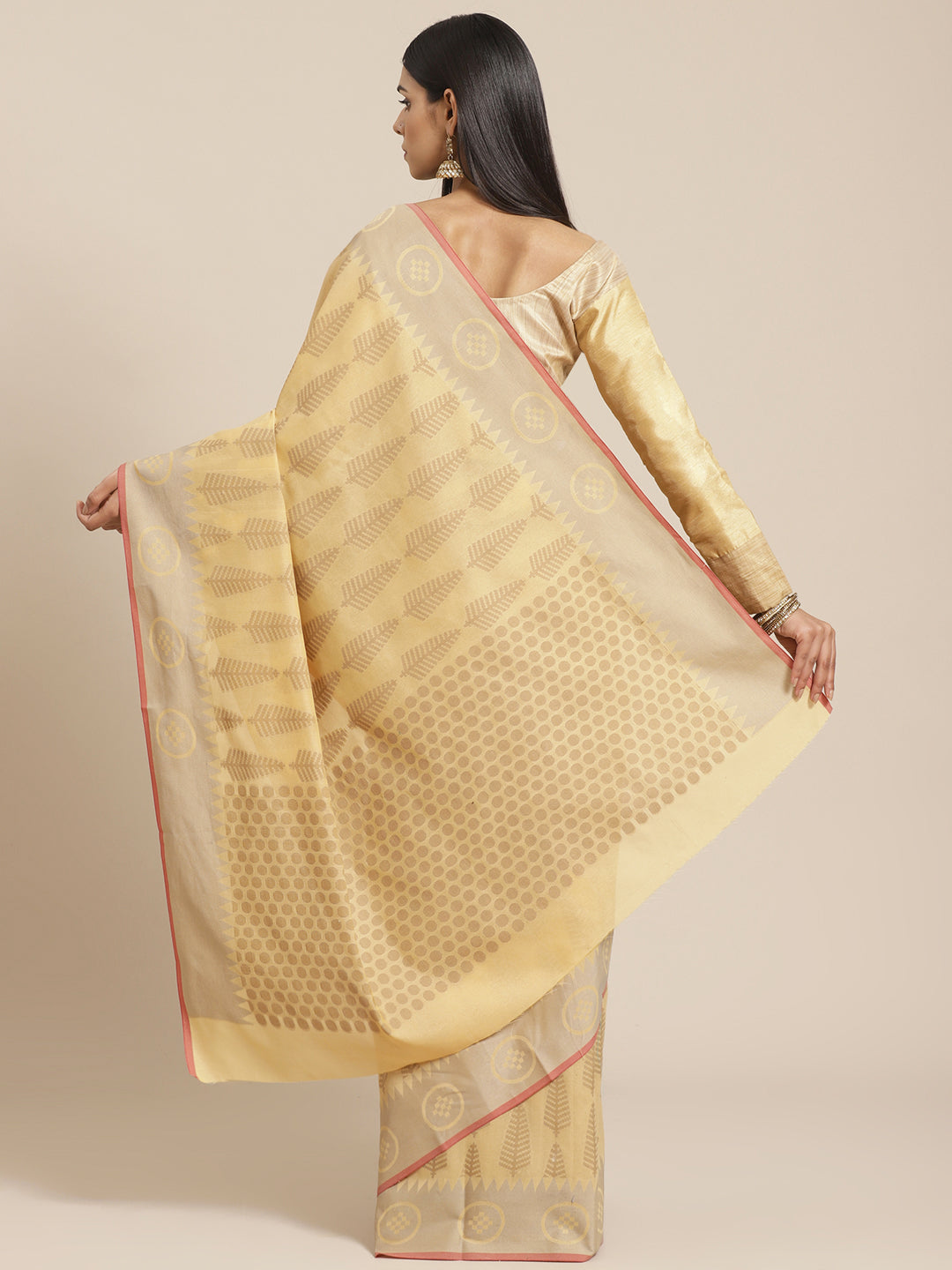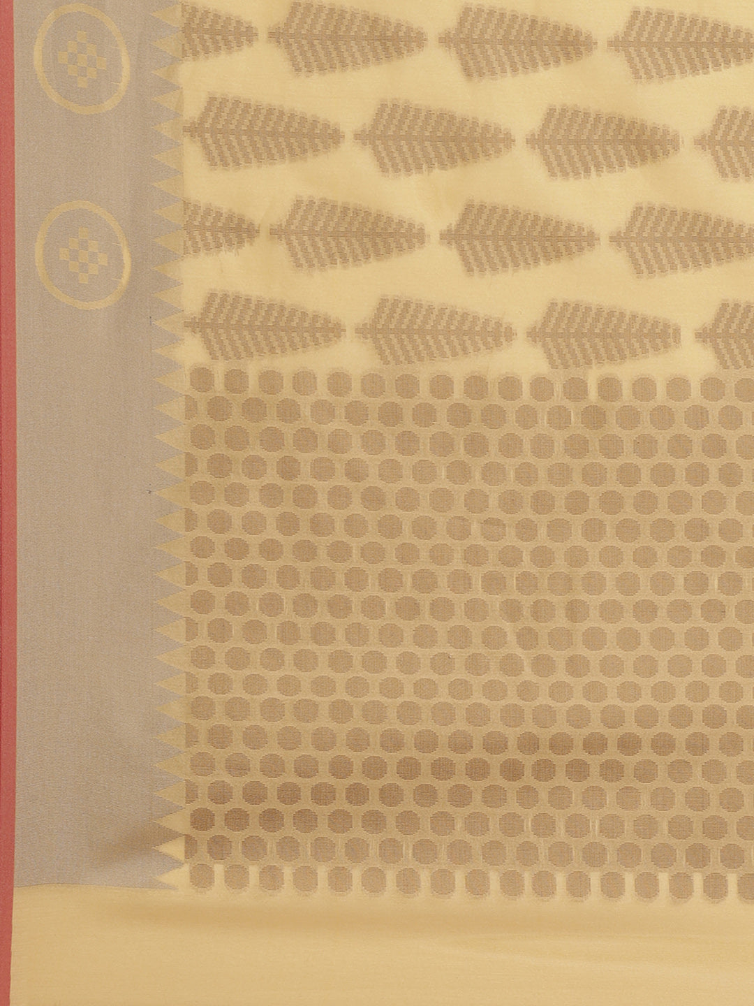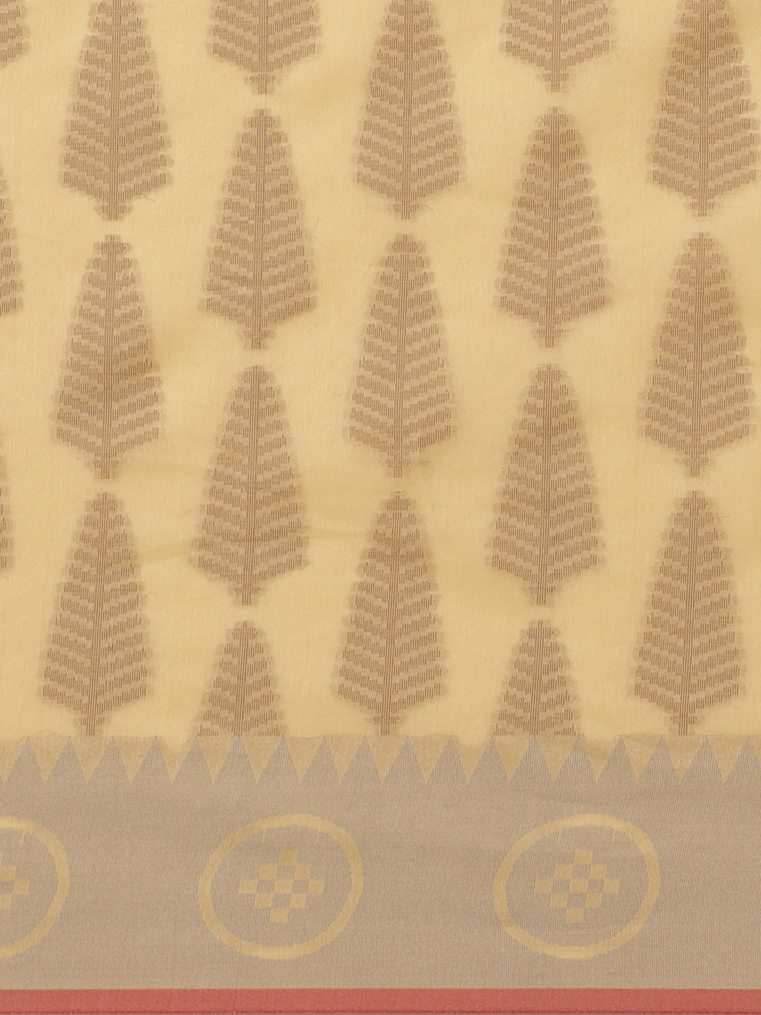 Handloom Chanderi Saree with Tropical woven patterns and a Temple style border