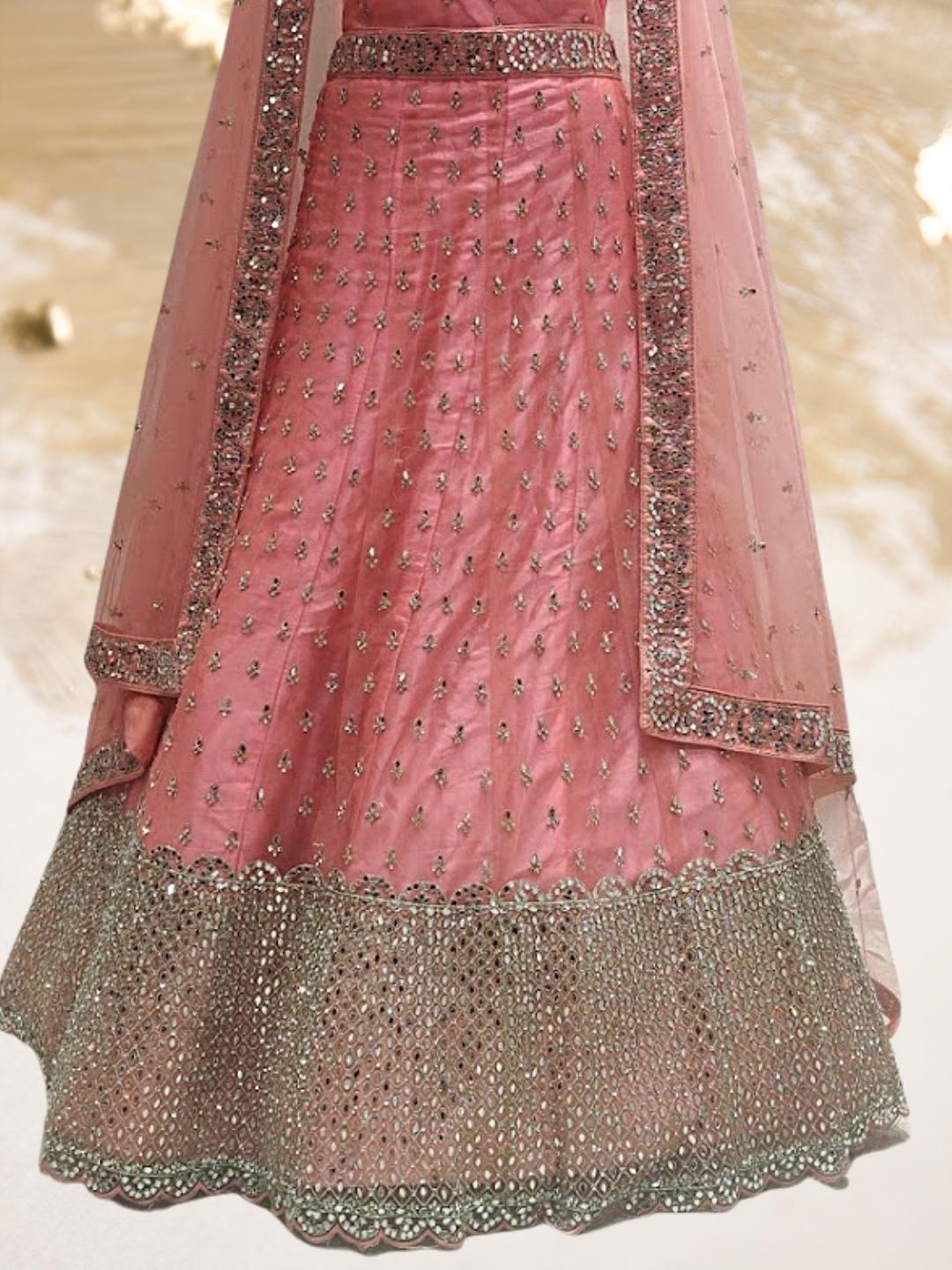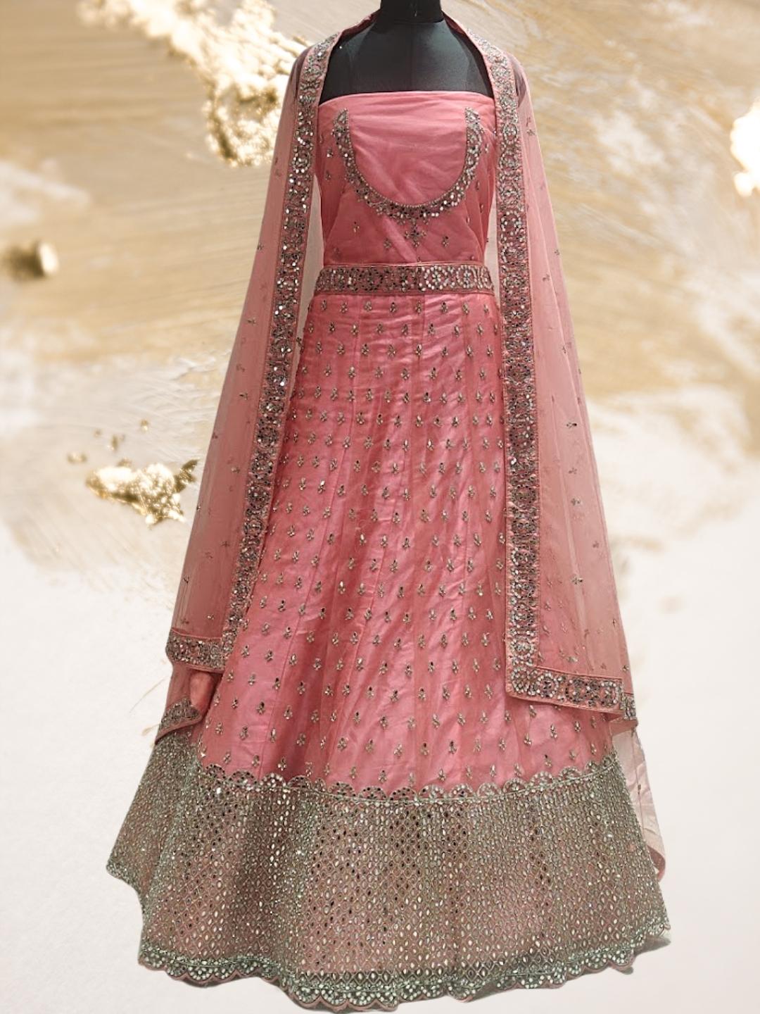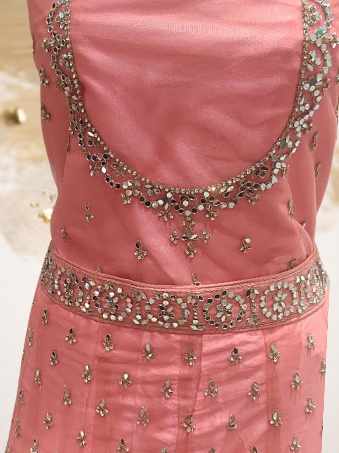 Peach Embellished Stone Work Cocktail Lehenga Choli