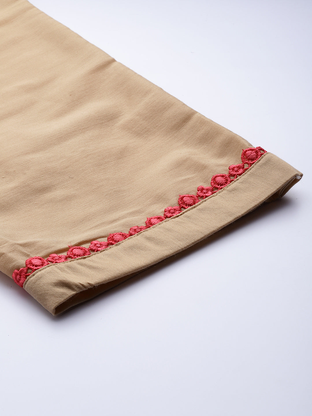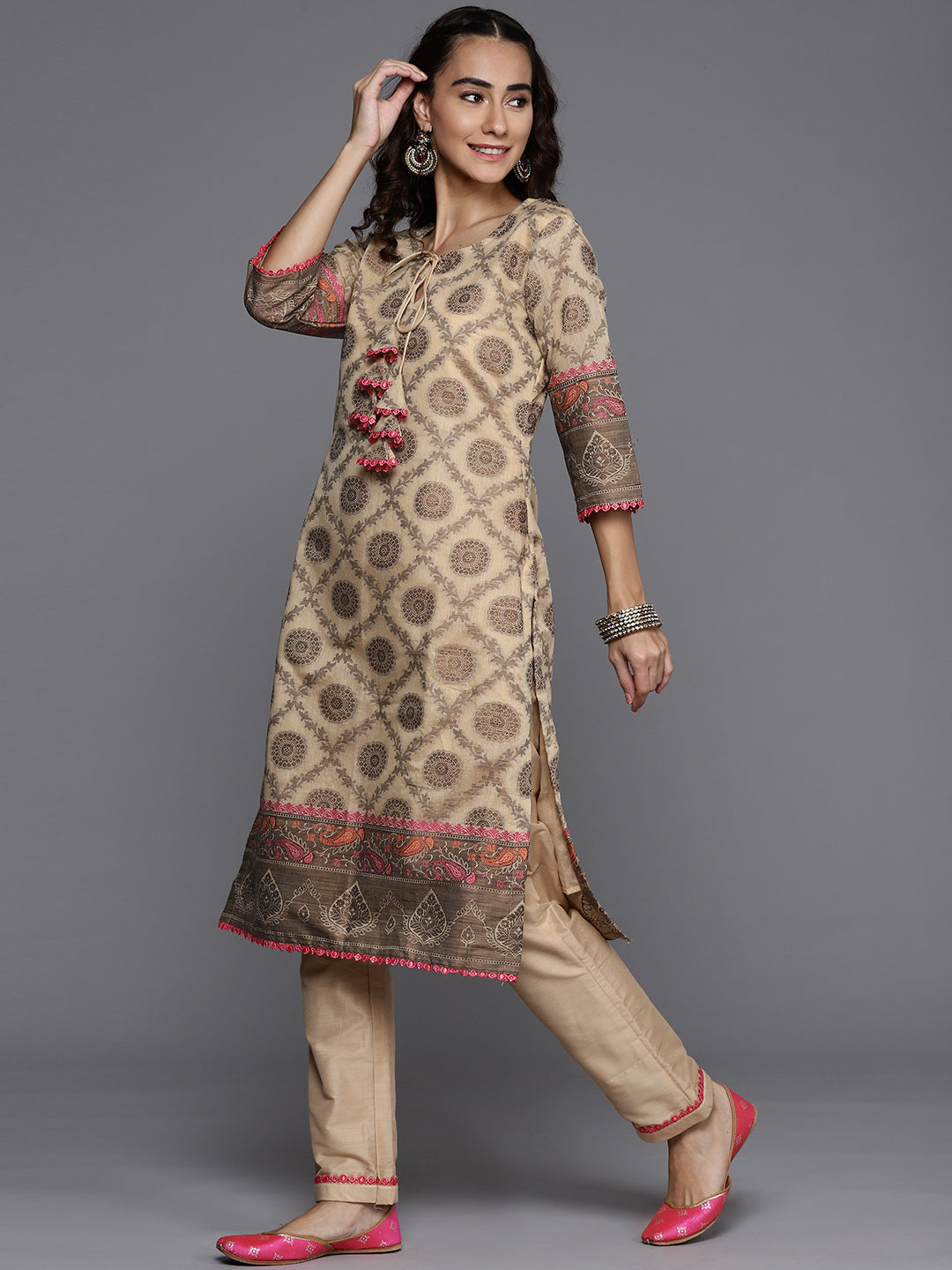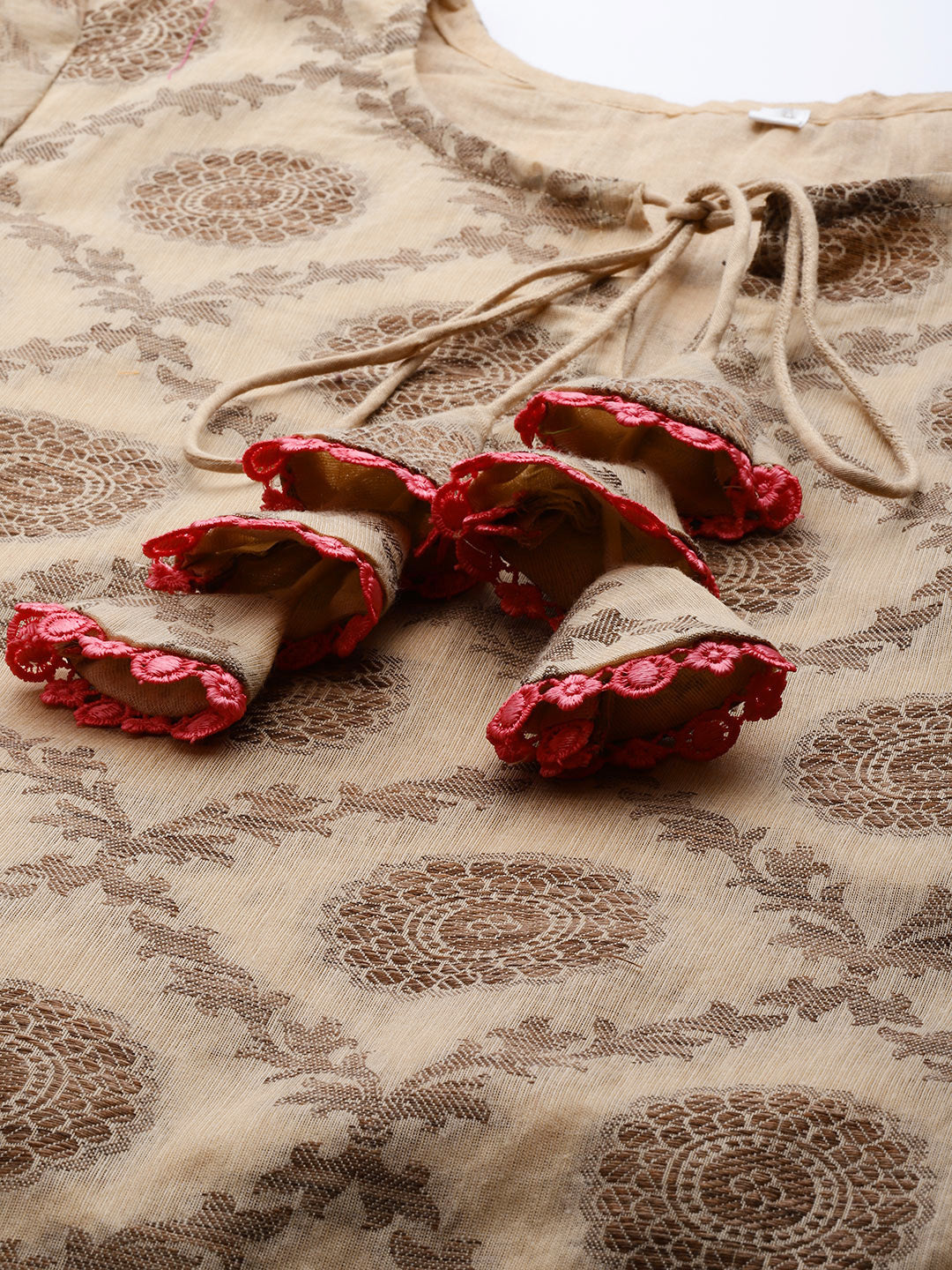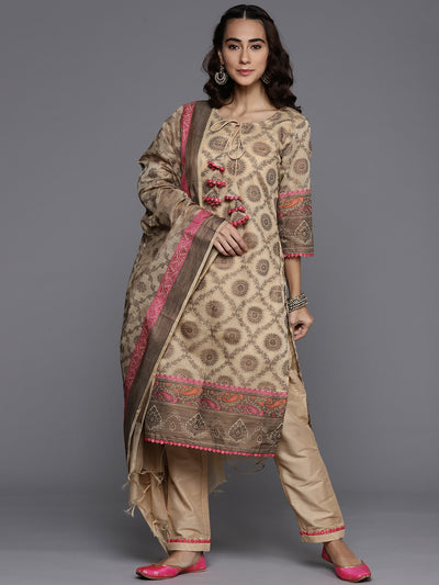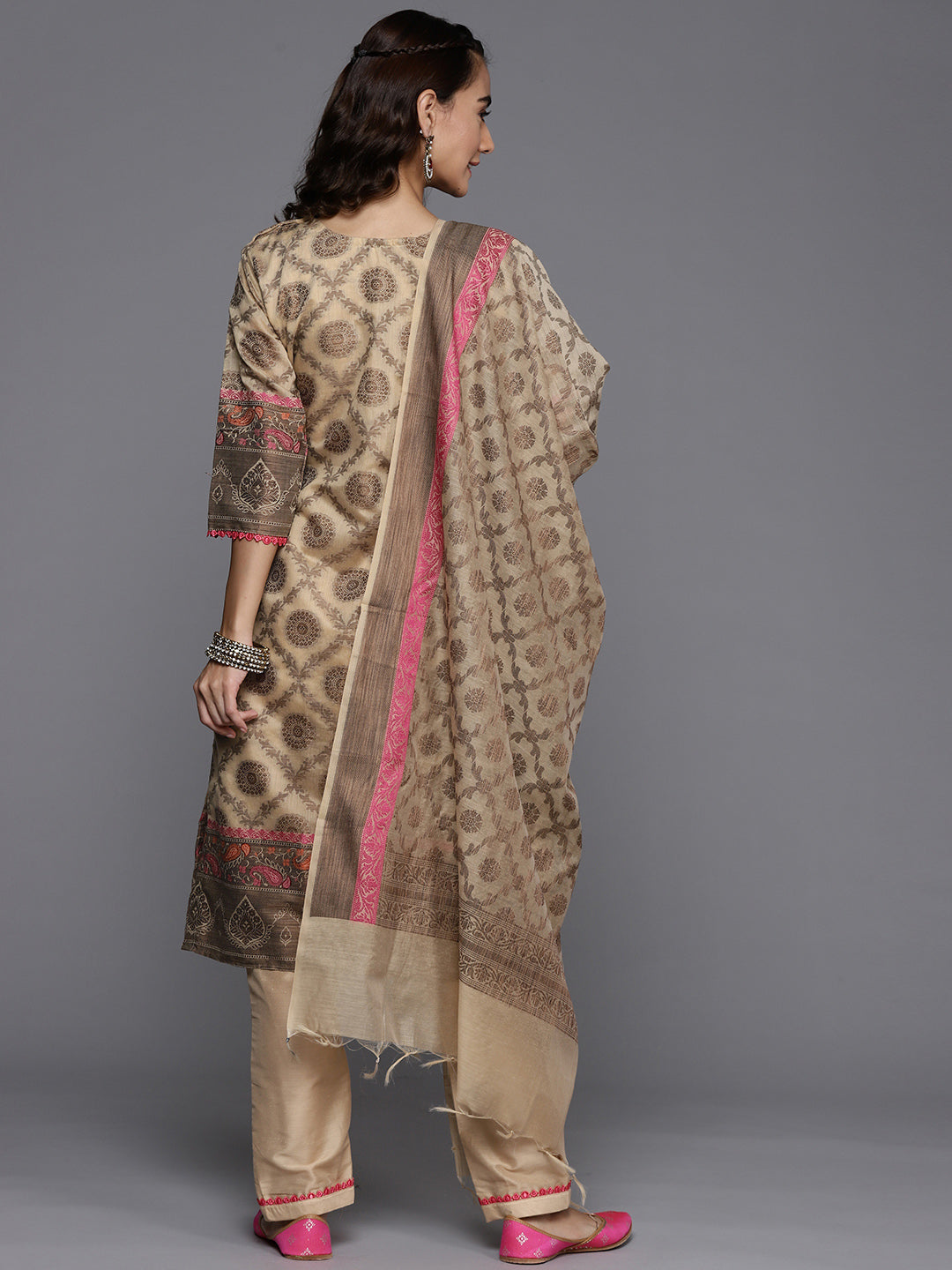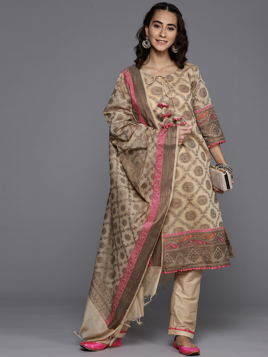Made to Measure Beige Banarasi Weaving Embellished Kurta Pant Set With Handloom Dupatta