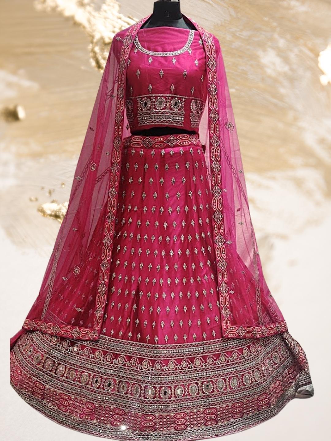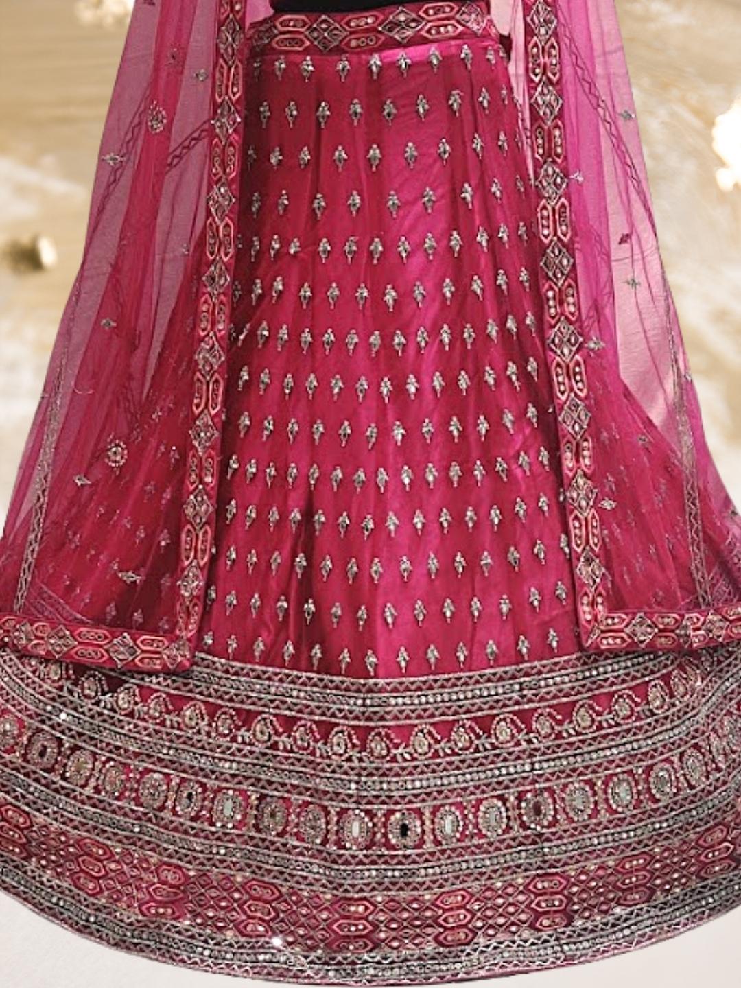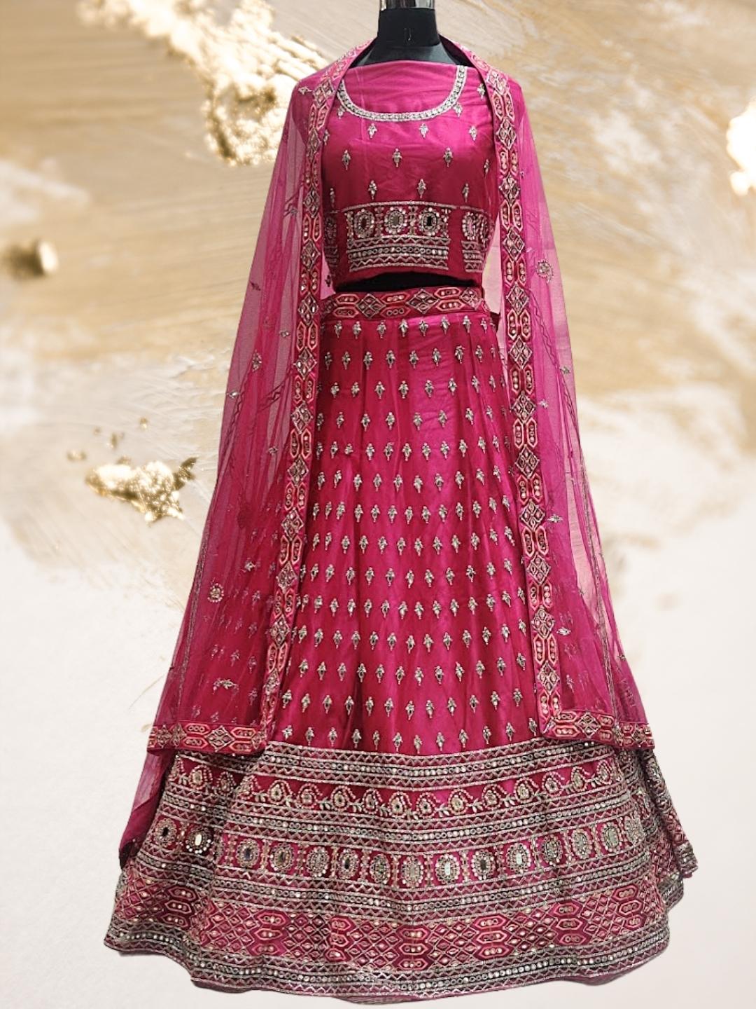 Pink Embroidered Mirror and Stone Work Lehenga Choli