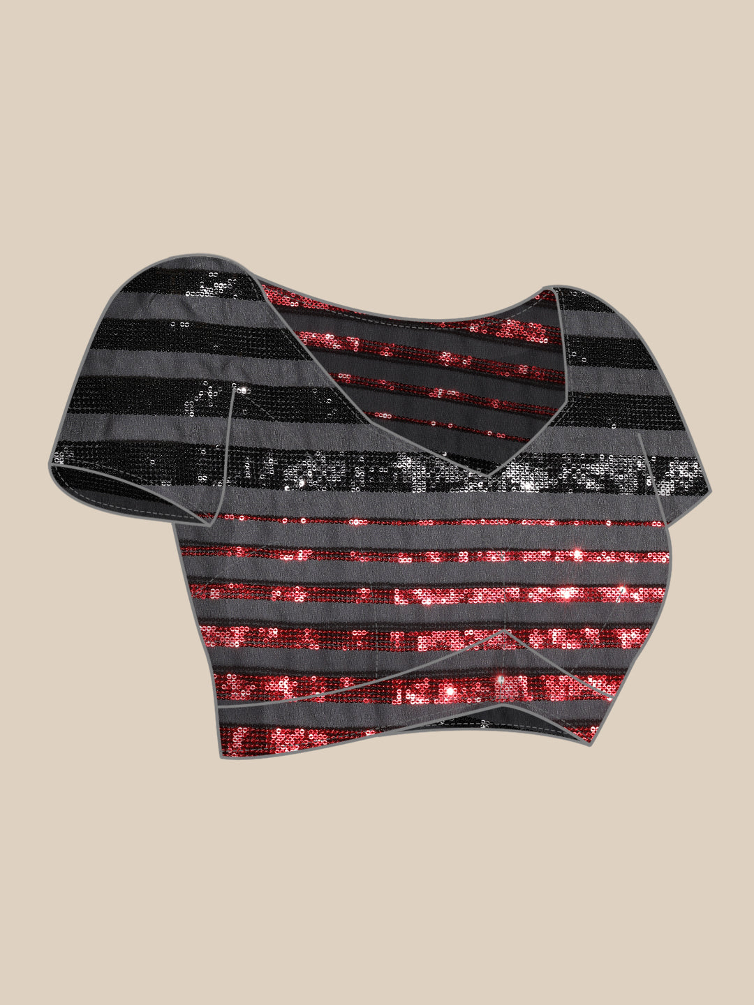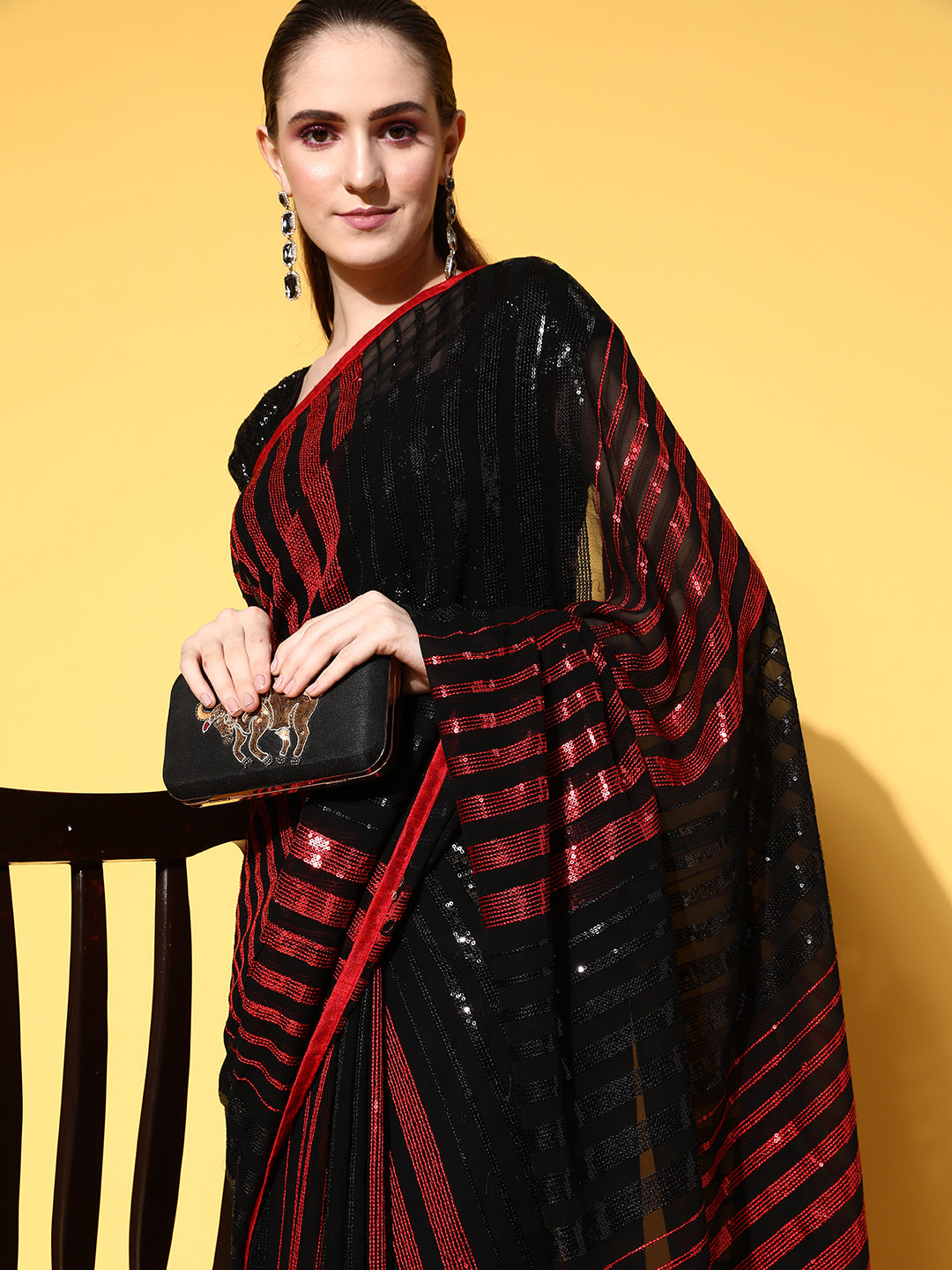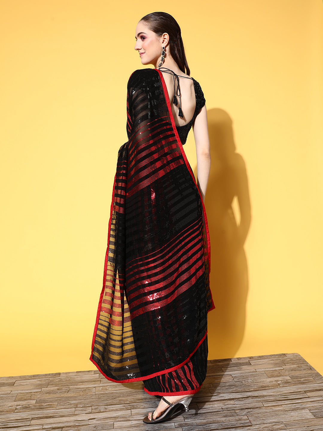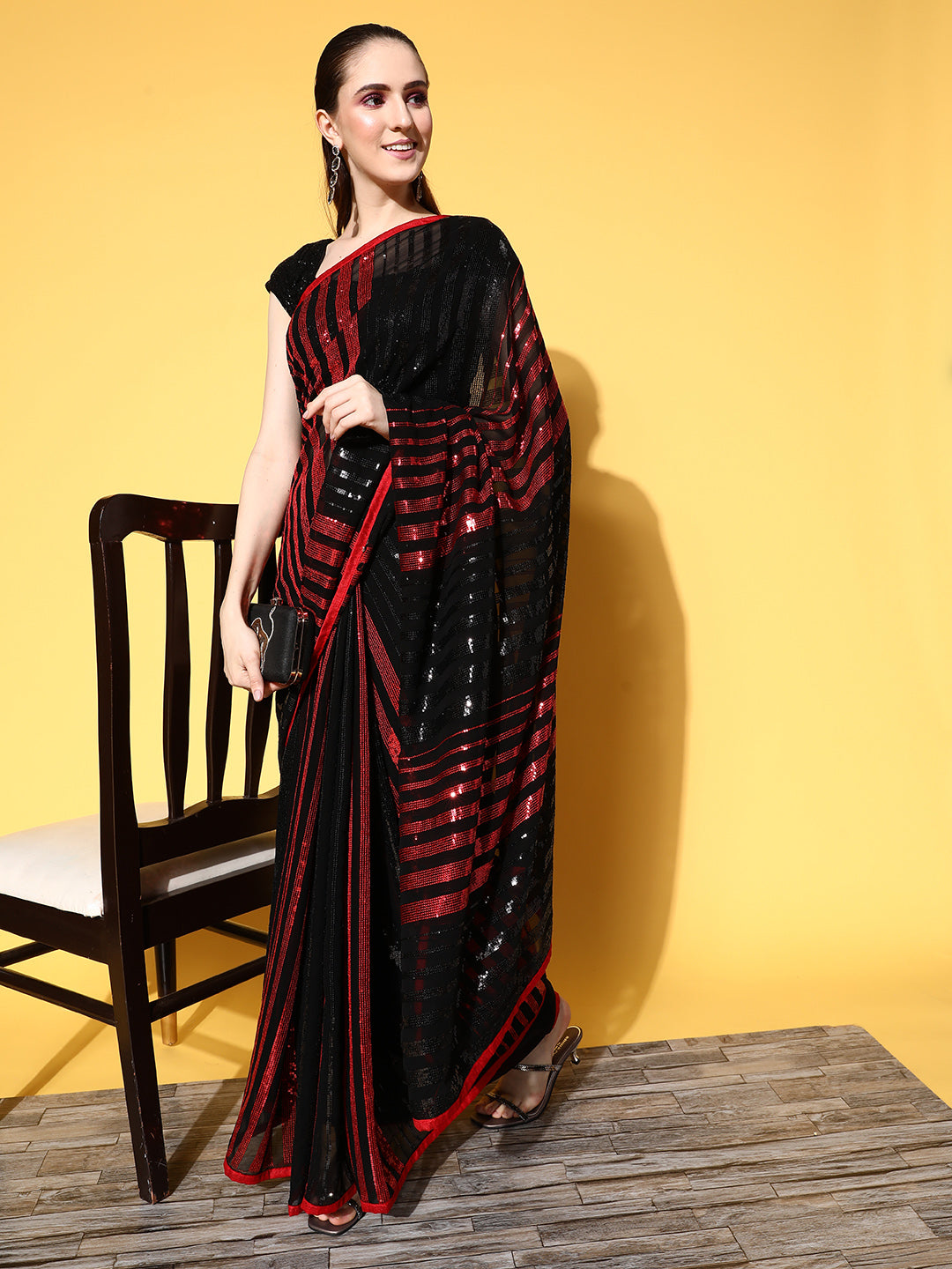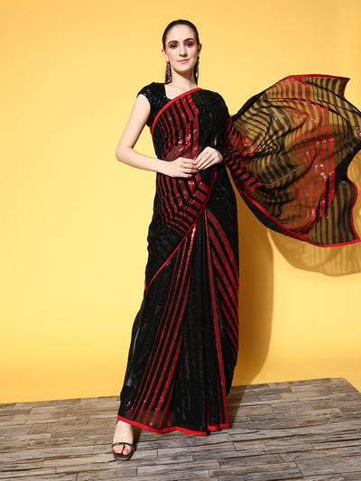 Black Contrast Sequin Embellished Georgette Metallic Cocktail Saree