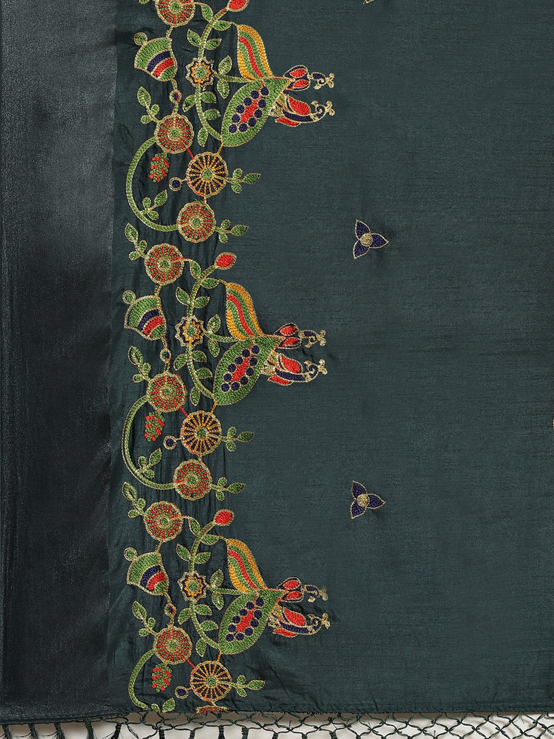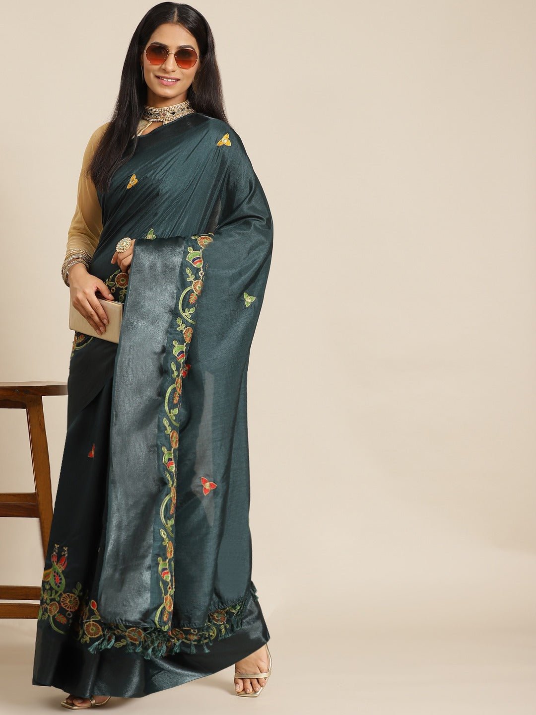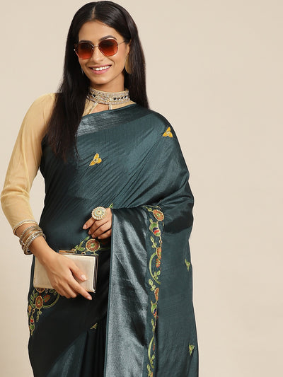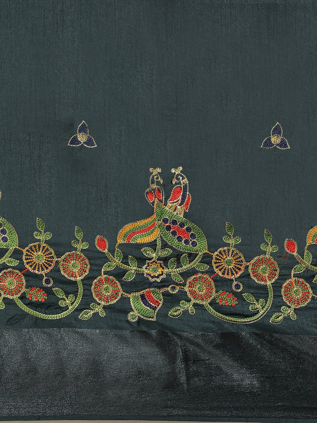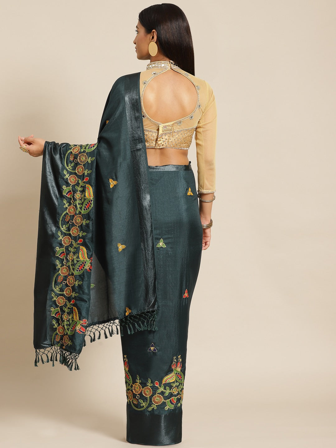 Green Silk Multicolor Embroidered Peacock Motifs Traditional Saree