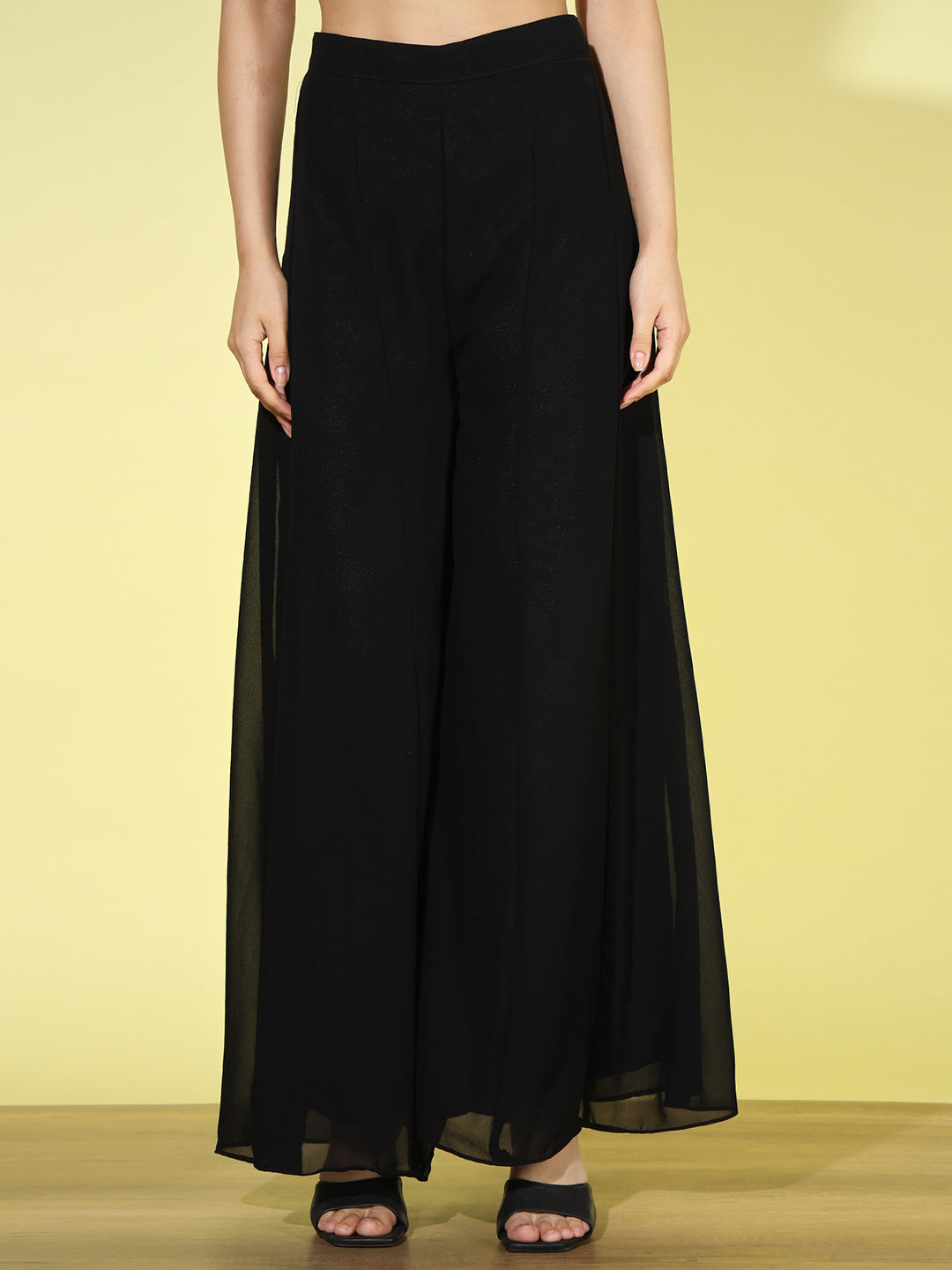 Black Pleated Nyraa Style Suit with Sequin & Flared Palazzo