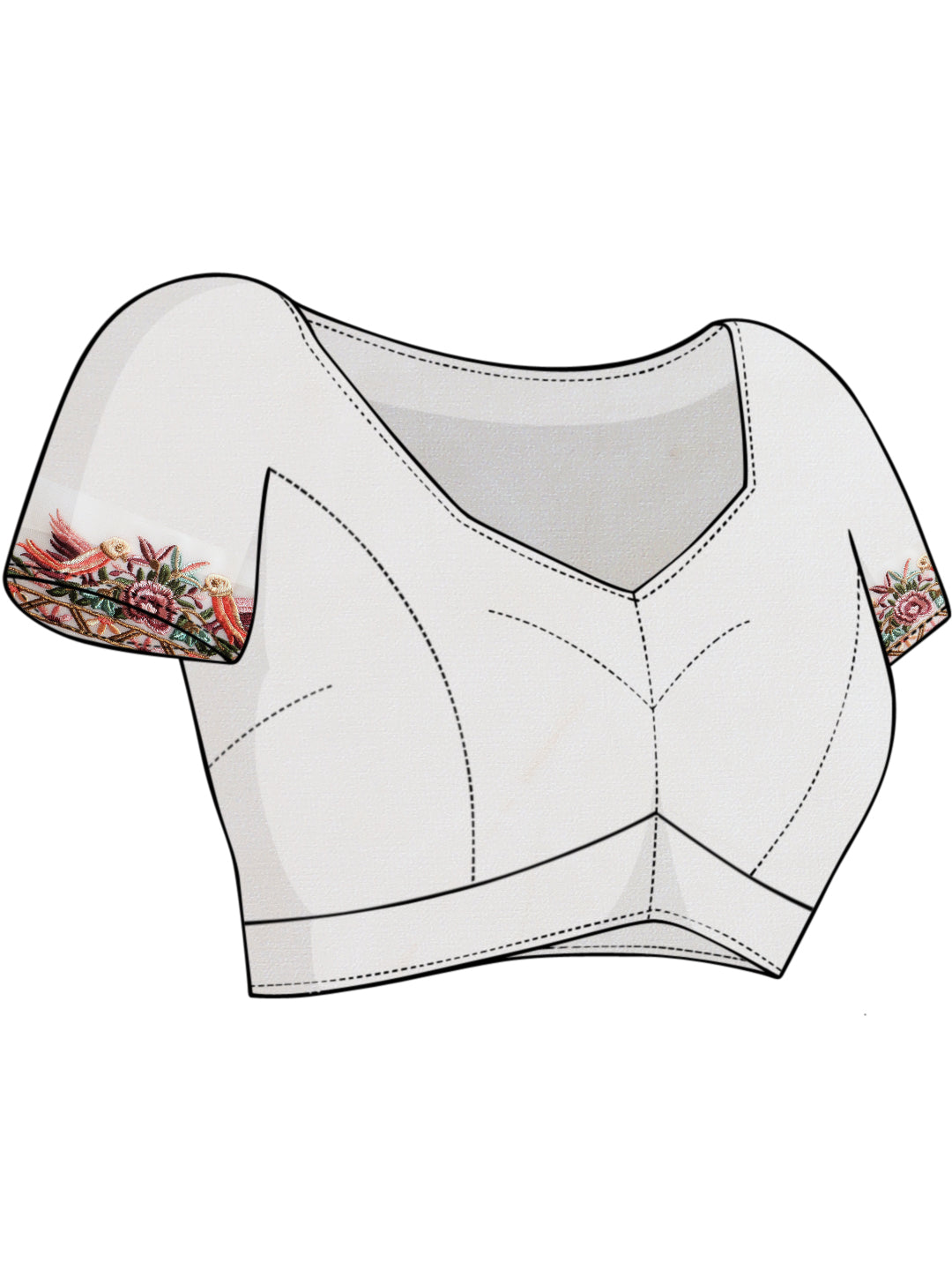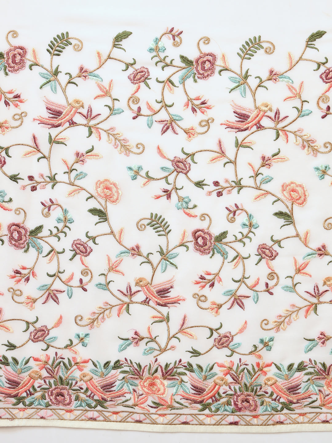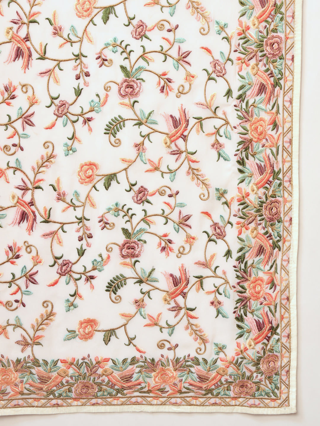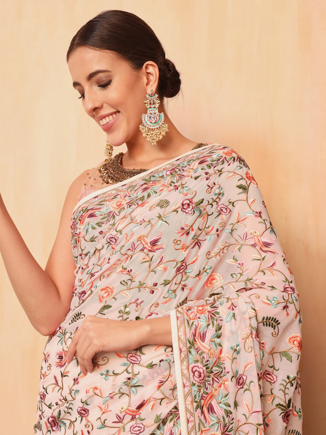Cream Parsi Resham Embroidery Saree with Intricate Floral Motifs