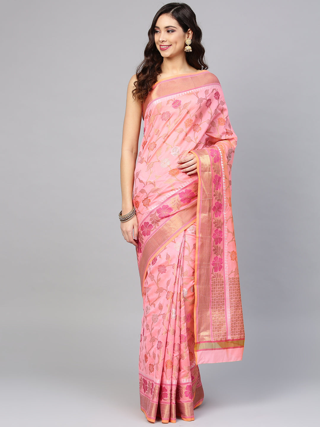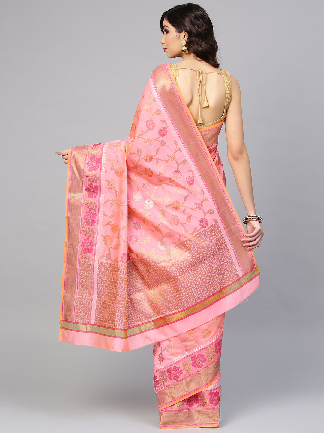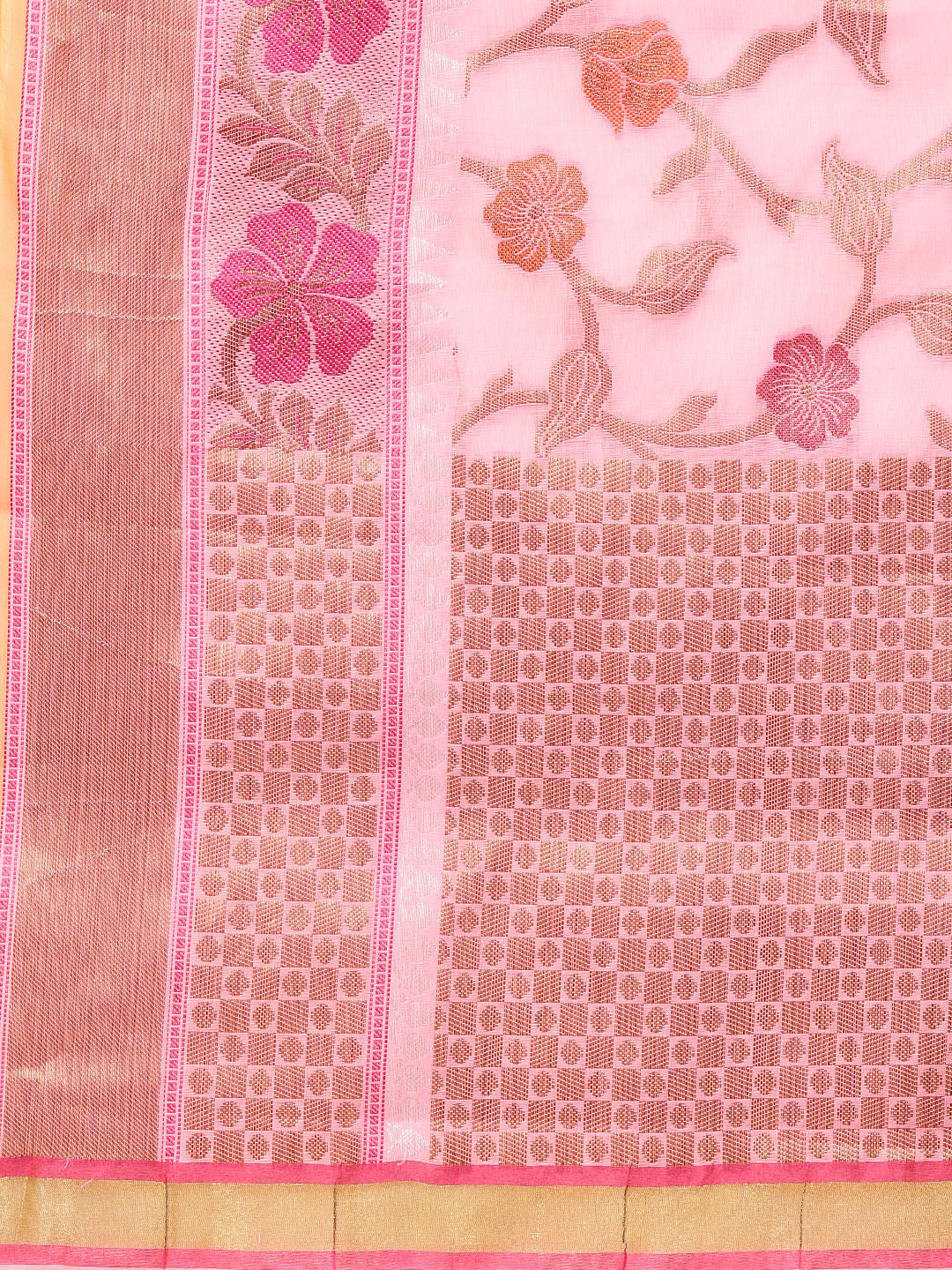 Chanderi Banarasi Silk saree with Zari and Resham Woven Flowers