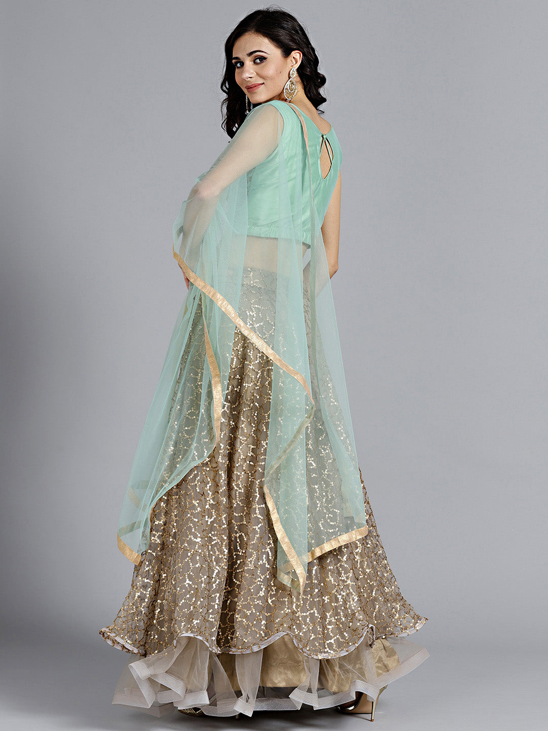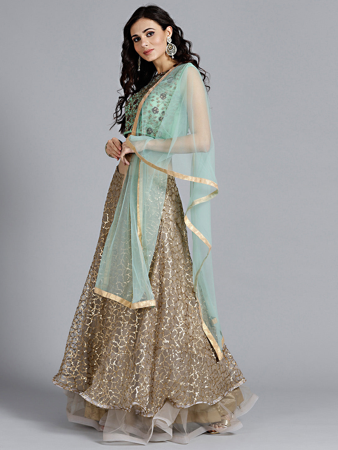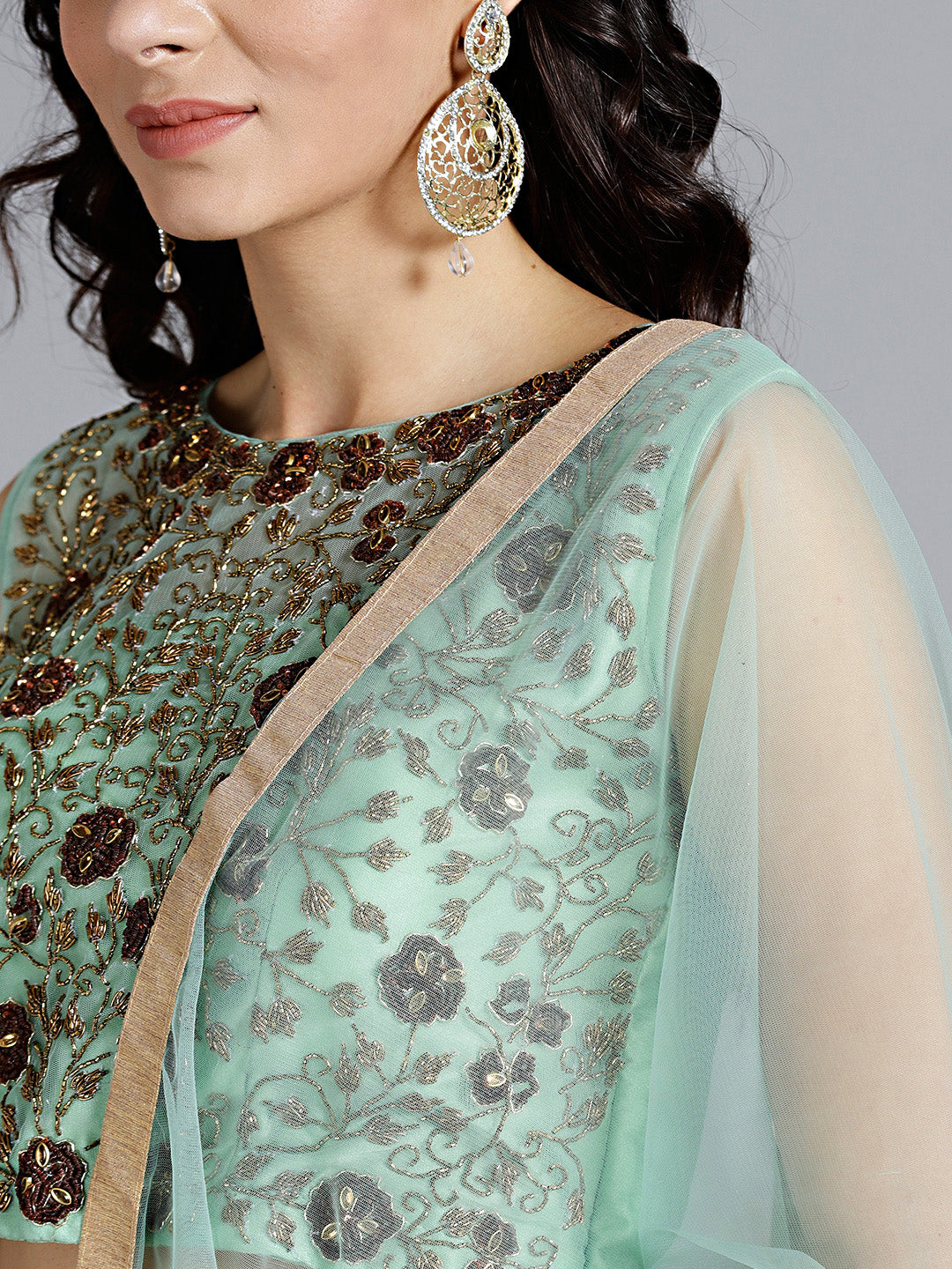 Zari Embroidered Lehanga Choli with Ruffled Hemline