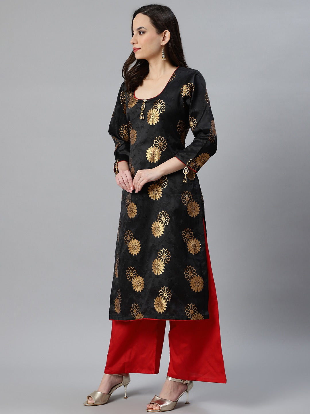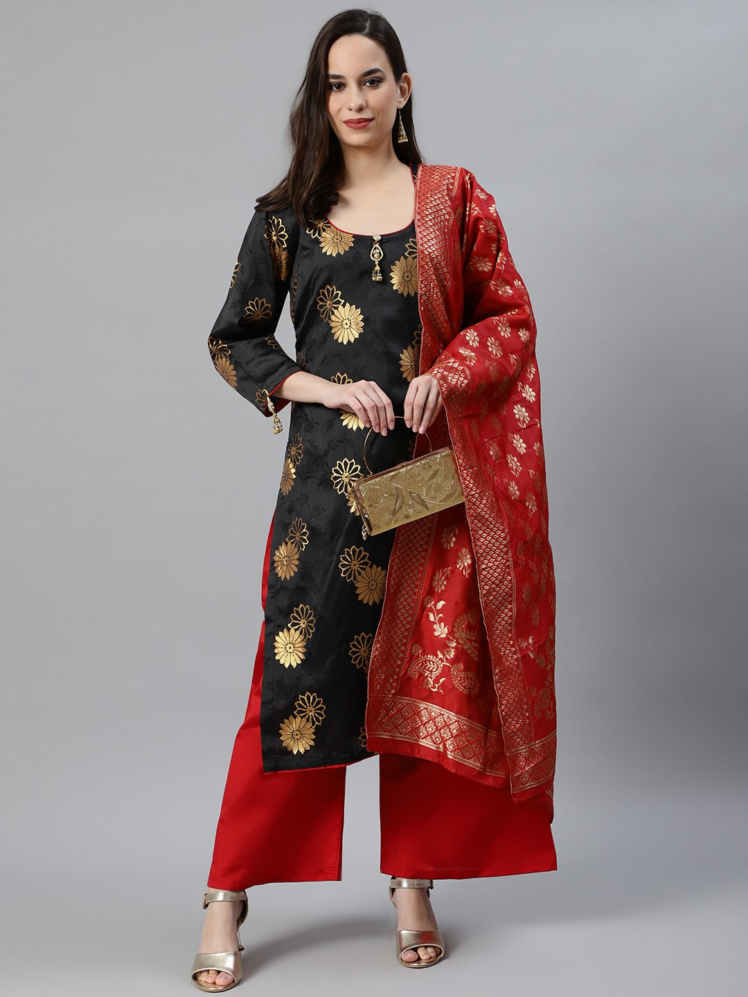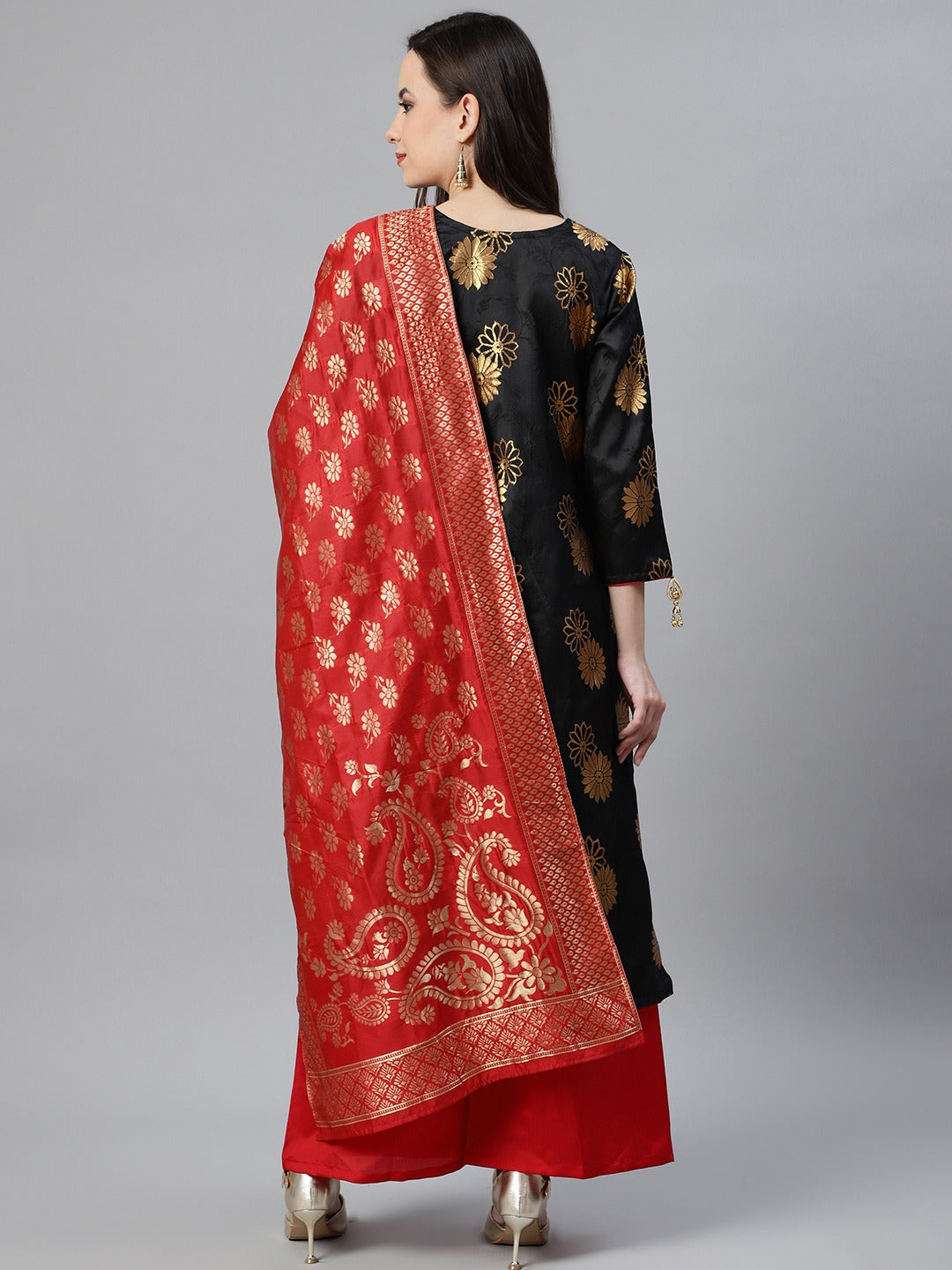 Banarasi Silk Stitched Suit Dupatta with Pallazzos , Gold Tassels & Banarasi Dupatta
