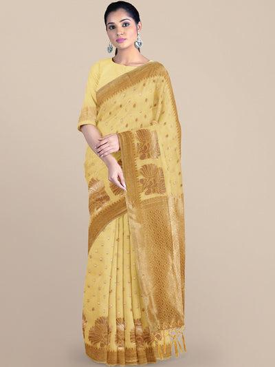 Pastel Yellow Zari Woven Embroidered Silk Blend Banarasi Saree