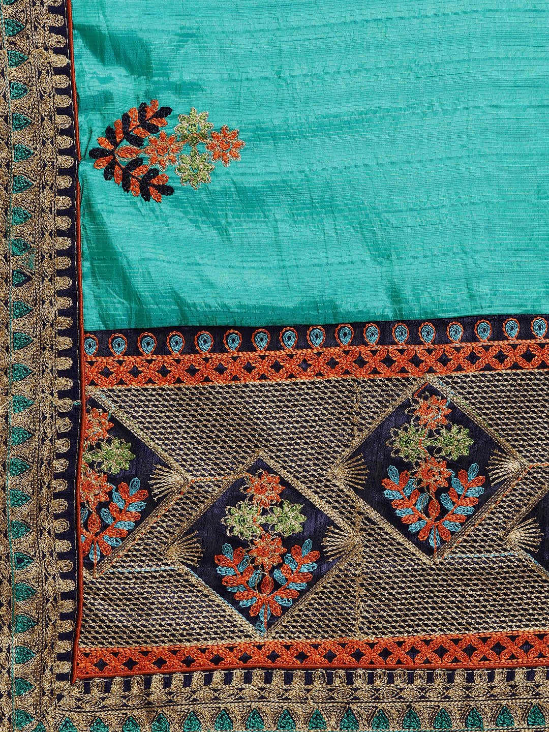 Textured Silk Saree with Resham Zari Embroidery and Rich Border Pallu