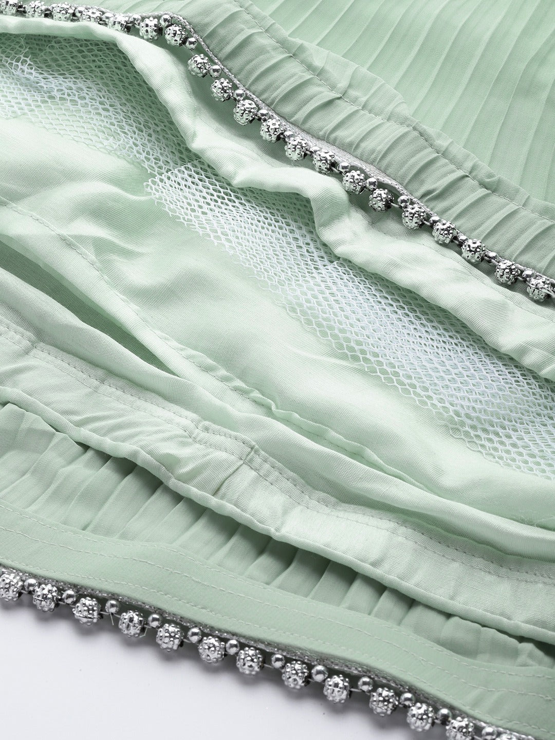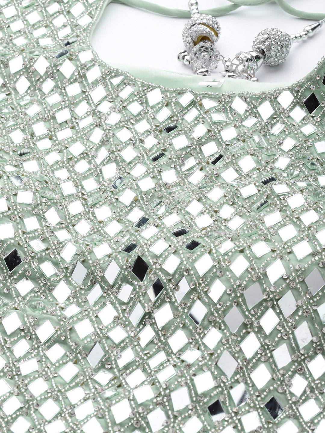 Made to Measure Pastel Mirror Work Embroidered Georgette Lehanga Choli Set With laces