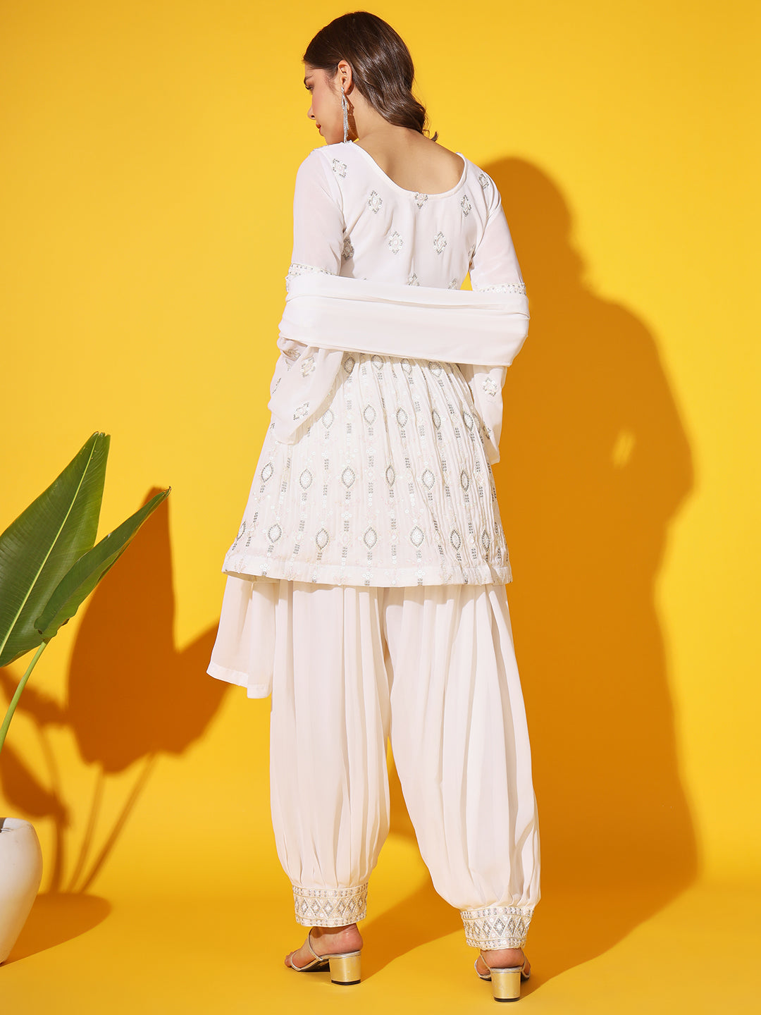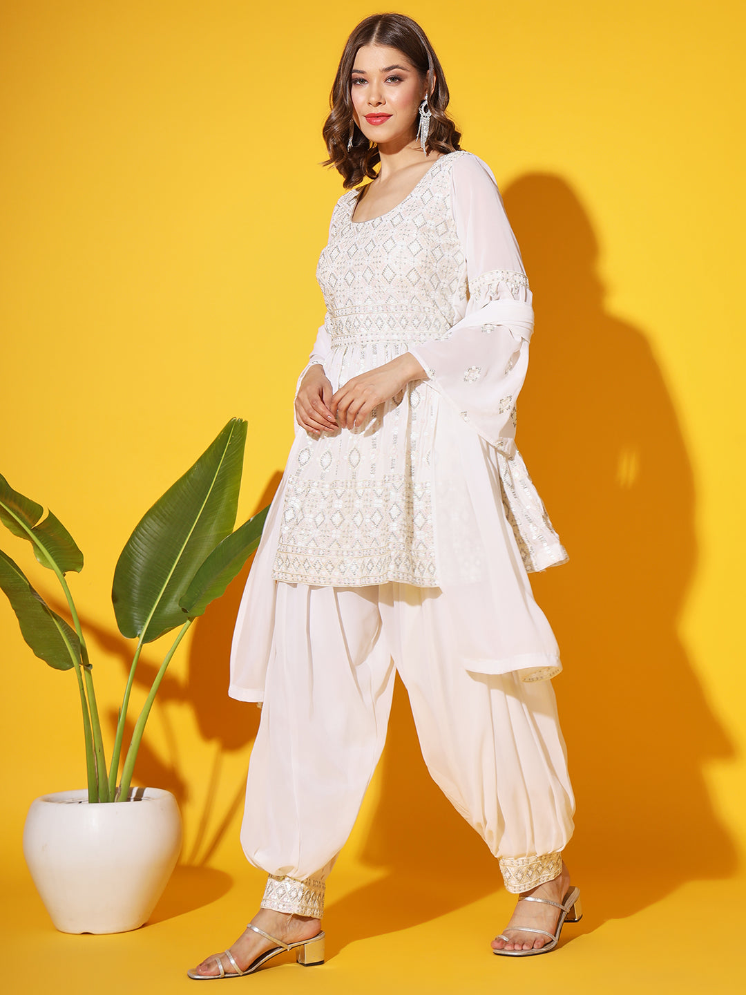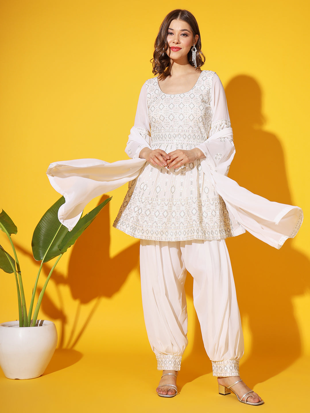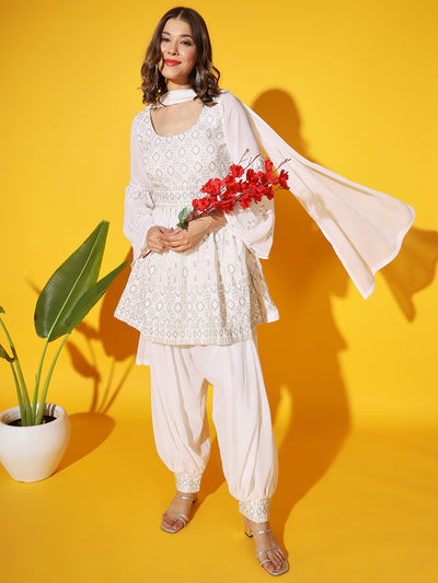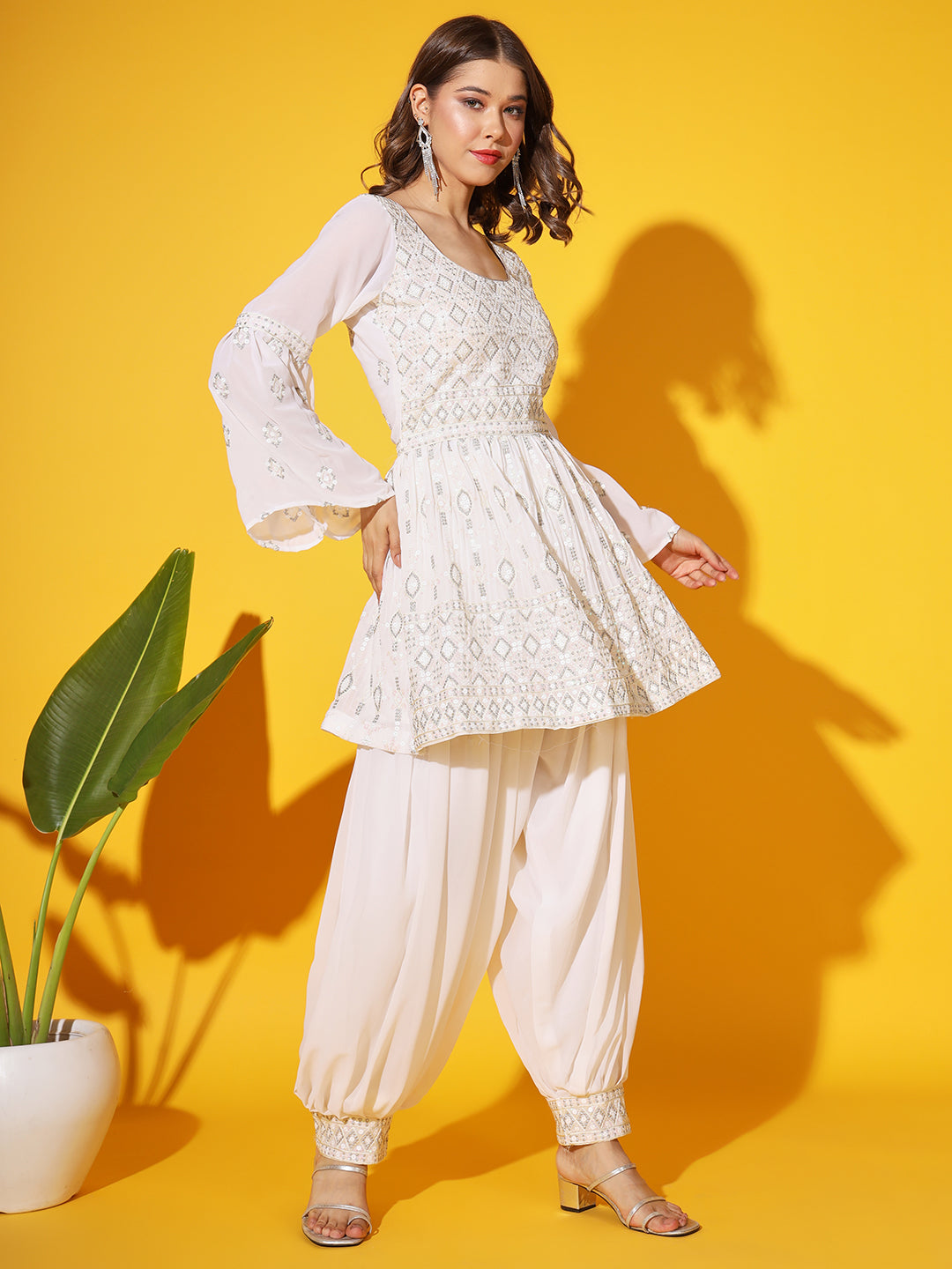 Peplum Resham Embroidered Kurta Set with Embellished Afghan Salwar