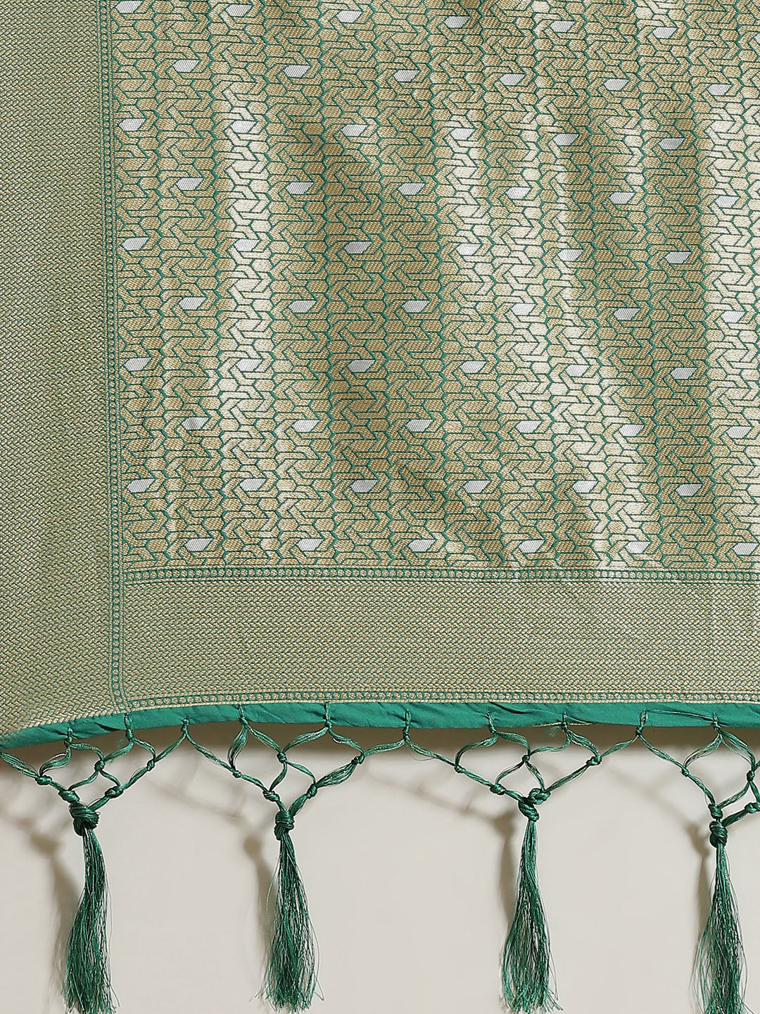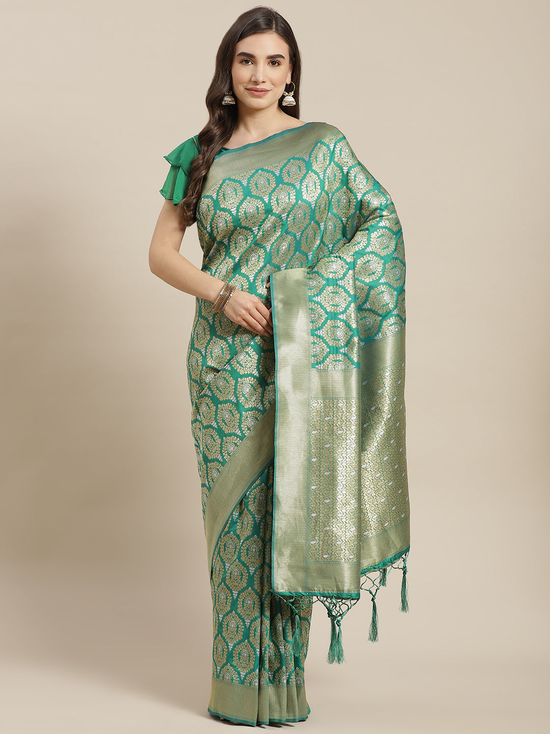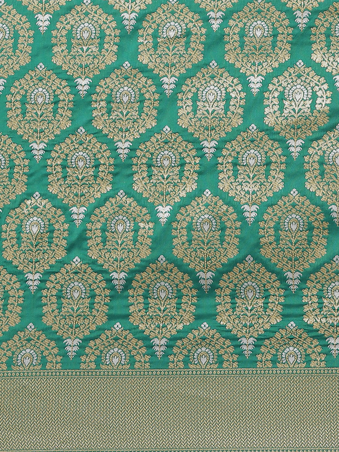 Green Traditional Banarasi saree with Gold & Silver Zari Mughal motifs