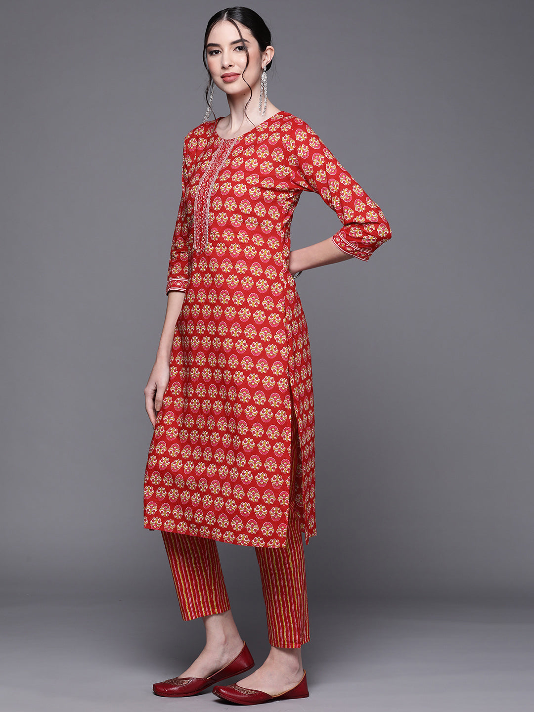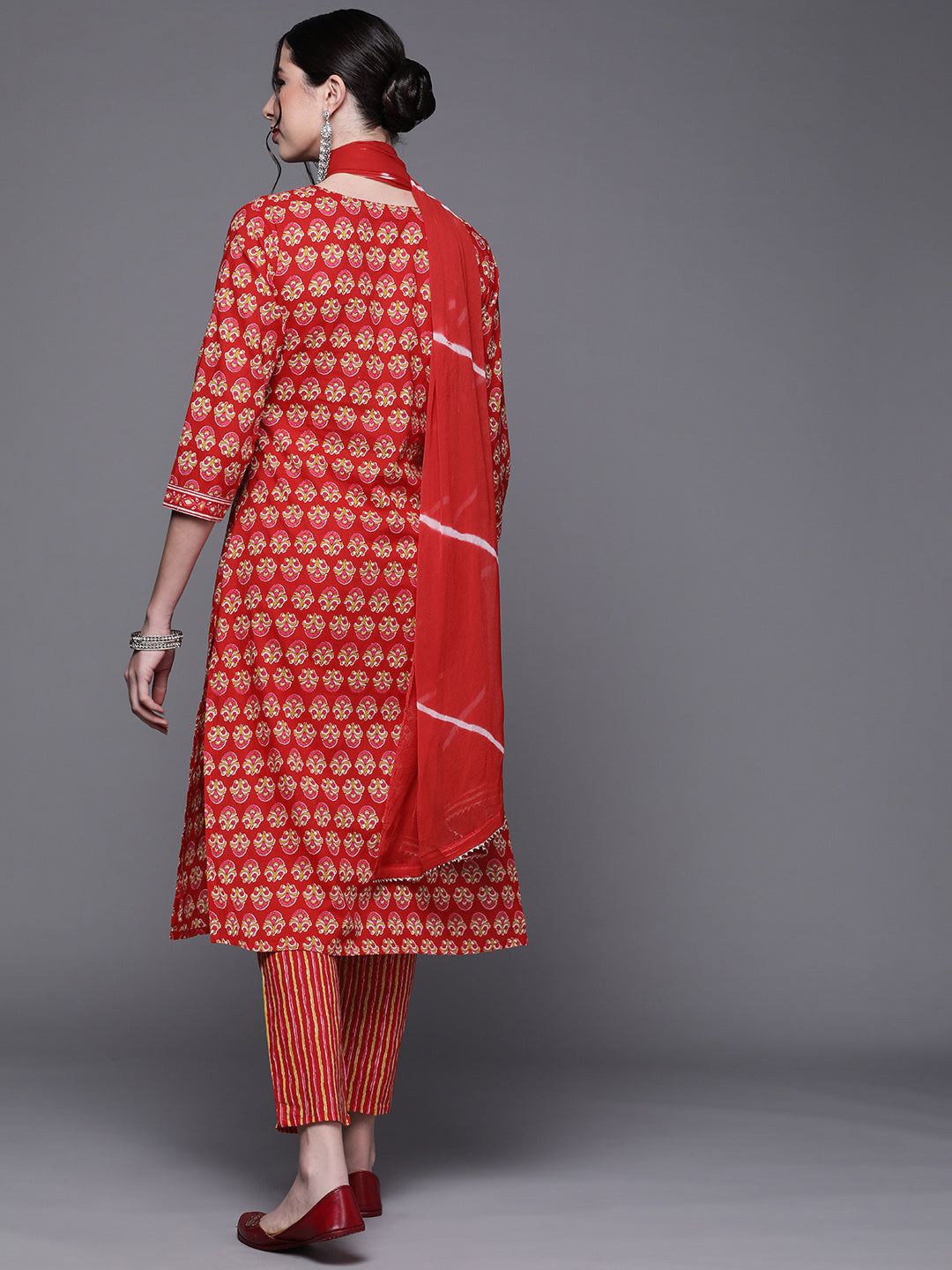 Cotton Batik Print Kurta Set with Bandhani Dupatta