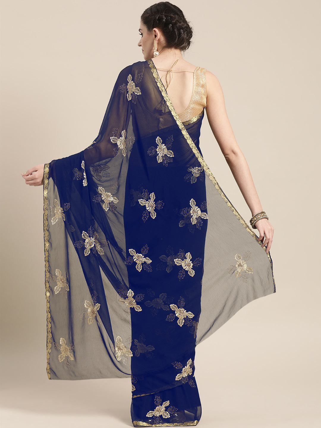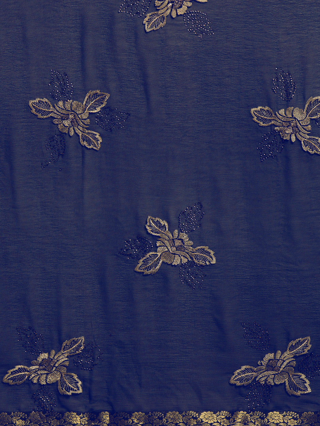 Chiffon Resham Embroidered Saree with Zari Woven Satin border and crystals