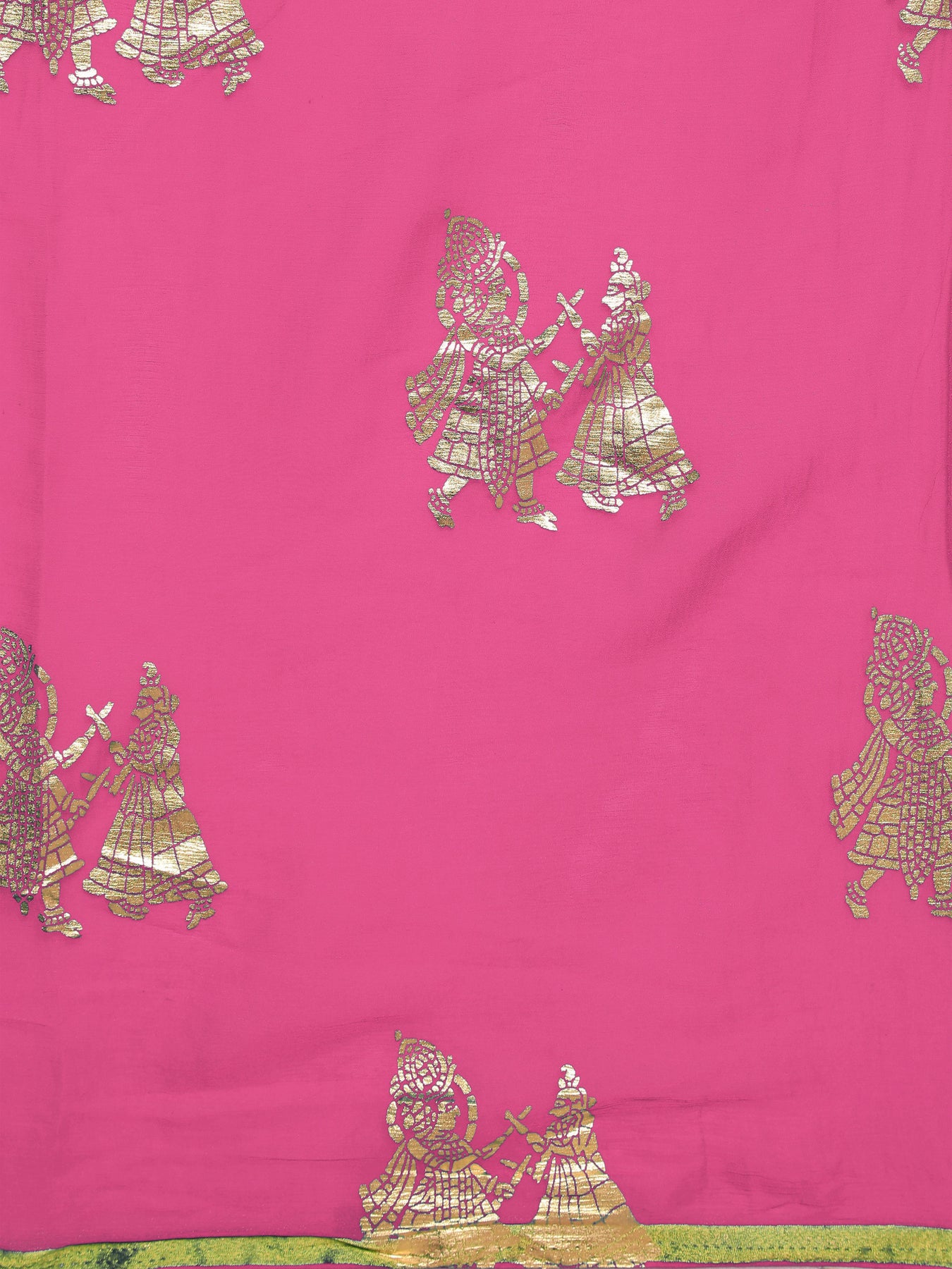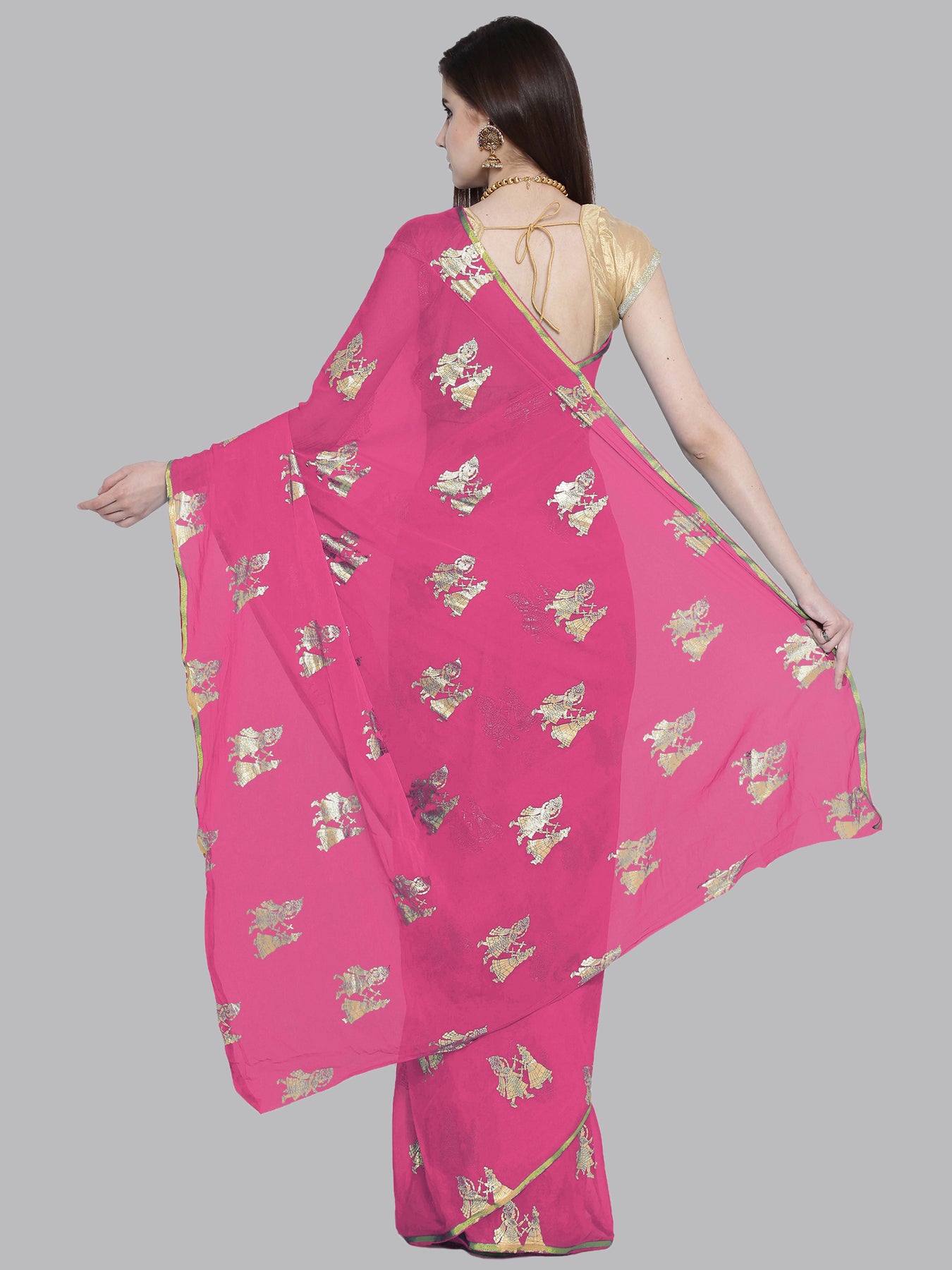 Pink Georgette Foil Print Embellished Party Wear Saree