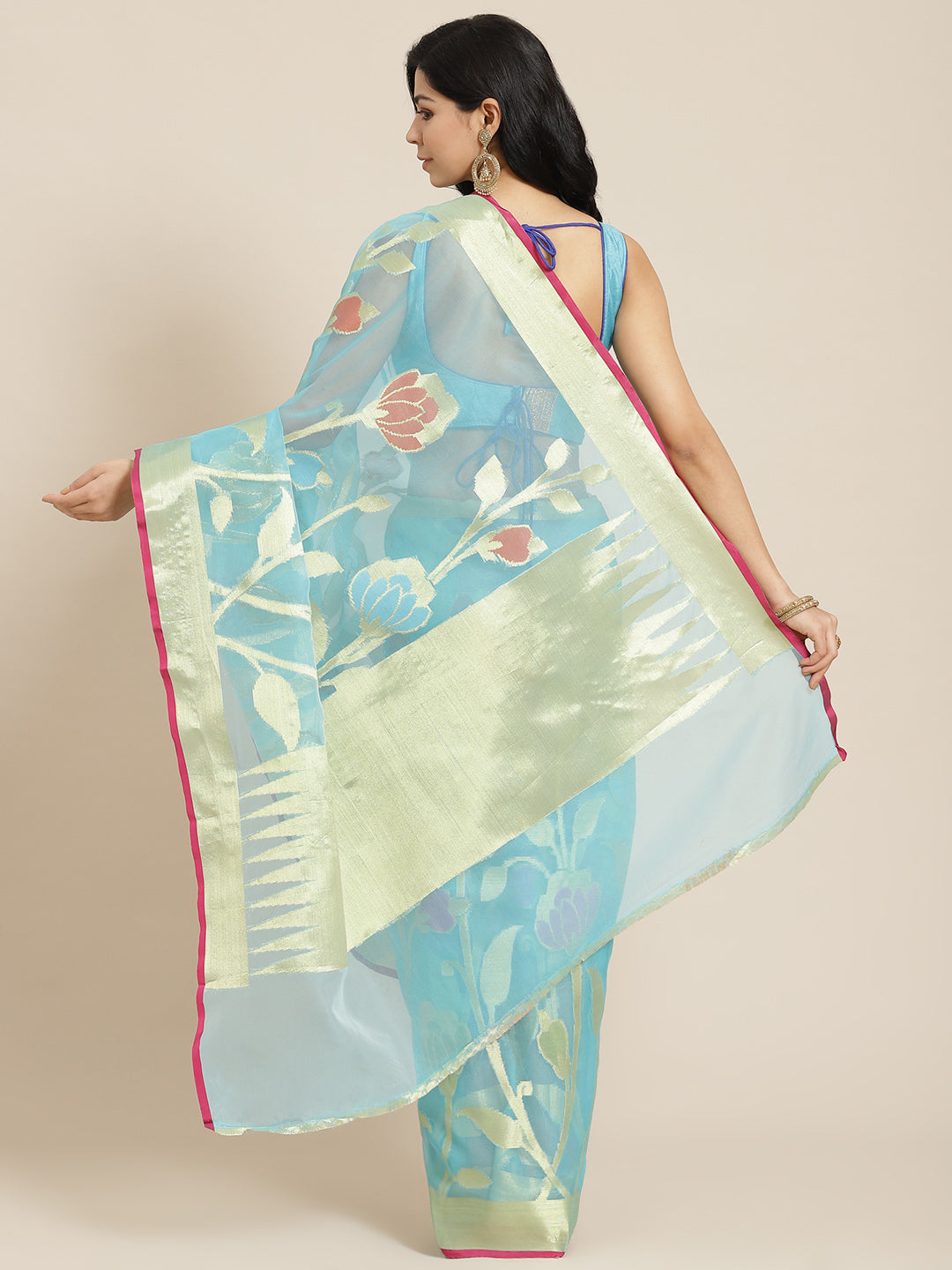 Blue Zari Embellished Organza Tissue Traditional Saree