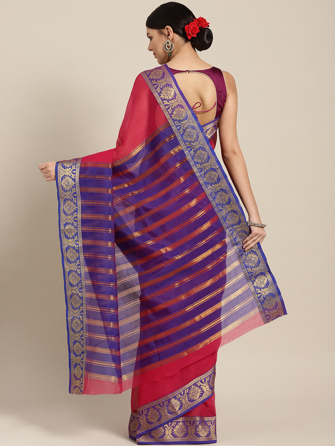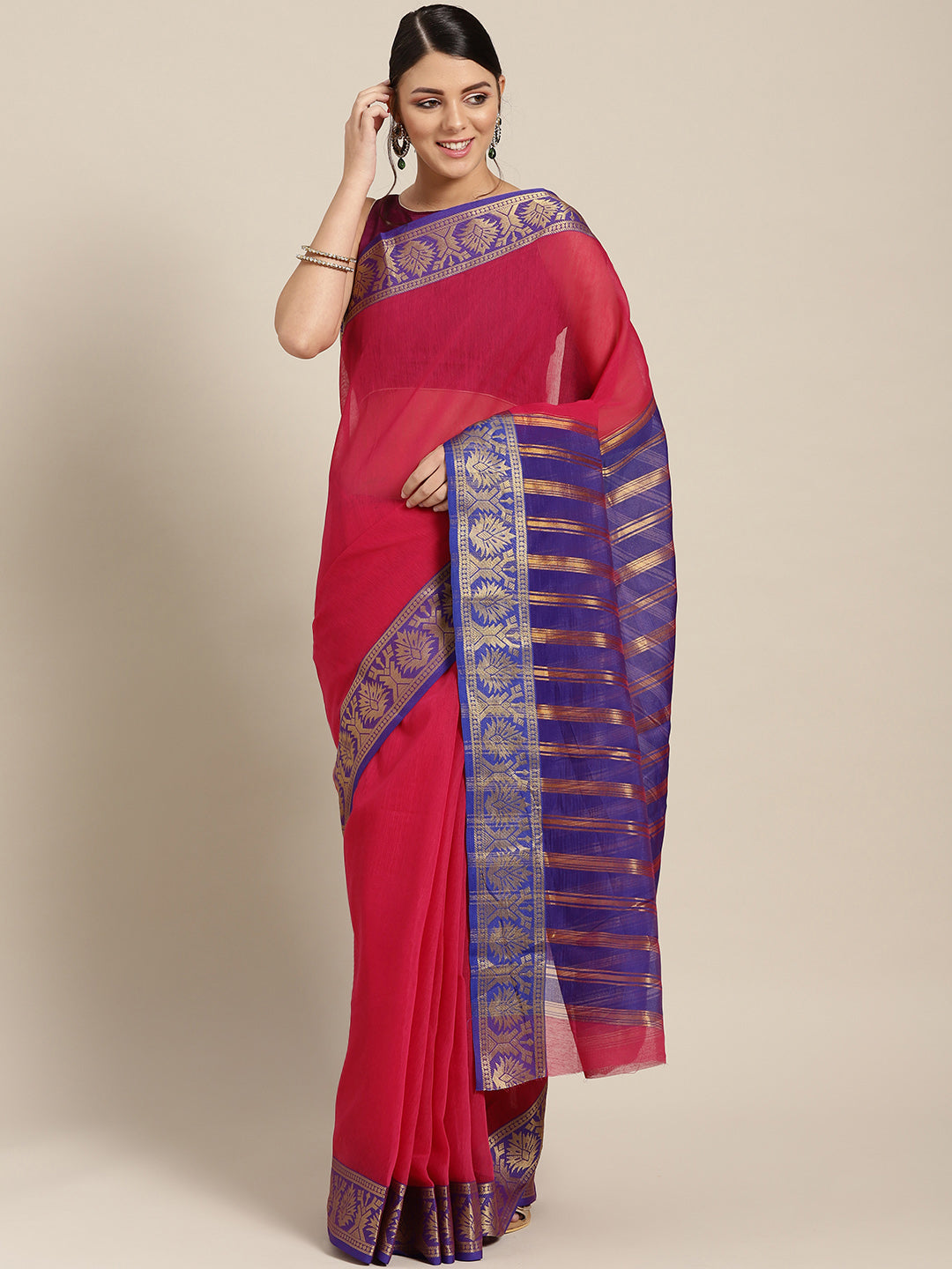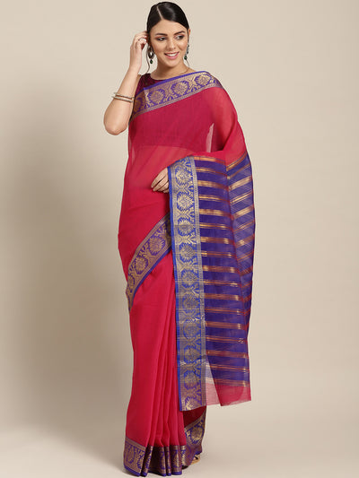 Pink Chanderi Silk Saree with Contrast Zari Woven Border