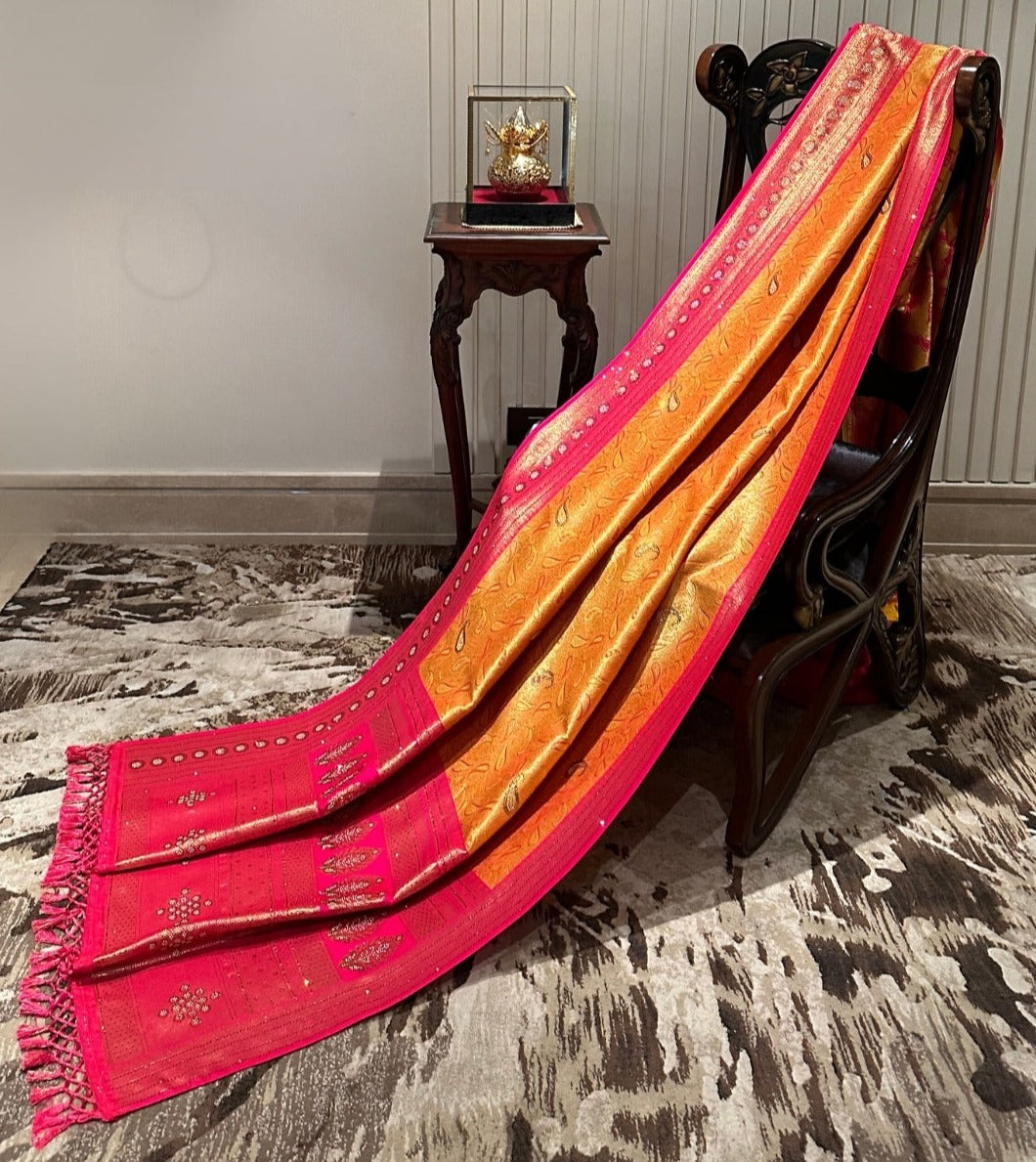 Radiant Orange and Pink Silk Saree
