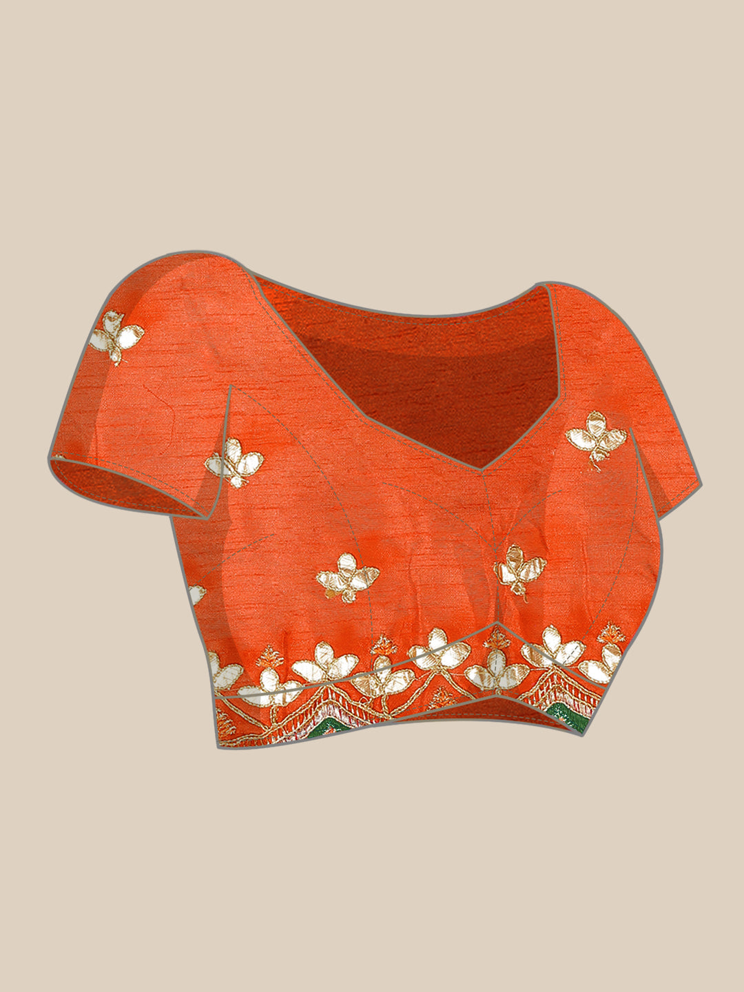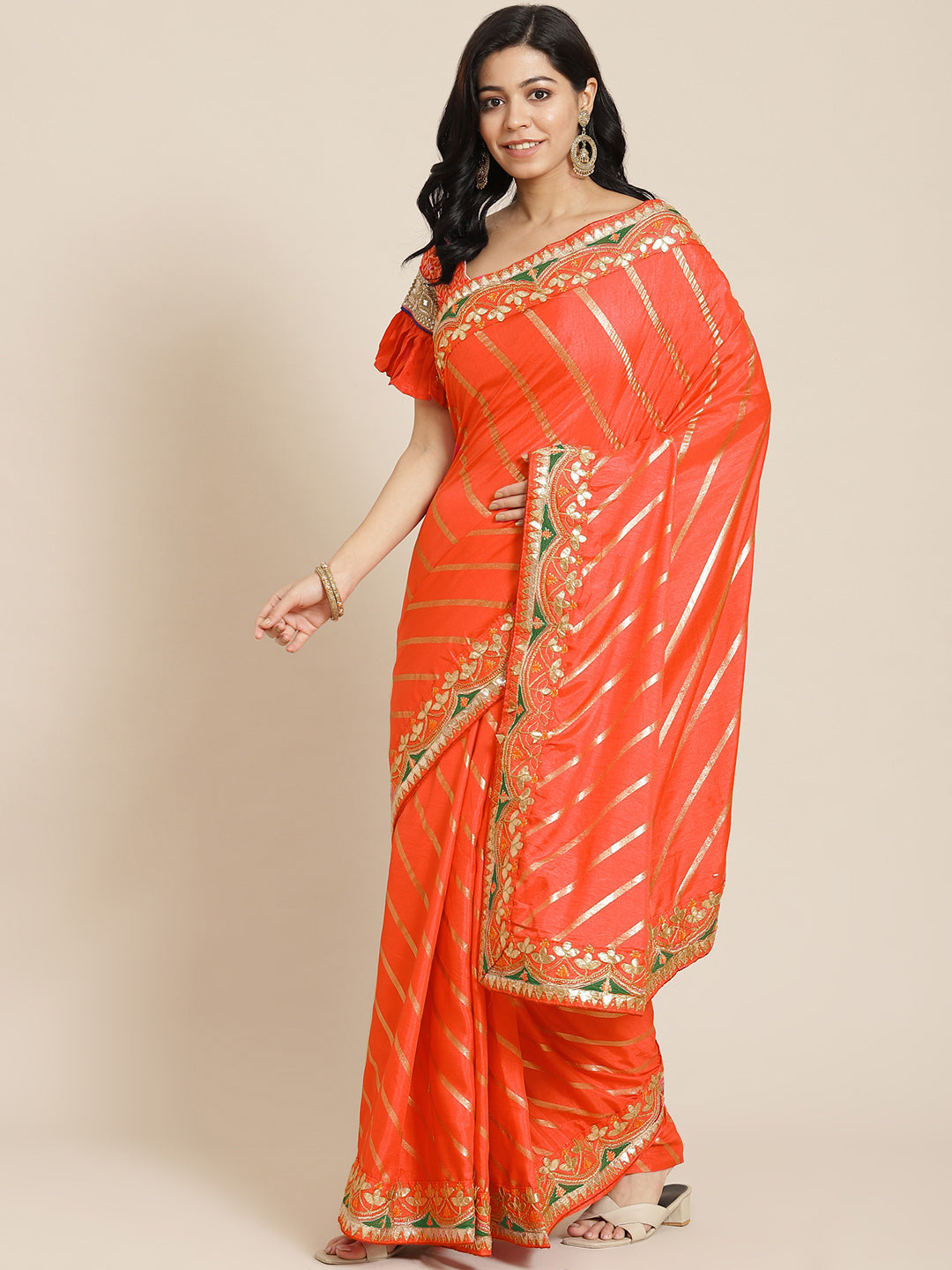 Orange Lehariya Saree Embellished With Gota Patti Embroidered  Border