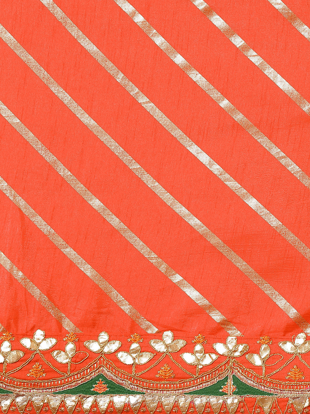 Chhabra 555 Orange Lehariya Dupion Silk Saree Embellished With Gota Patti Embroidered Border
