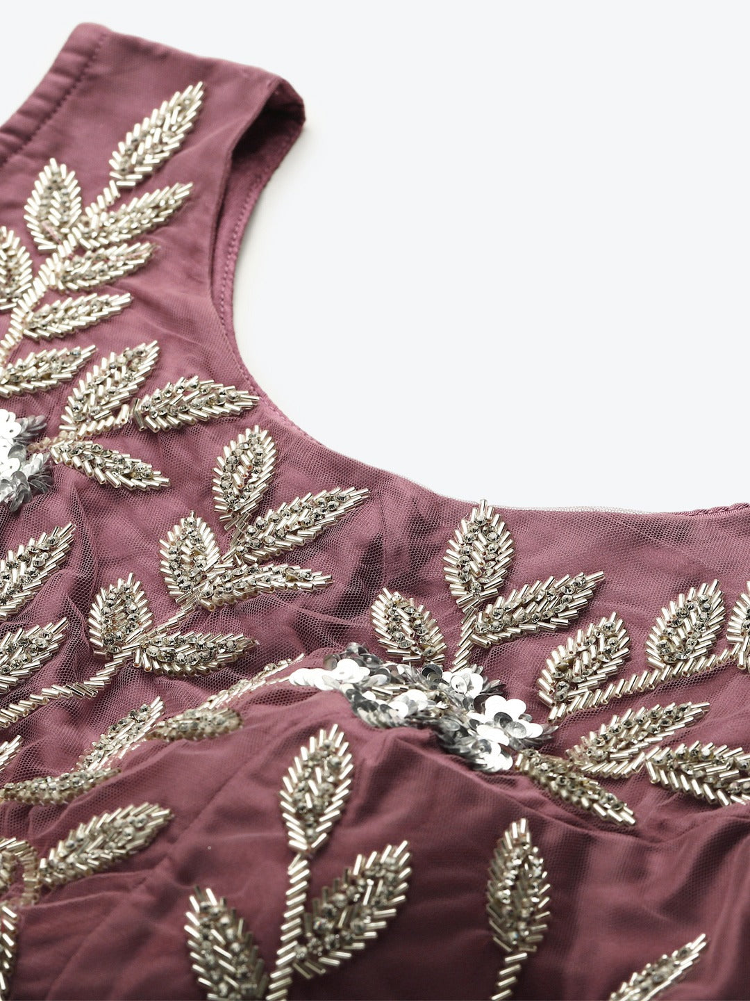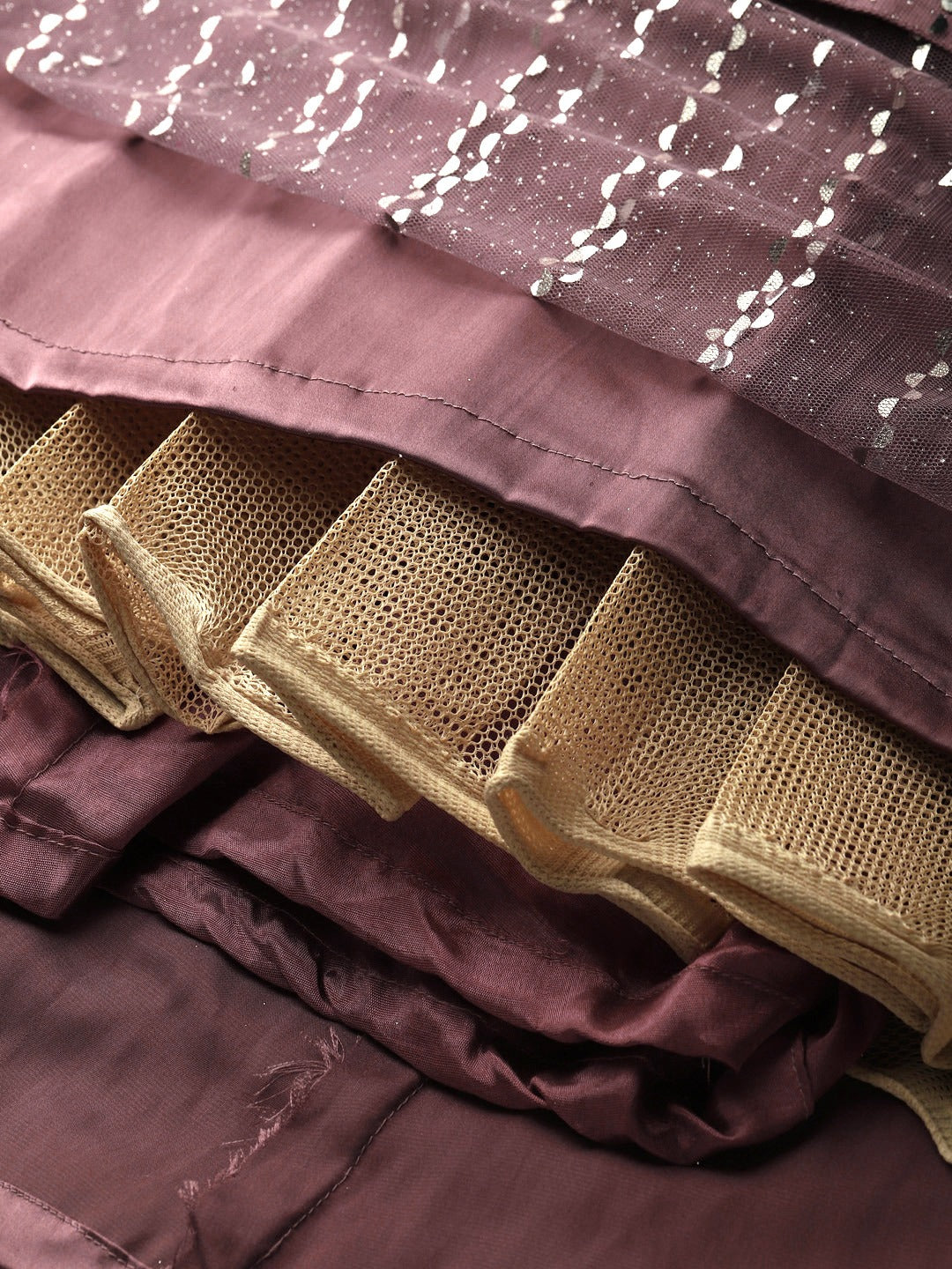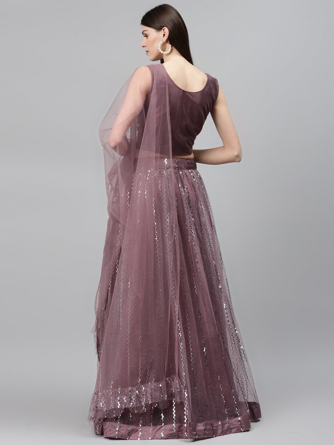 Pastel Mauve Mirror Embellished Lehenga Set with Cut dana Embroidery, Frills & Layering