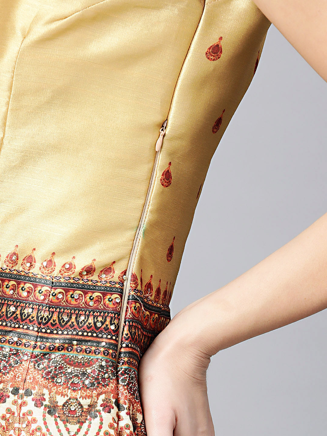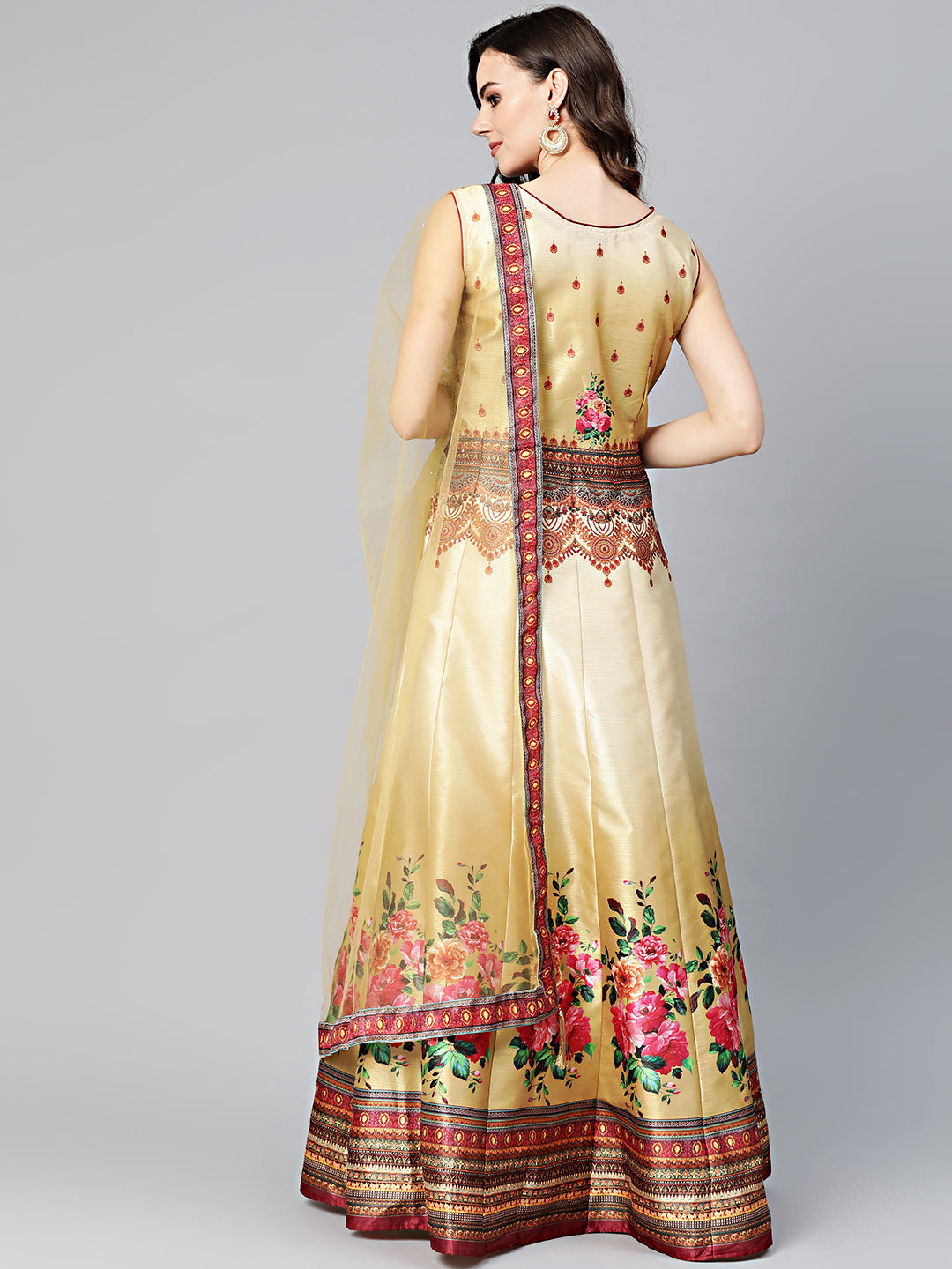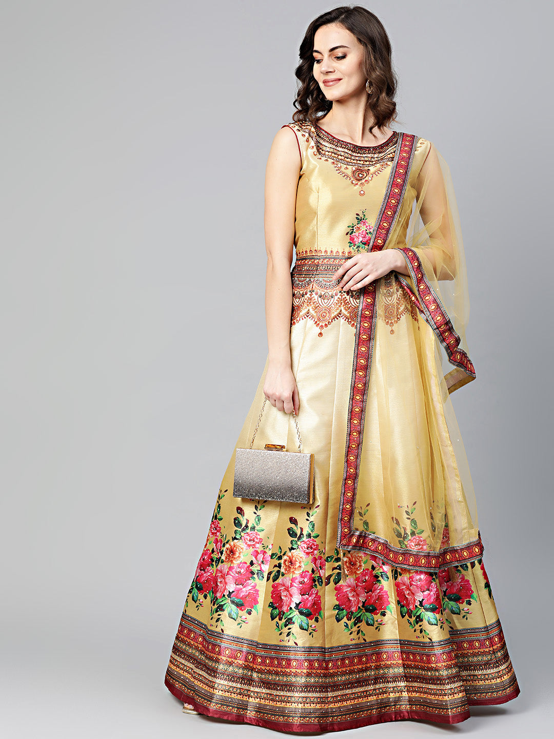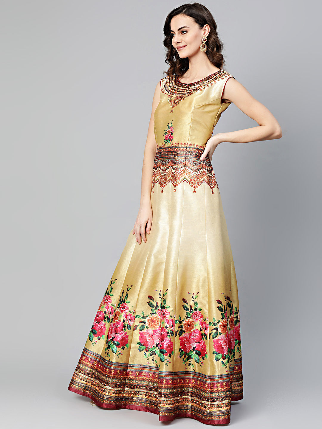 Embellished Anarkali Gown with Digital Floral Tribal Pattern