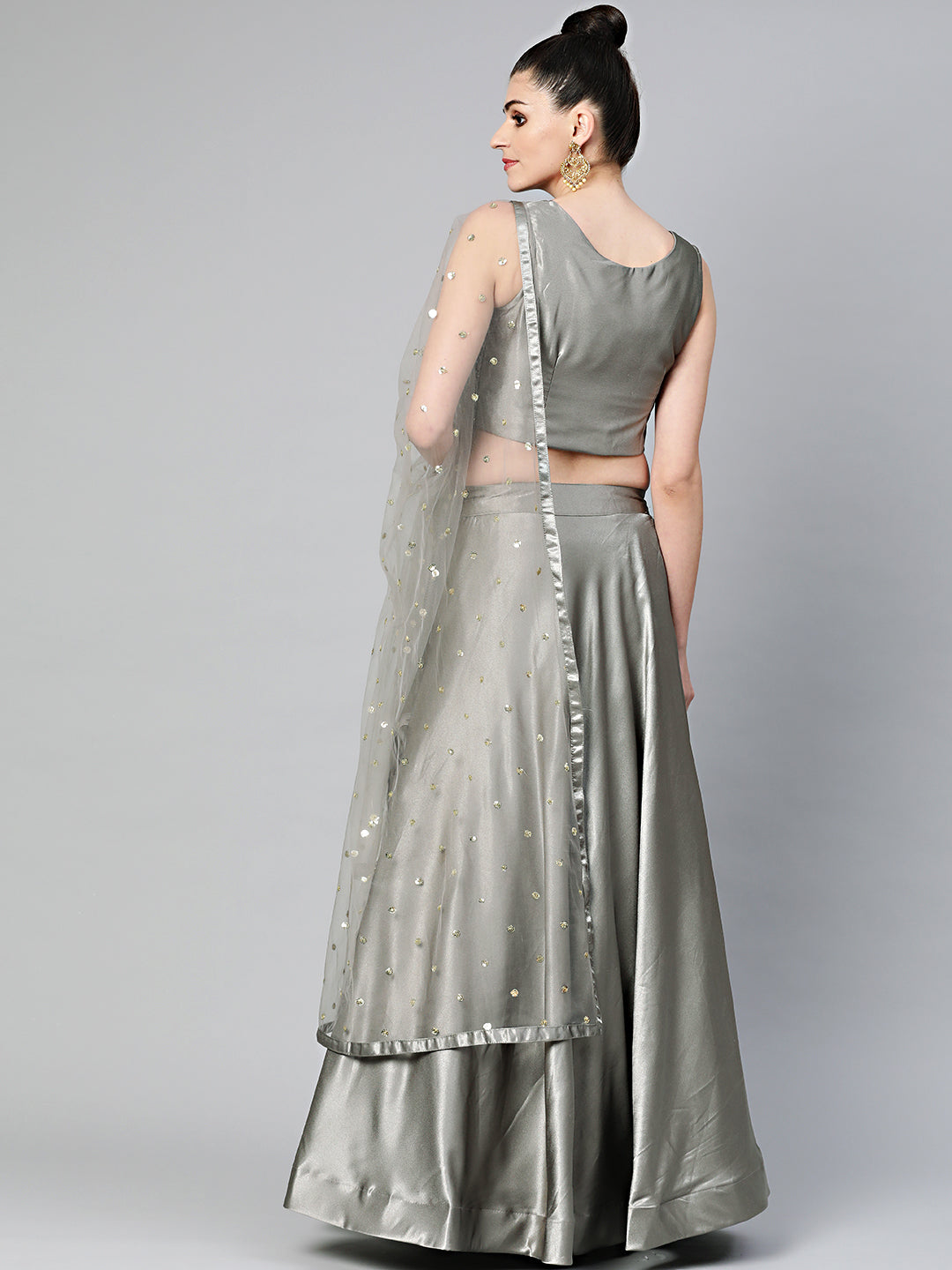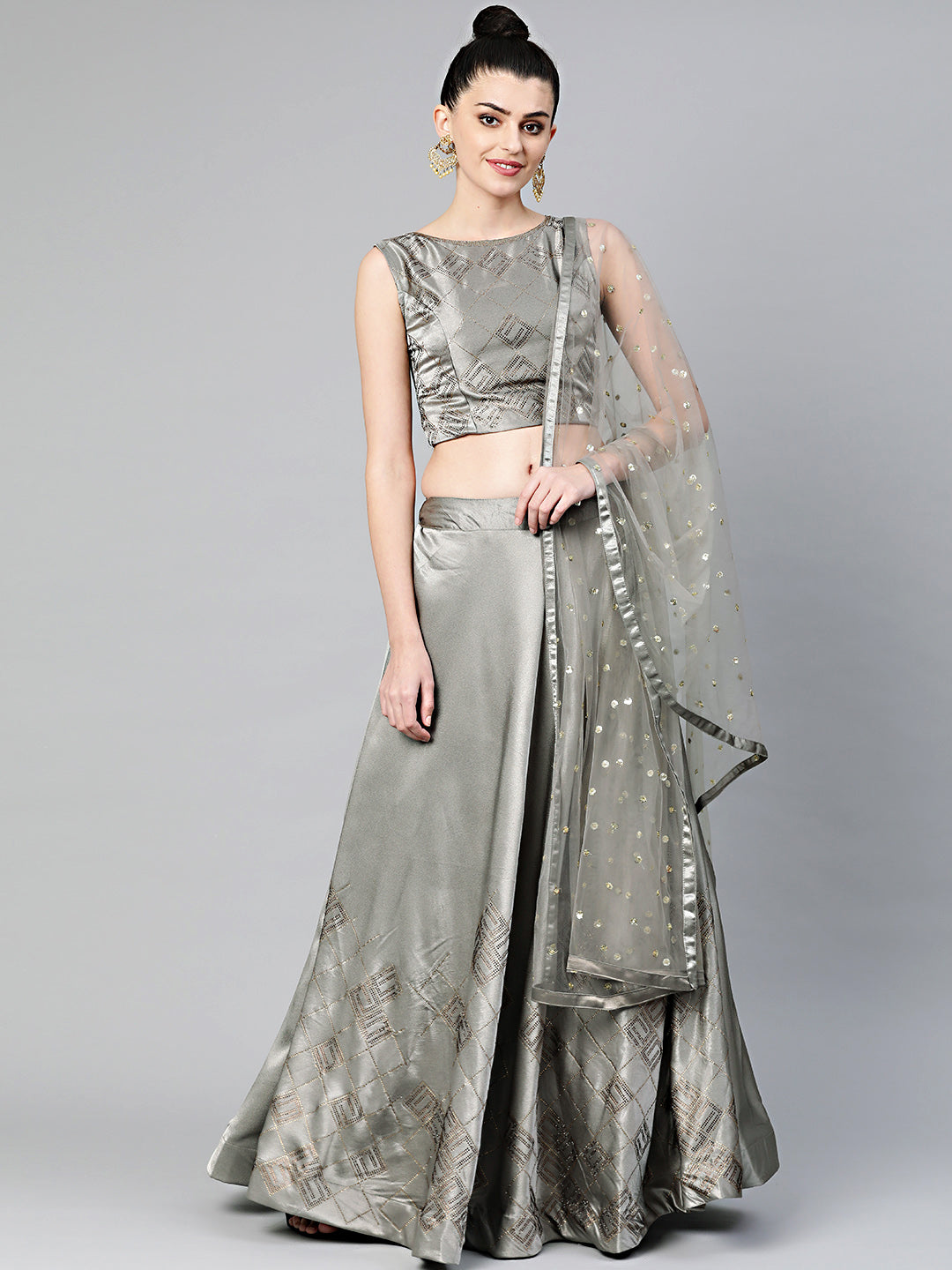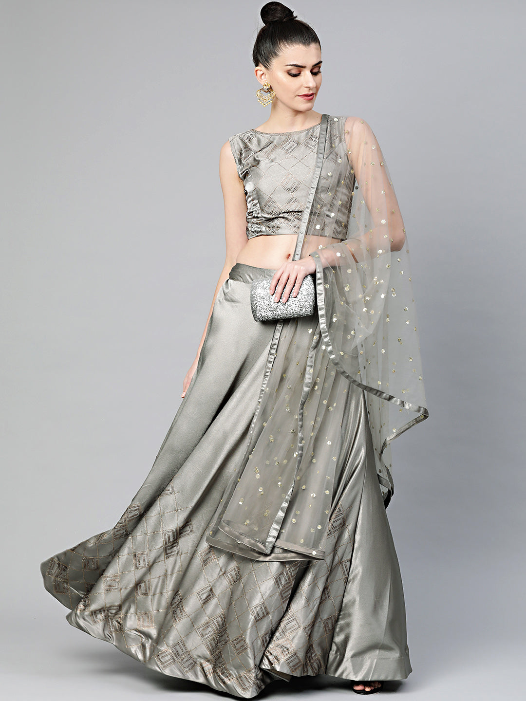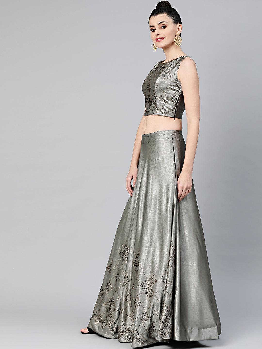 Crystal Embellished Crop Top Lehenga Choli in Geometric Pattern
