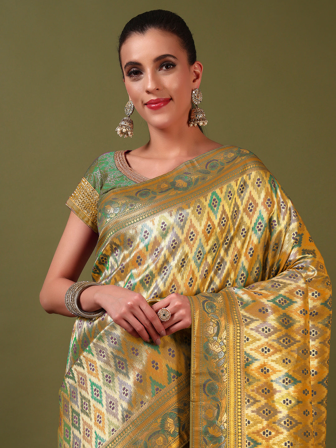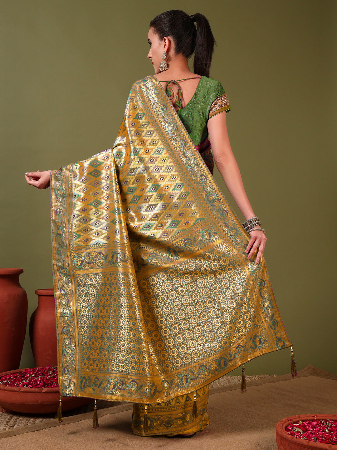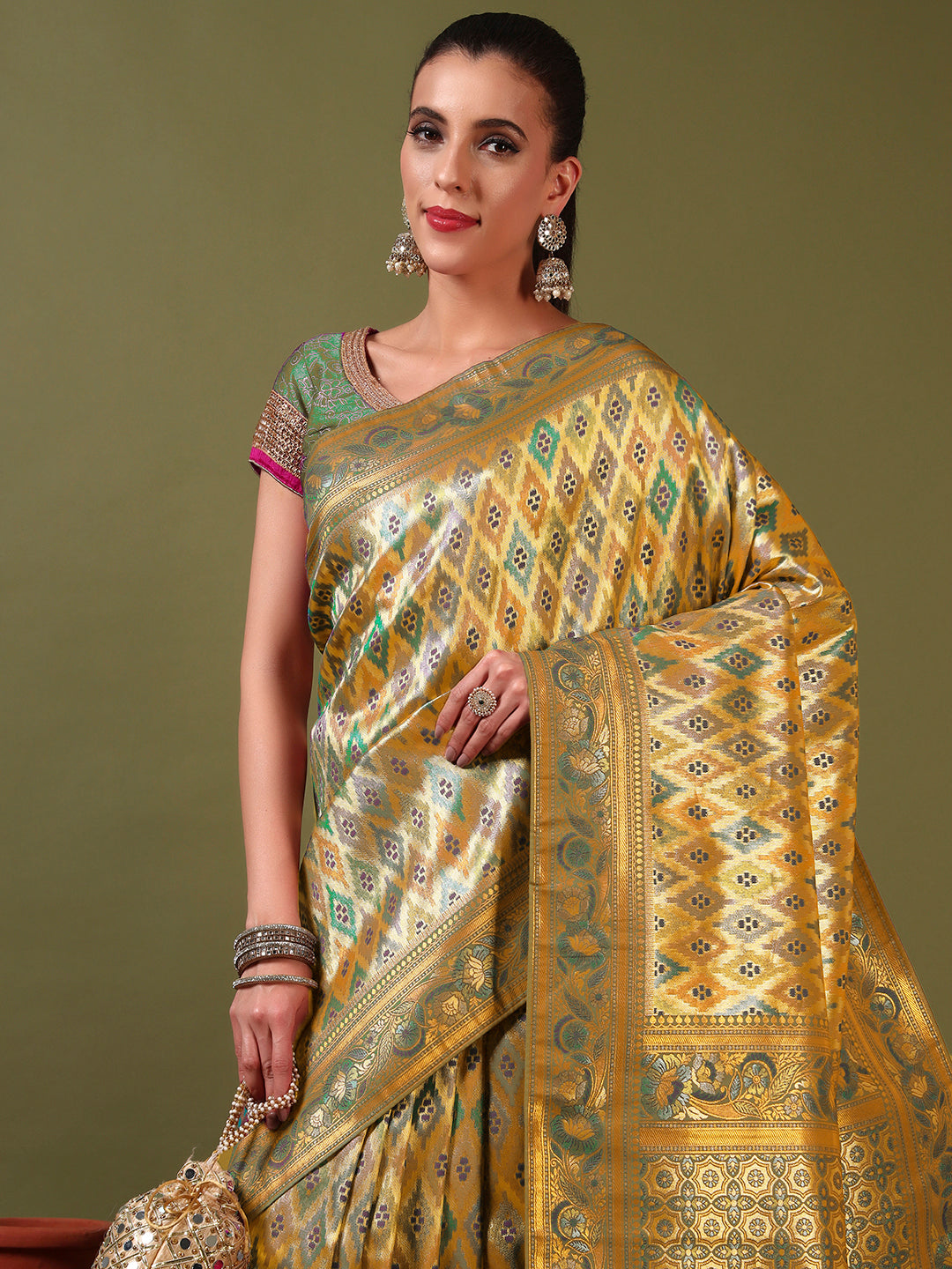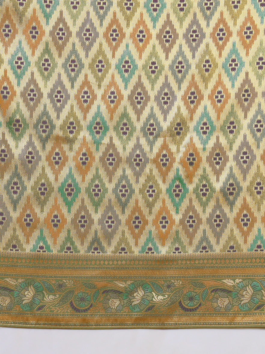 Traditional Brocade Handloom Mysore Silk Saree with Multicolor Meenakari Zari Weaving