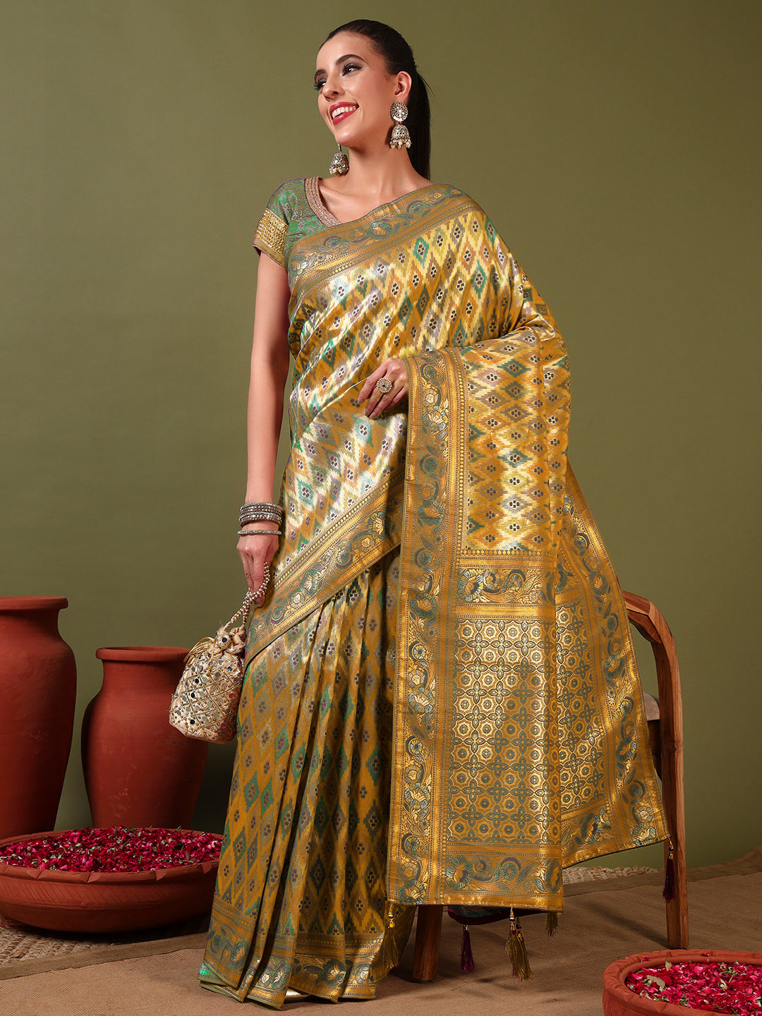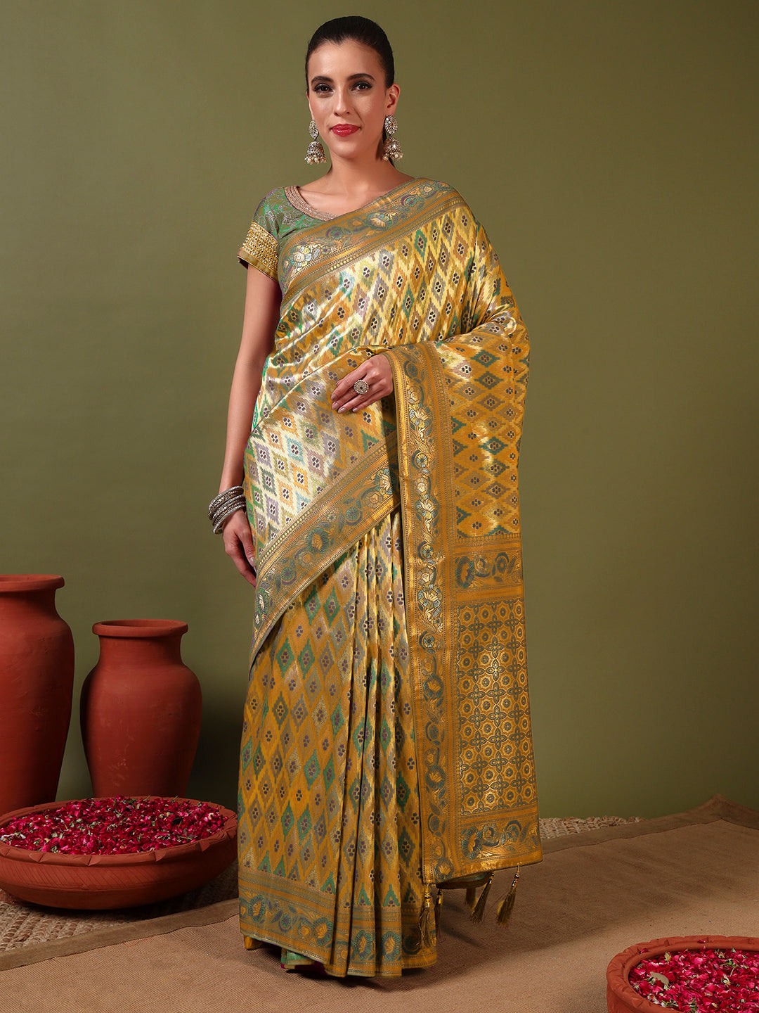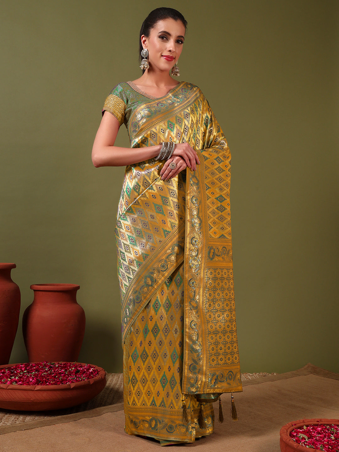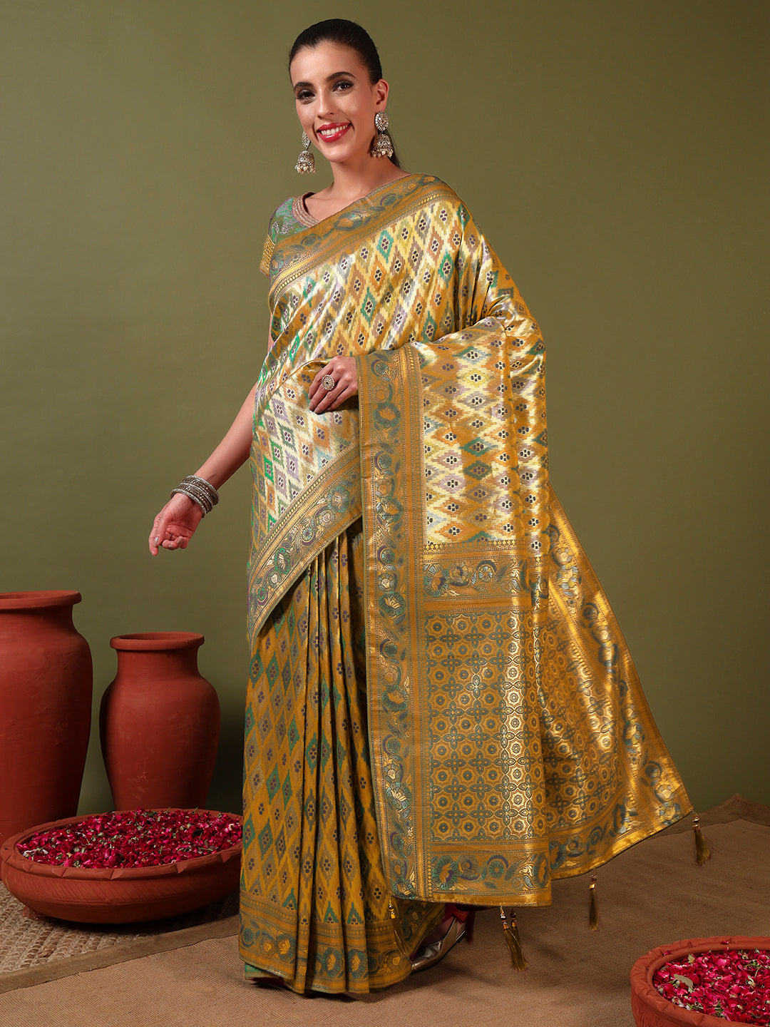 Traditional Brocade Handloom Mysore Silk Saree with Multicolor Meenakari Zari Weaving