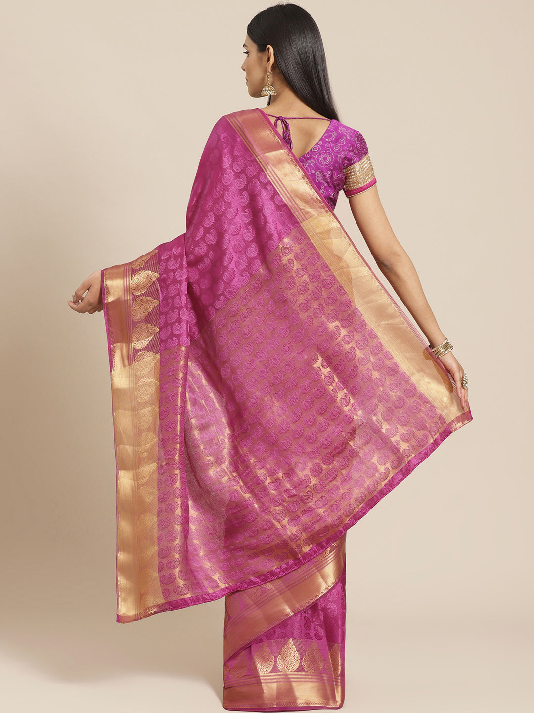 Banarasi Jamdani Embossed Handloom Saree with Paisley Resham Weaving & Woven Zari Border