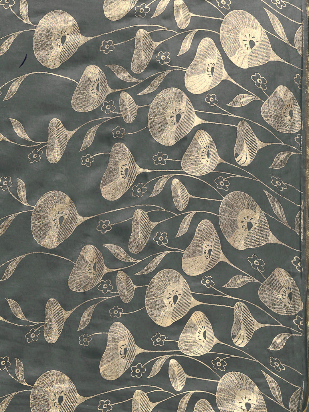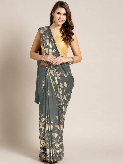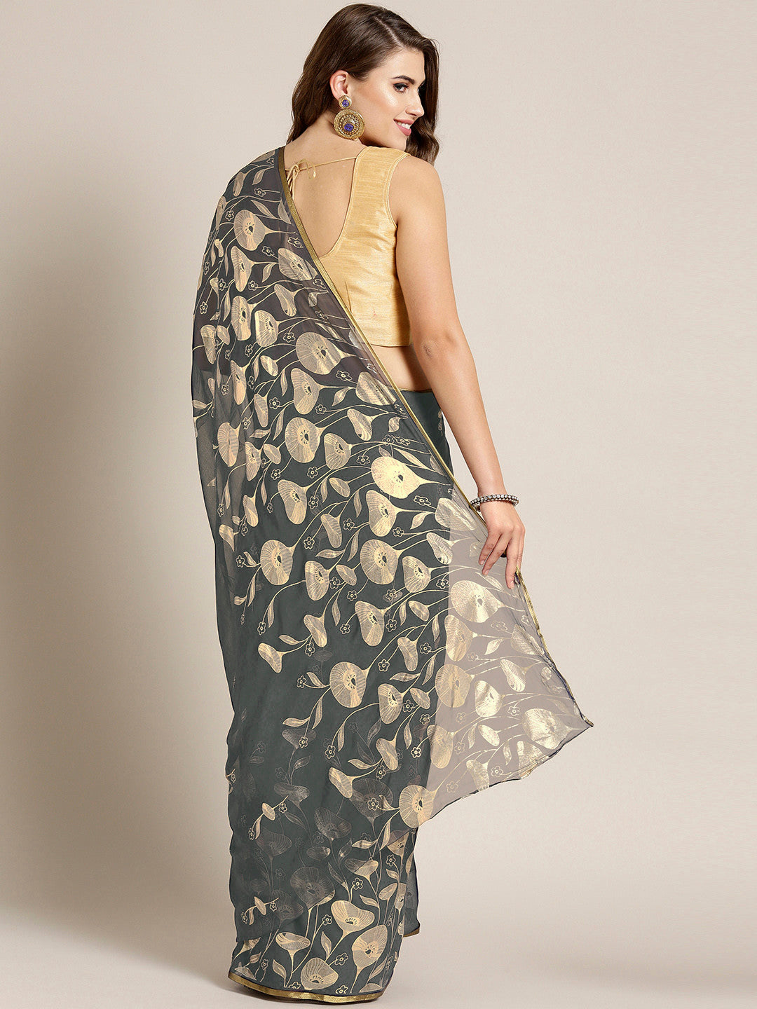 Grey Chiffon Hand-dyed Bright Neon's Saree with Gold Foil Printed Floral Tulip Pattern