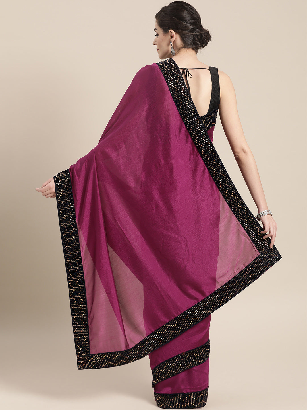 Raw Silk saree with Hand-Embellished Velvet Border