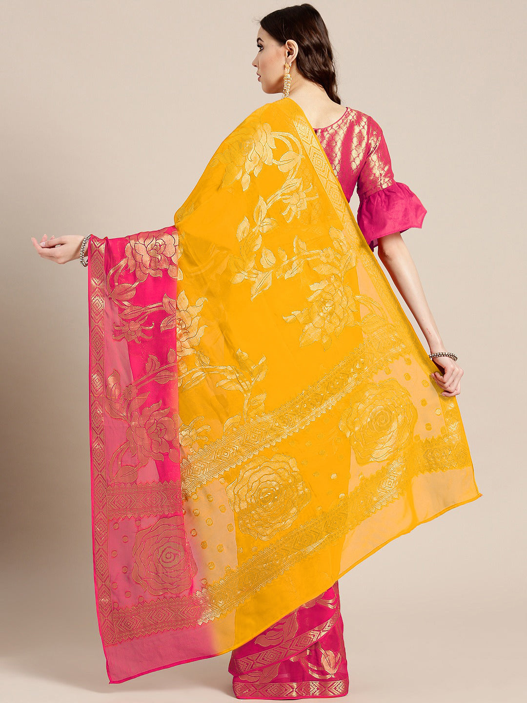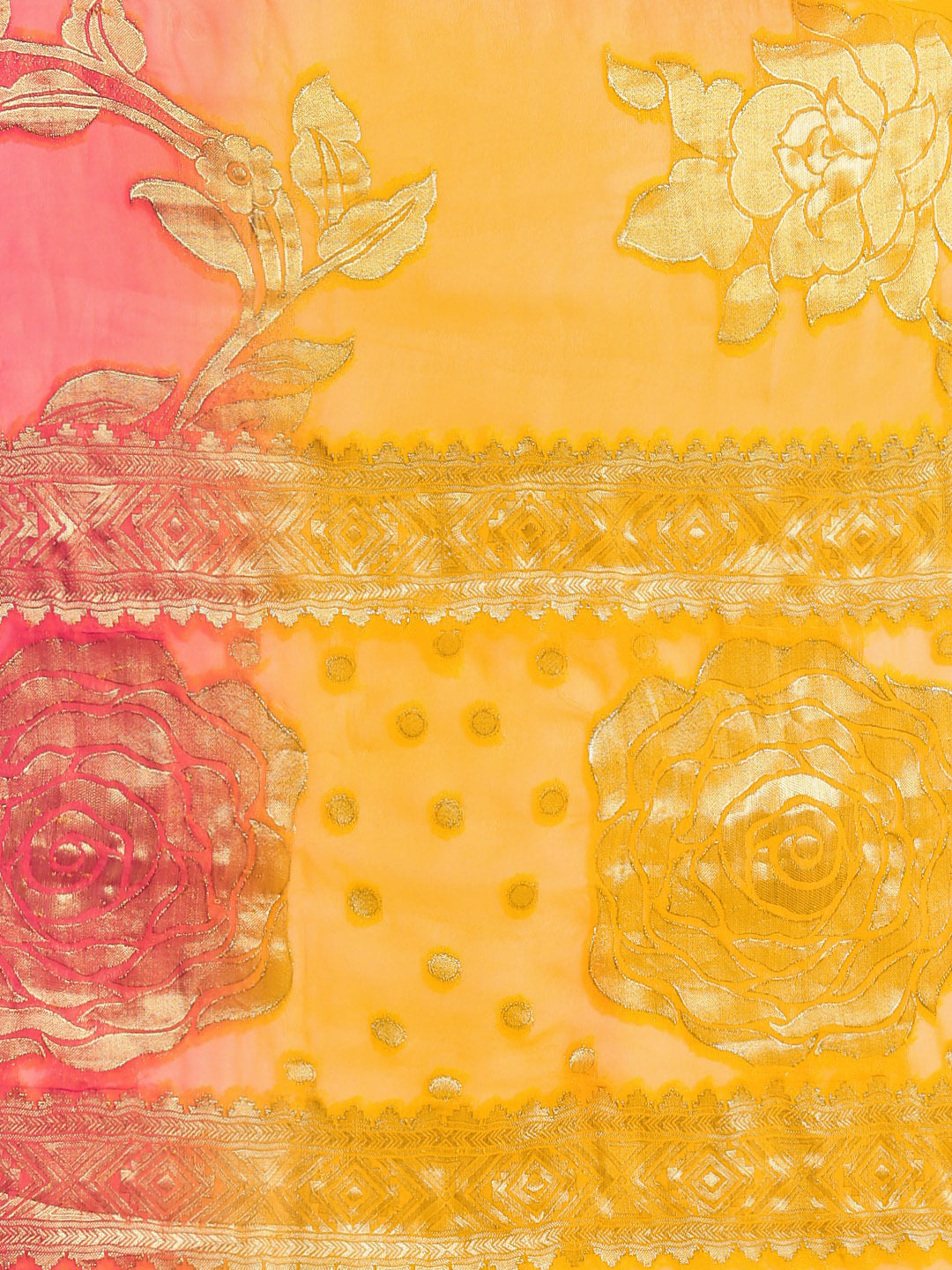 Yellow Pink Ombre Banarasi Khaddi Georgette Saree with Floral Weaving