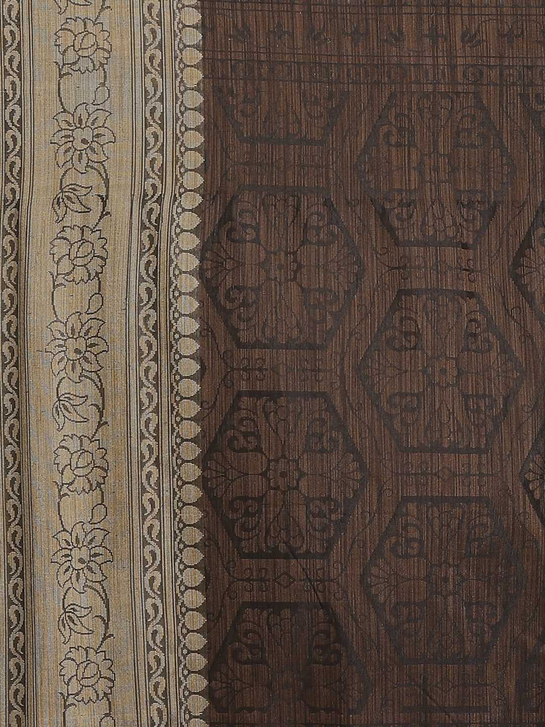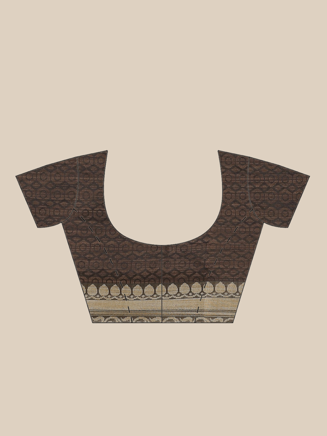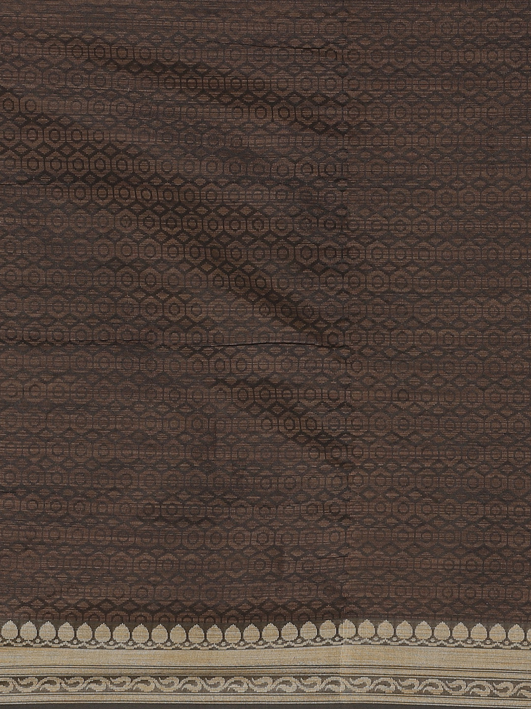 Black Banarasi Silk Self-Embossed Saree with Ethnic FLoral Motifs in Oxidised Zari