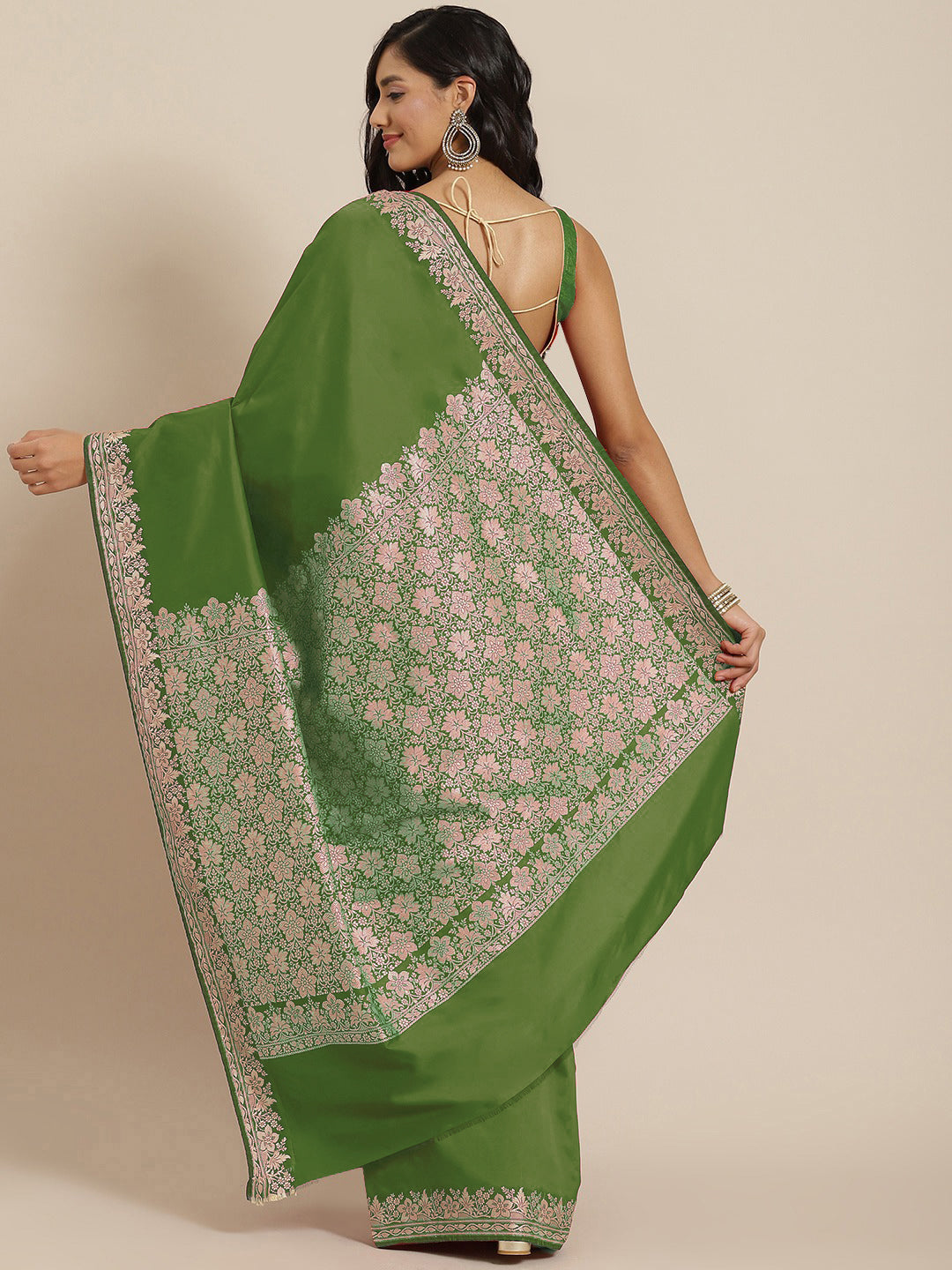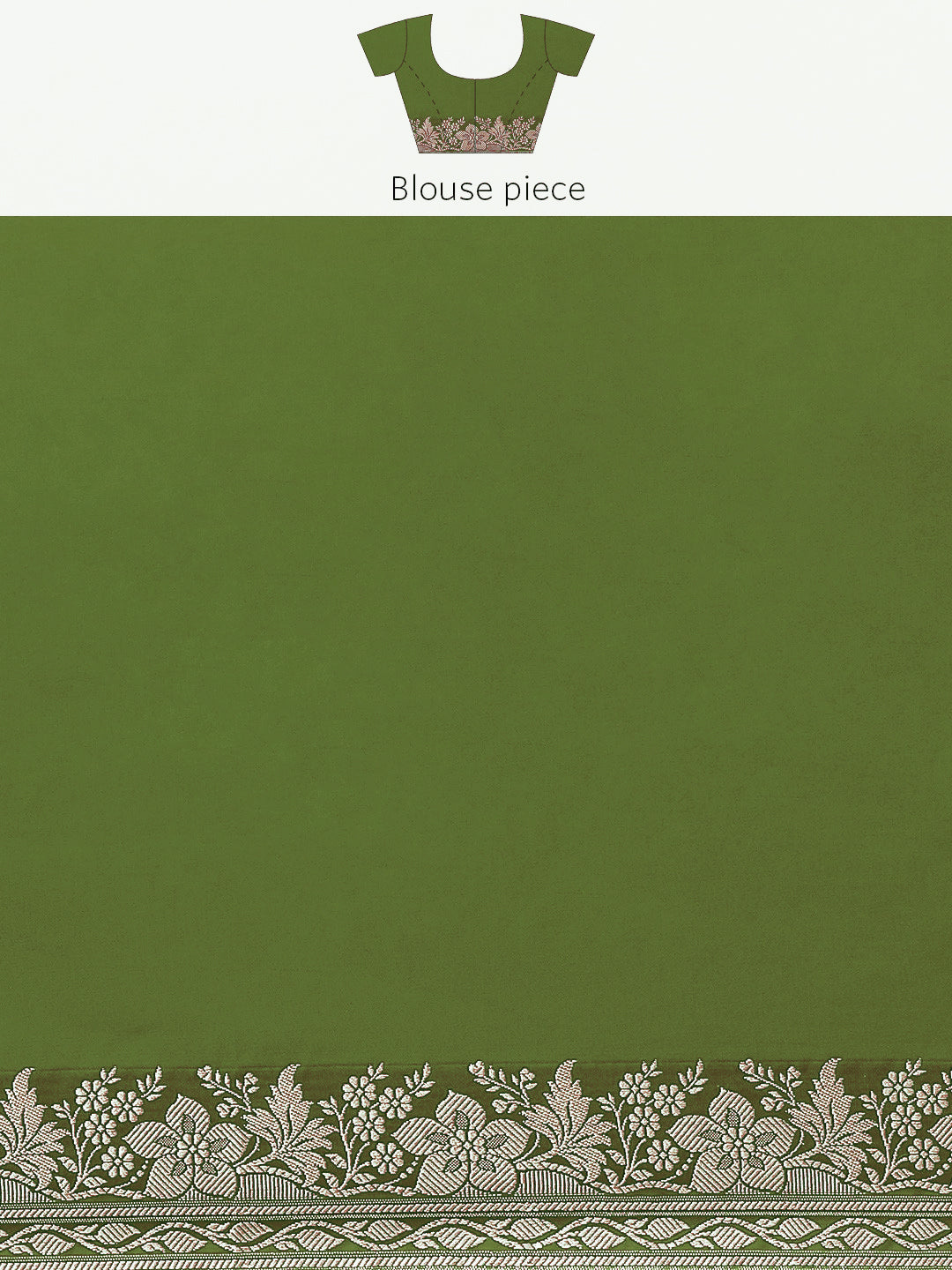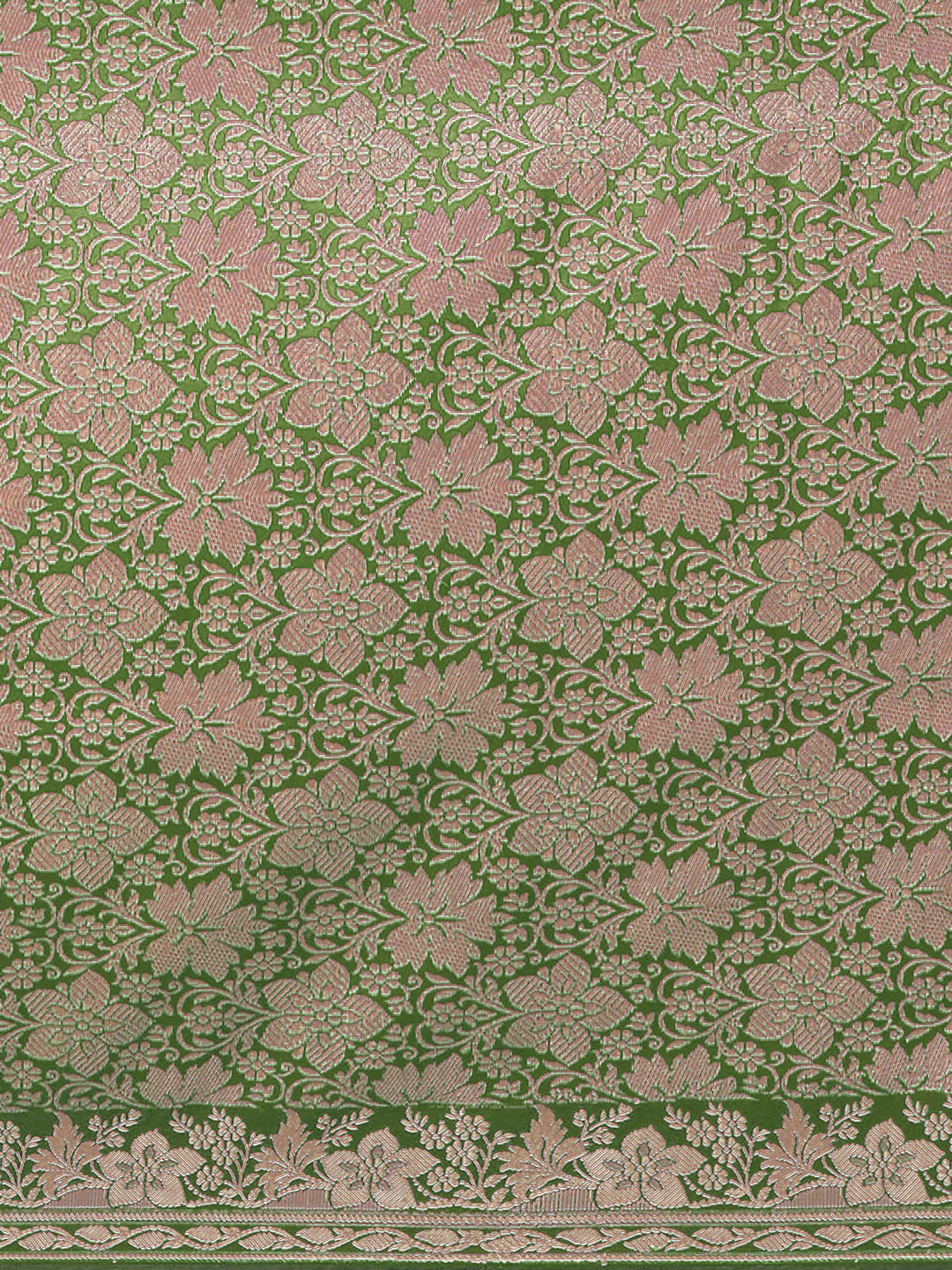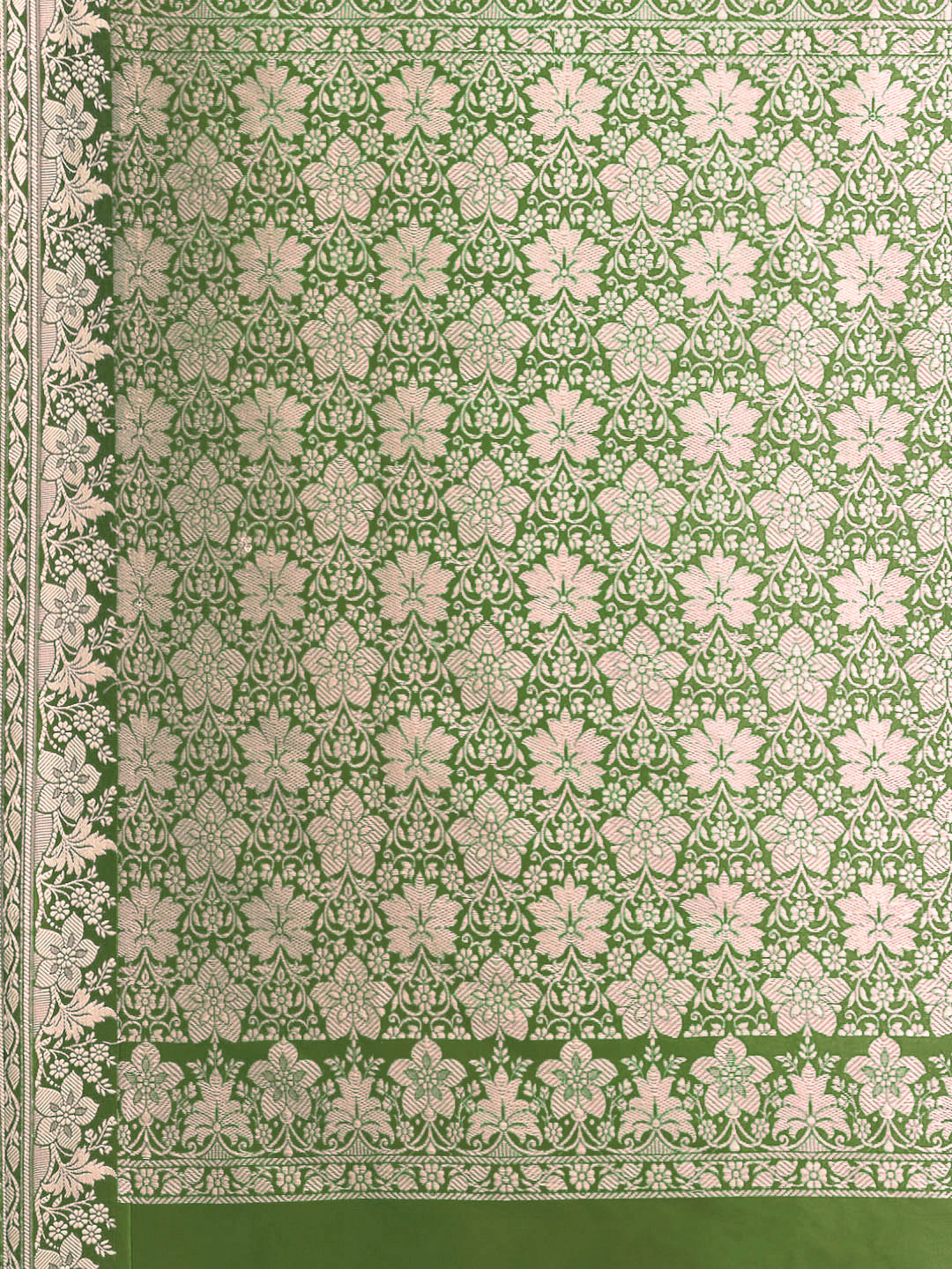 Mehndi Green Solid Banarasi Silk Saree with Zari Woven Floral Border