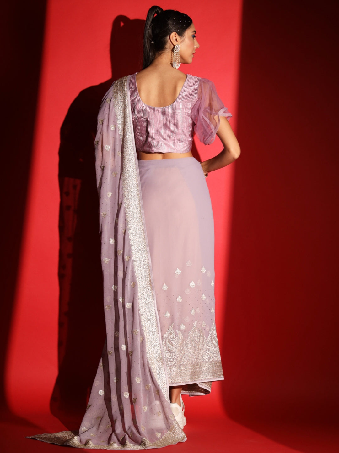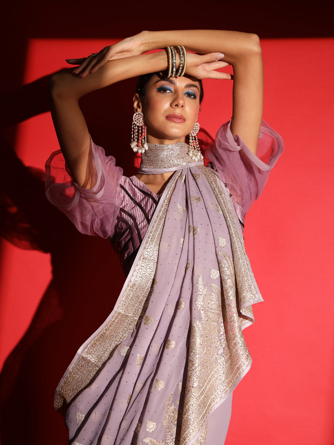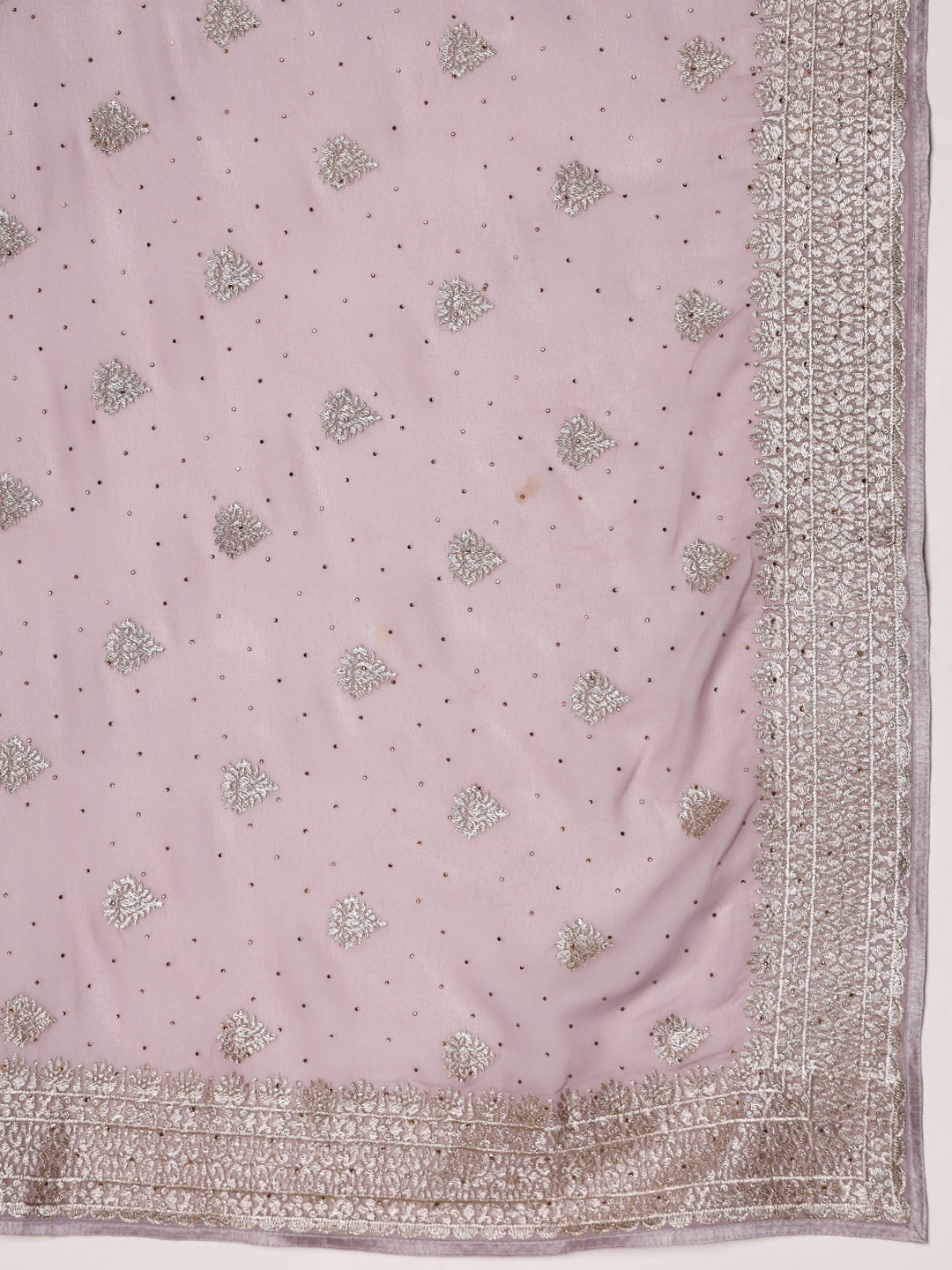 Pastel Zari Embroidered & Crystal Studded Georgette Party Wear Saree