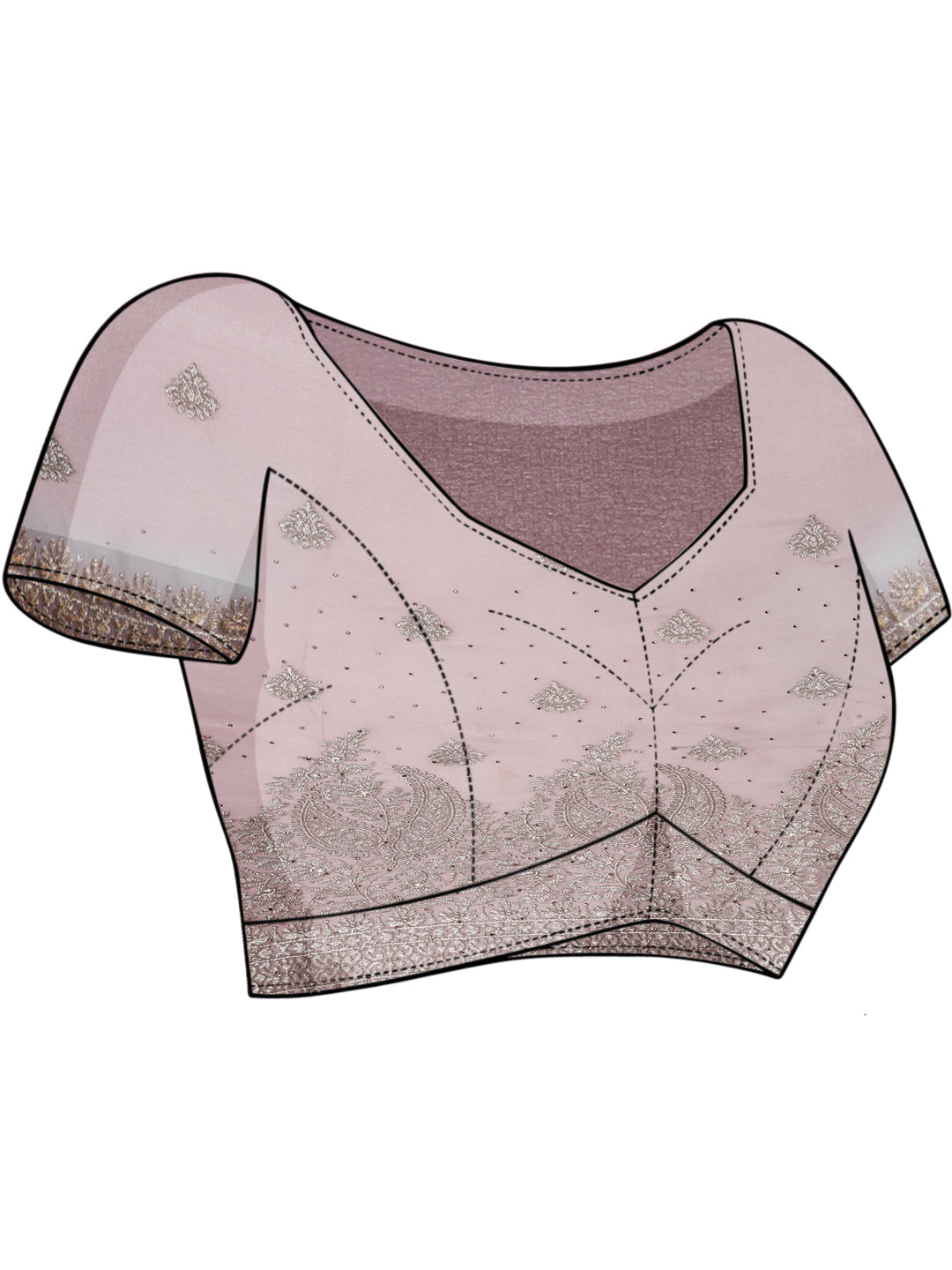 The CAD image gives a detailed look of the actual blouse piece that comes with this saree. The blouse used by the model in the pictures is only for styling purpose.