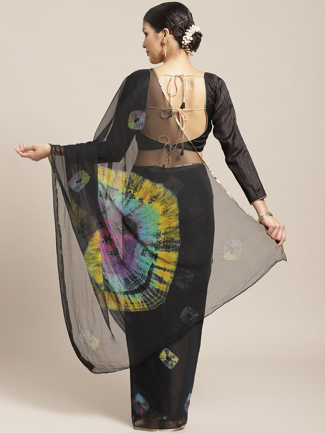 The CAD image gives a detailed look of the actual blouse piece that comes with this saree. The blouse used by the model in the pictures is only for styling purpose.