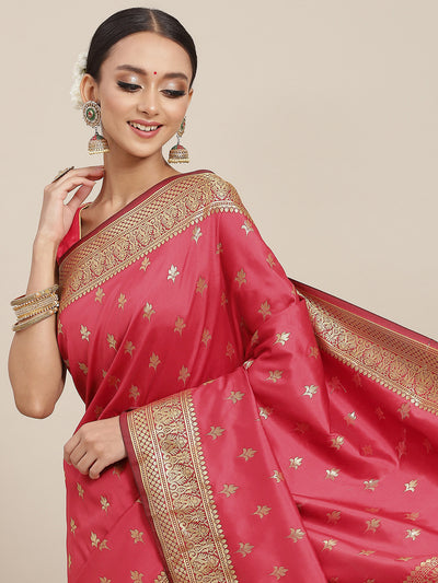 Zari Woven Mysore Silk Bridal Handloom Saree with Floral motifs