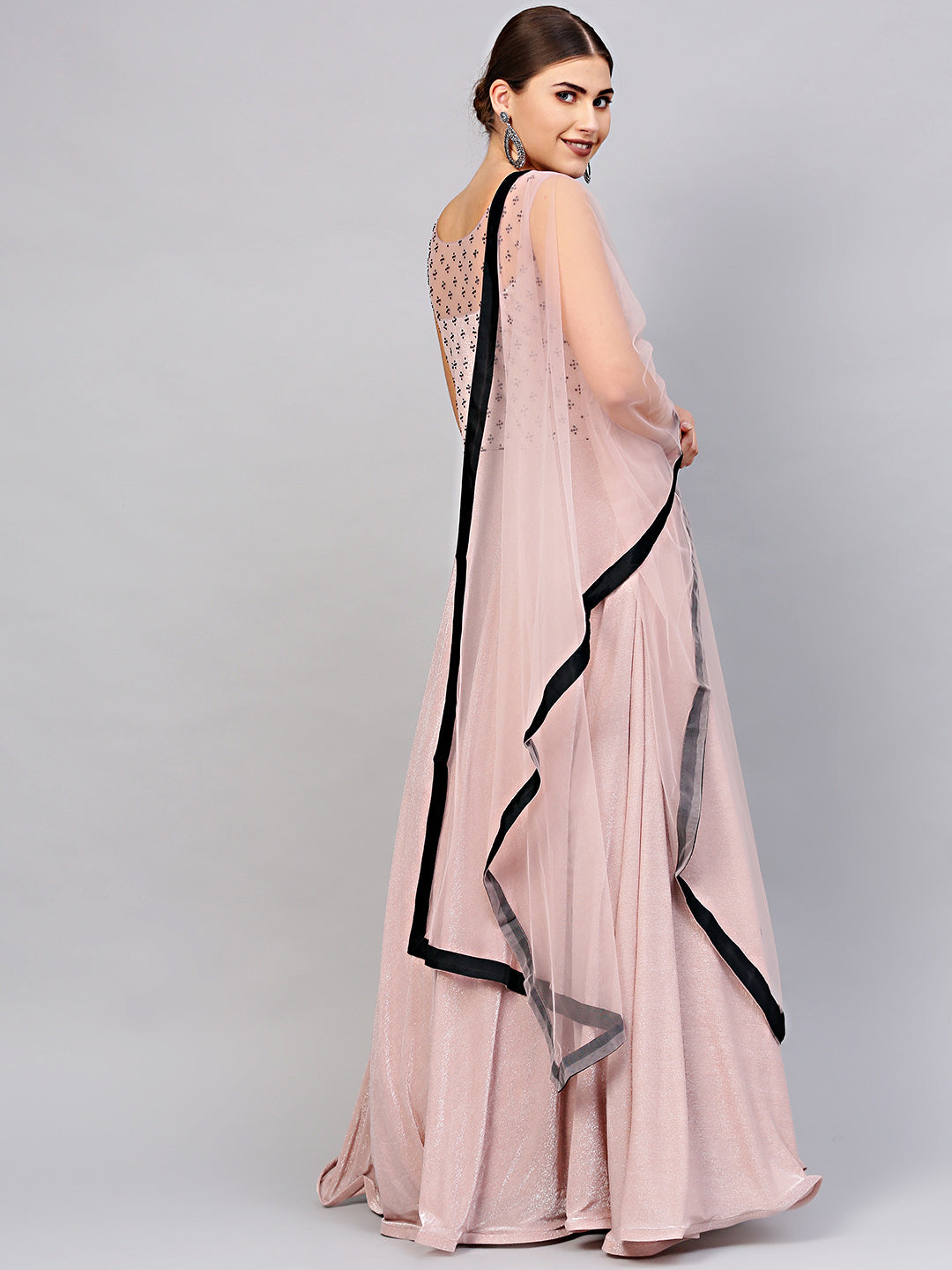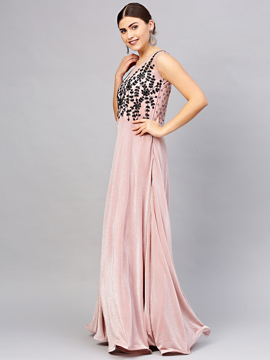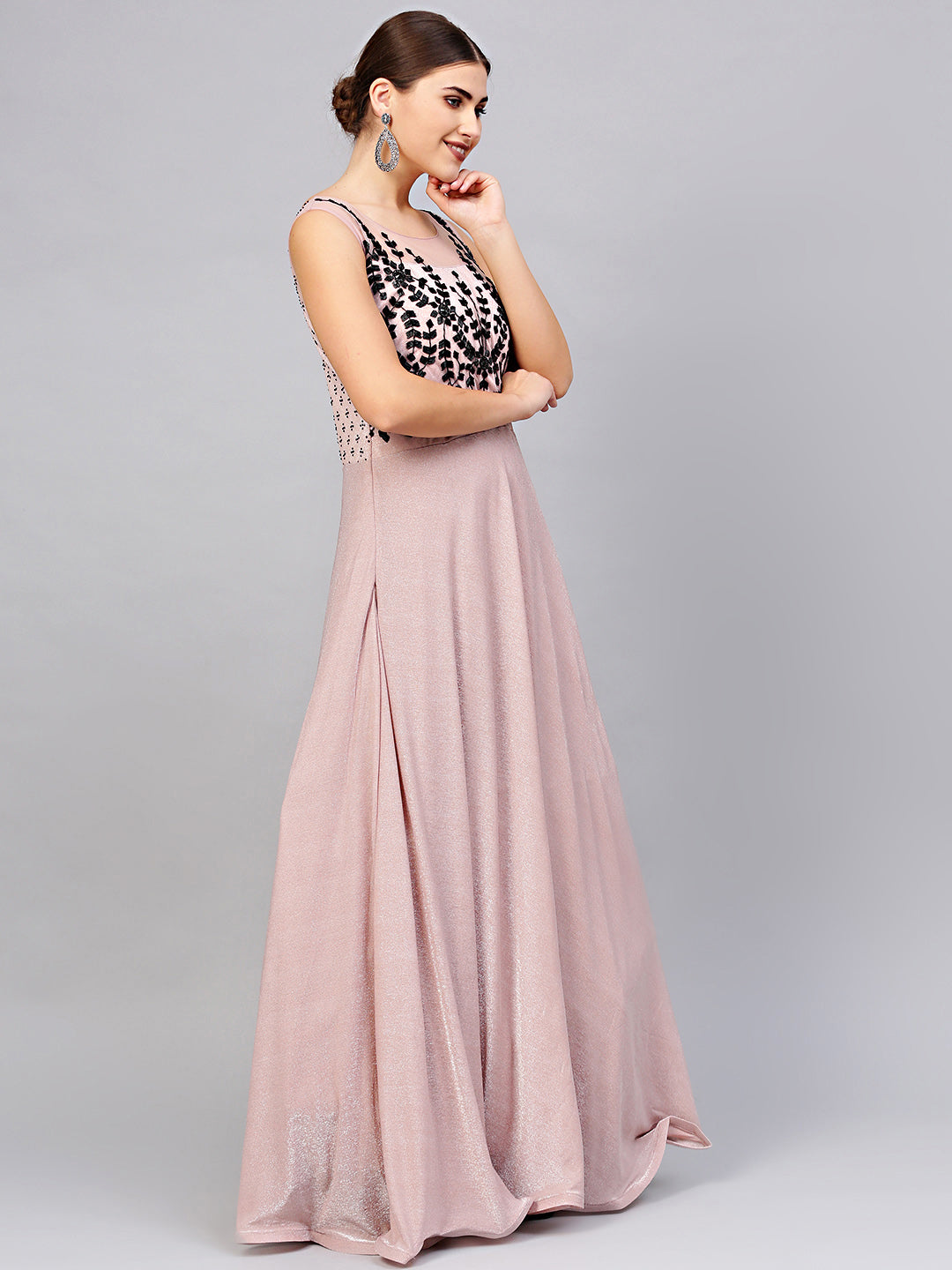Lycra Cocktail Gown with Contrast Black Embroidery
