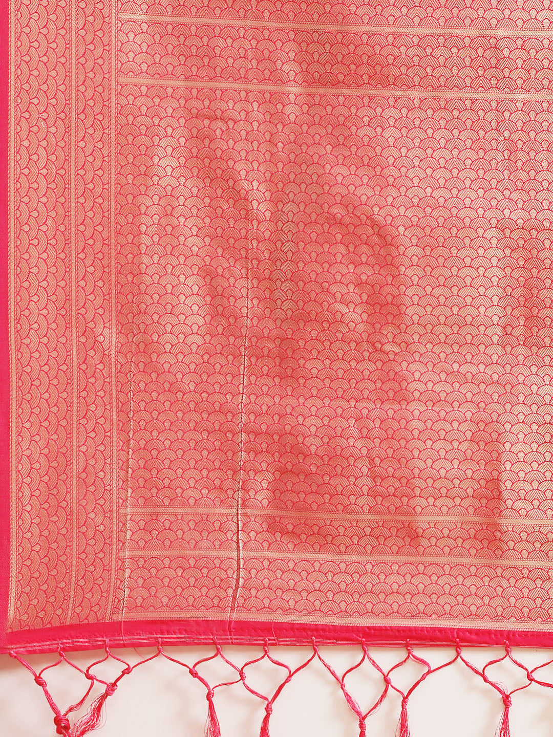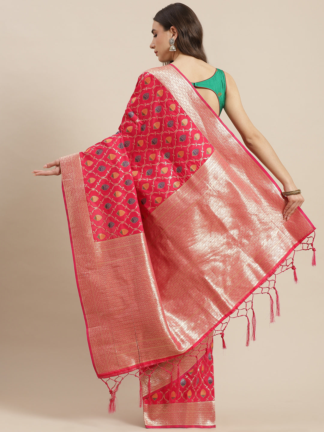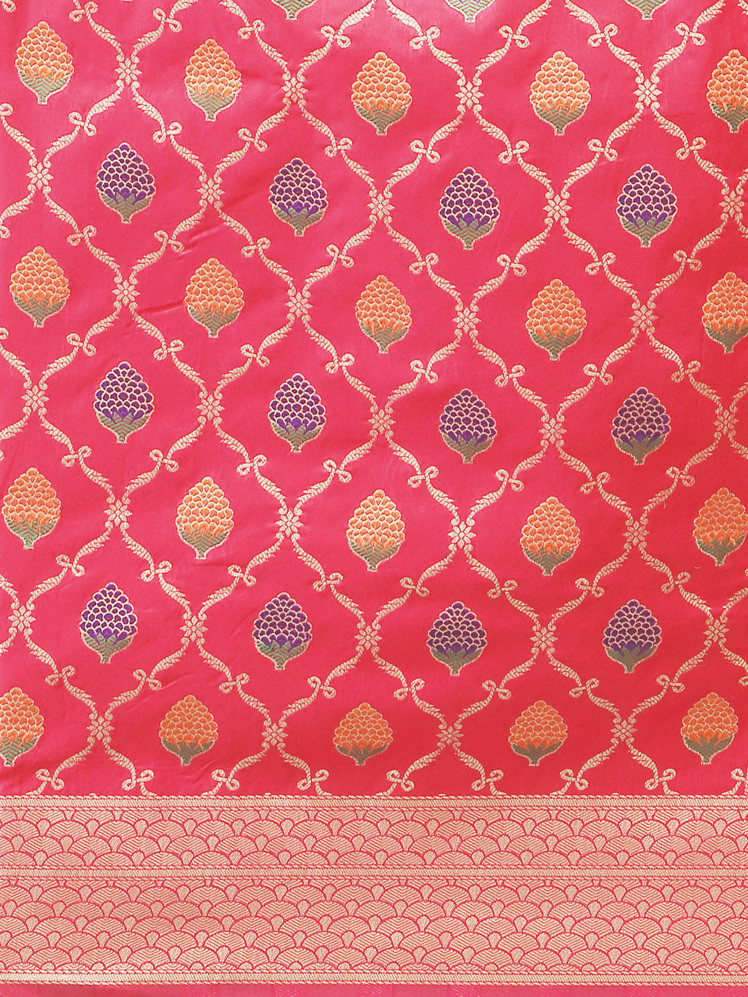 Magenta Silk Meenakari Banarasi Saree Embellished With Ethnic Motifs