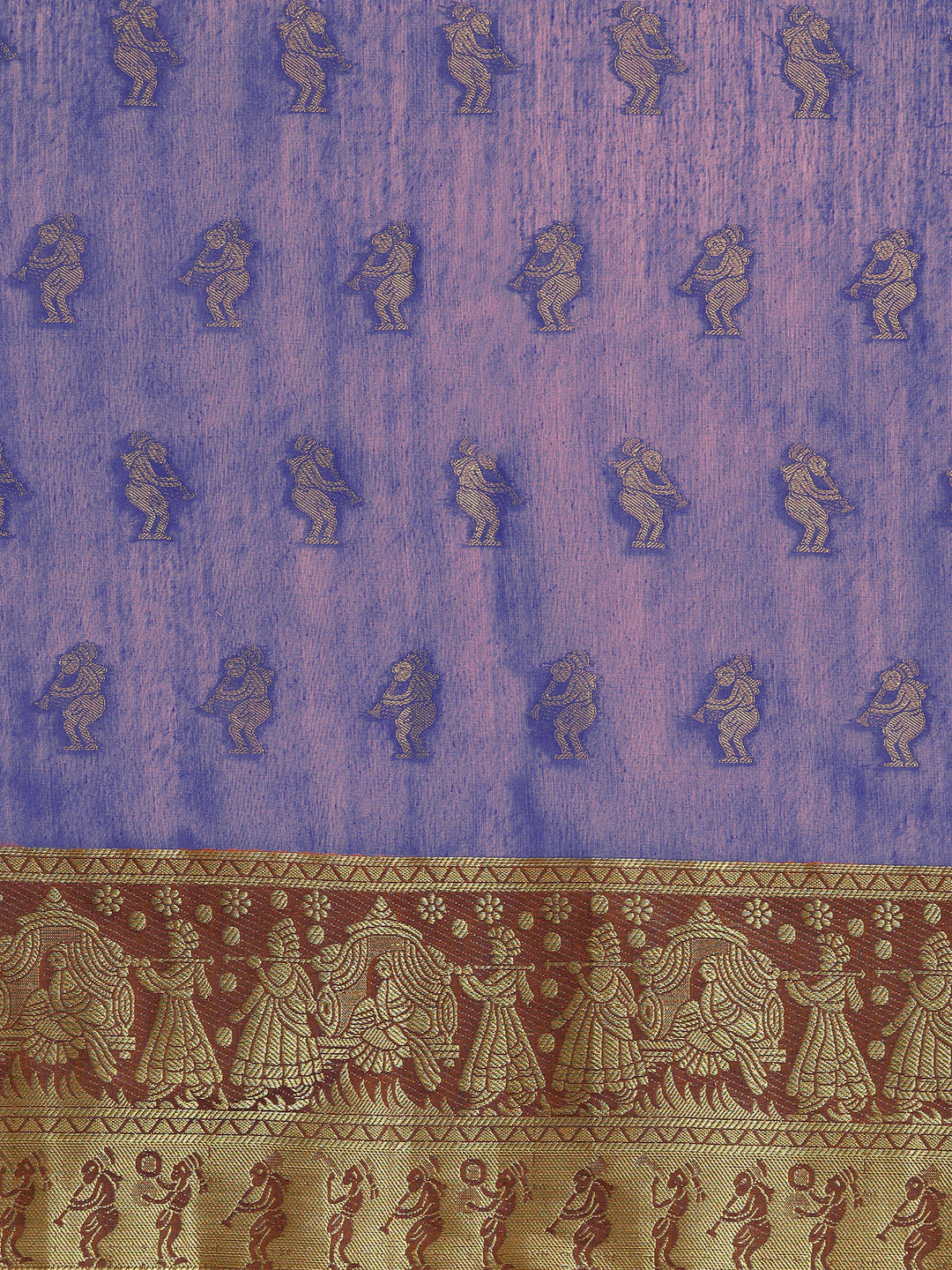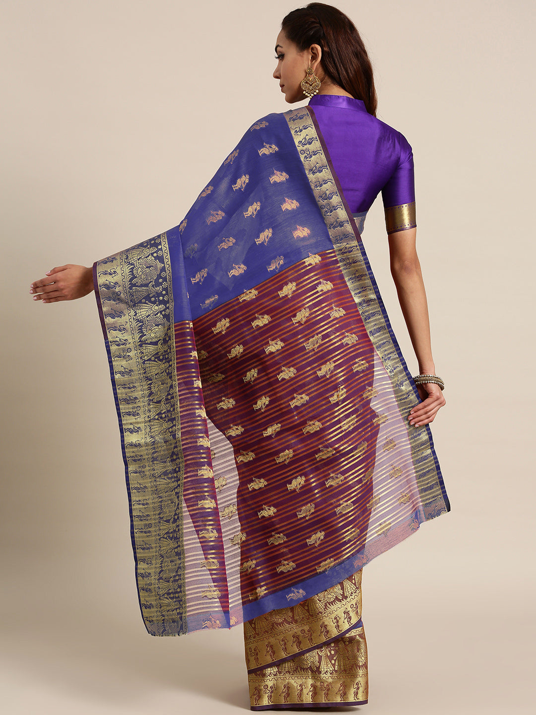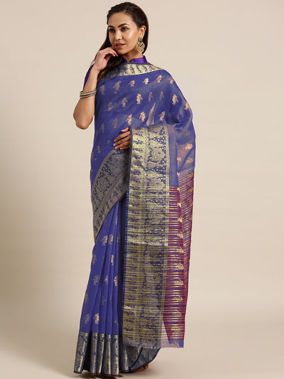 Banarasi Silk Princess Blue Handloom Saree with Ethnic Zari Mughal Motif and Heavy Pallu