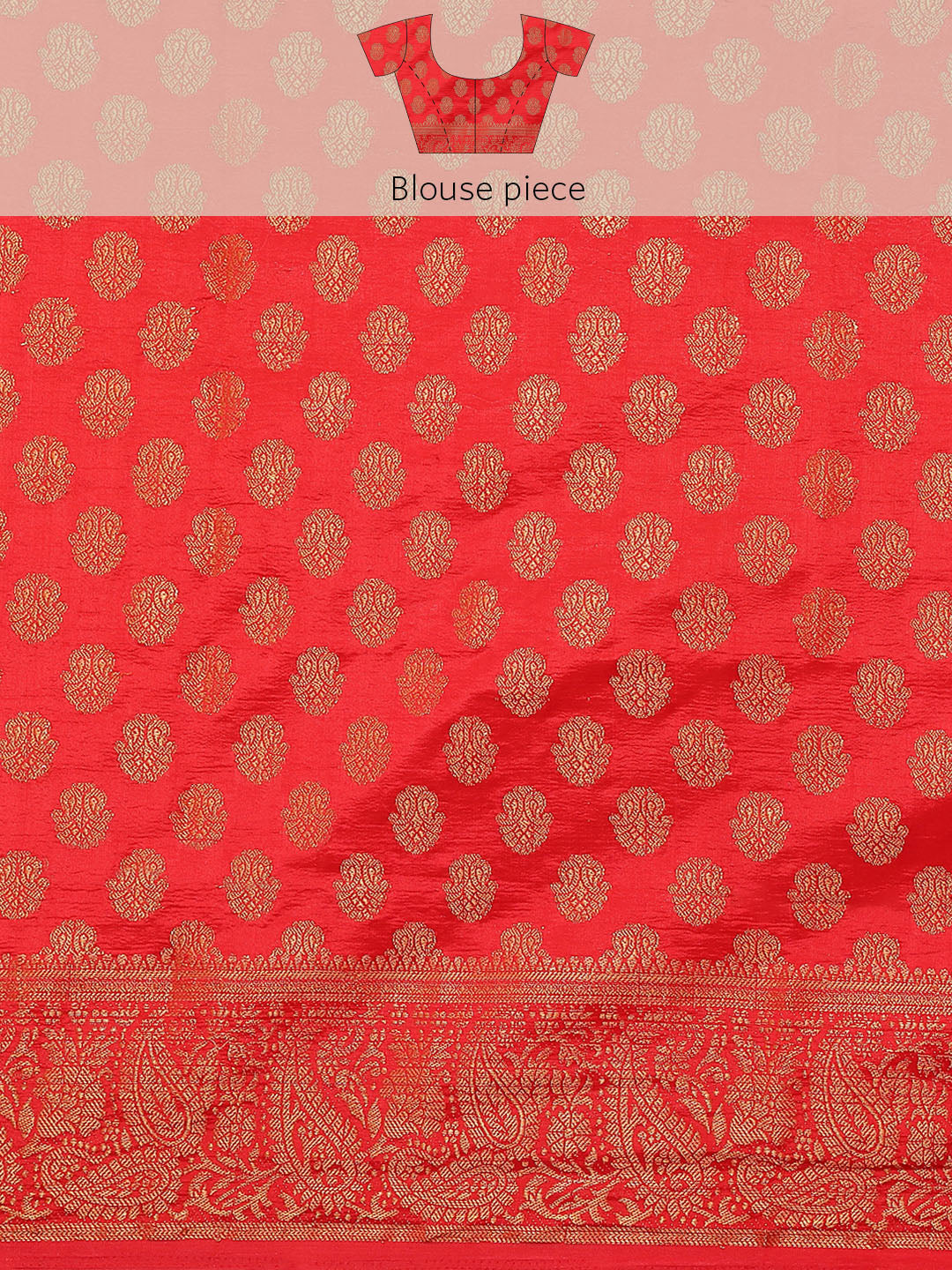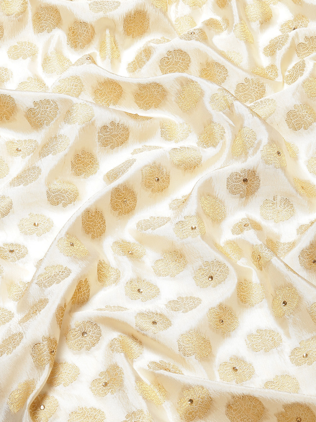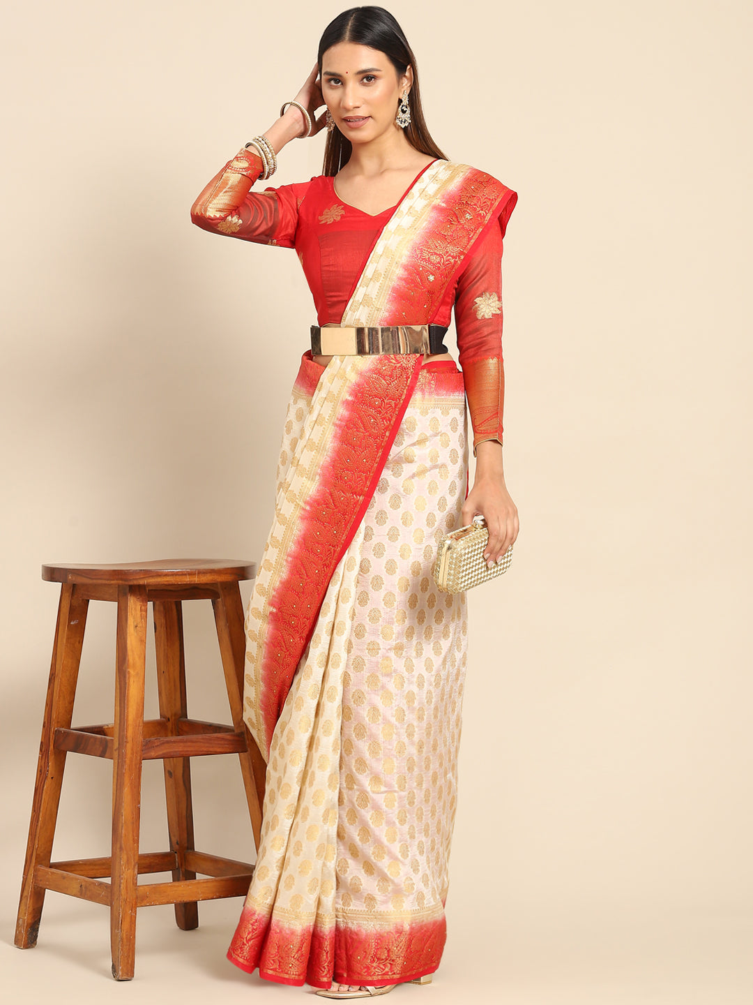 Cream Red Banarasi Paisley Motifs Stone Embellished Silk Saree