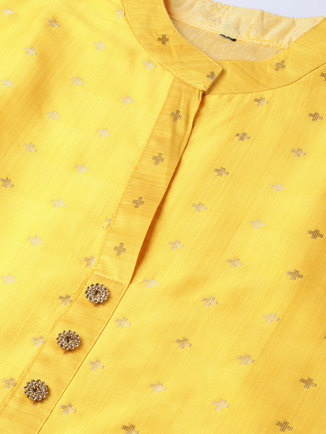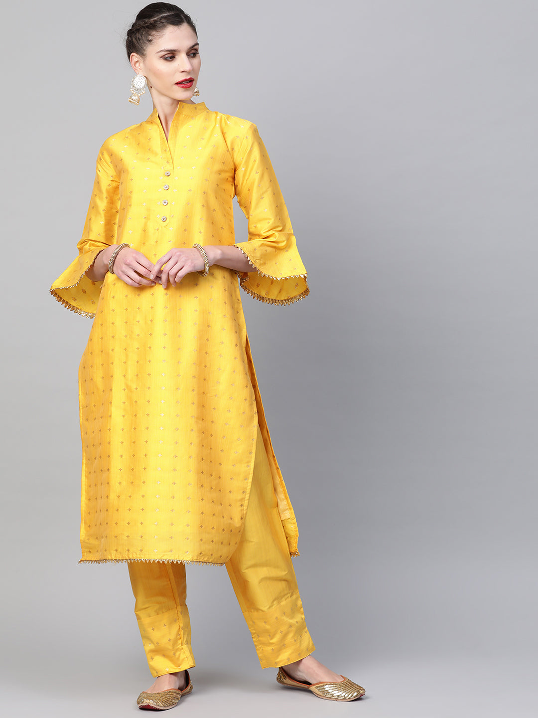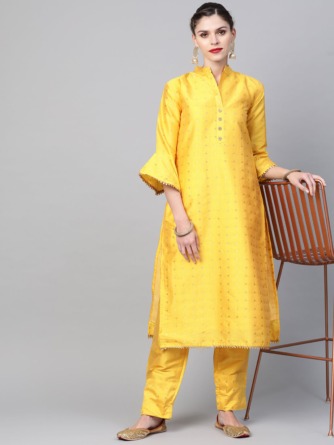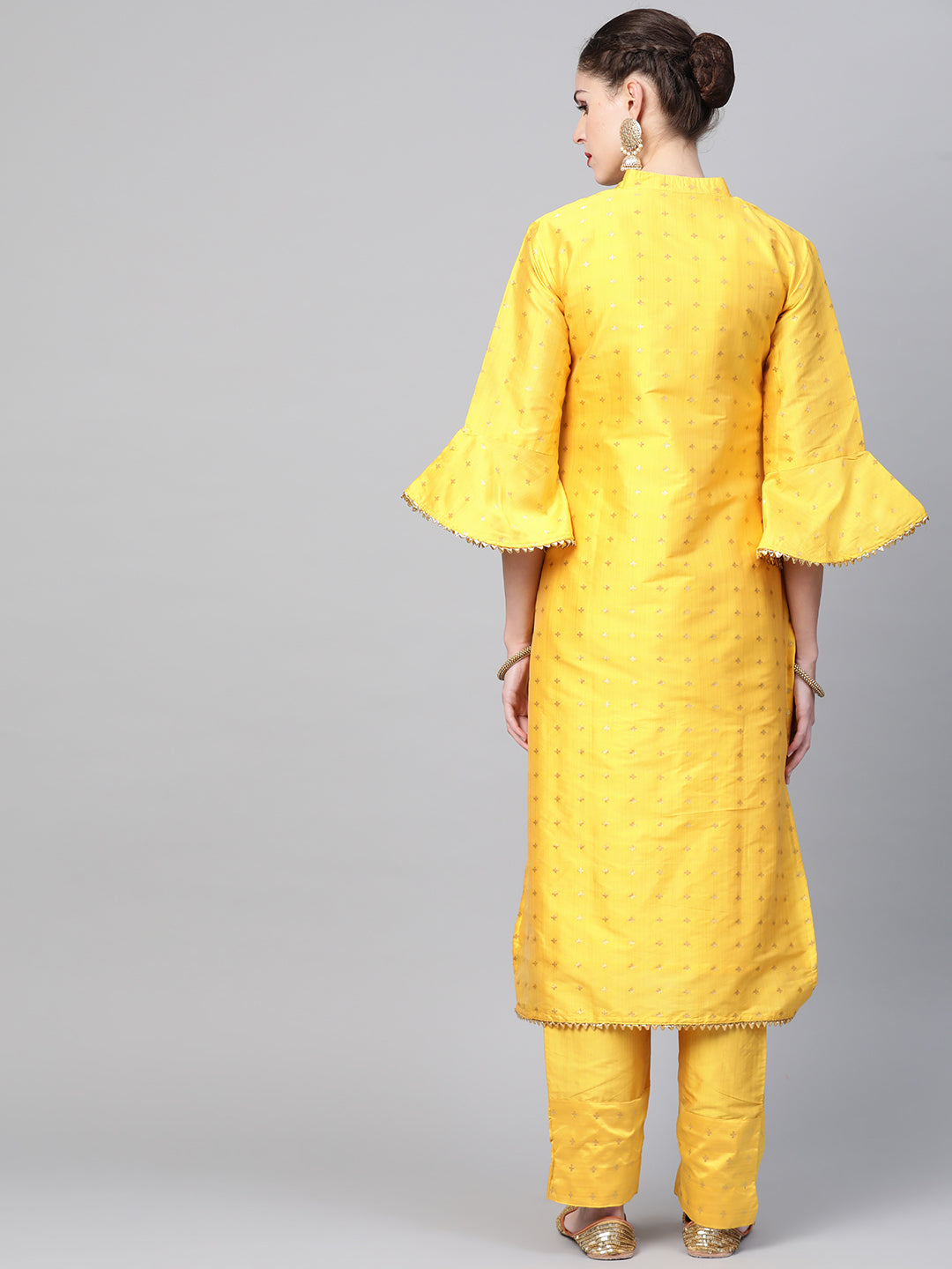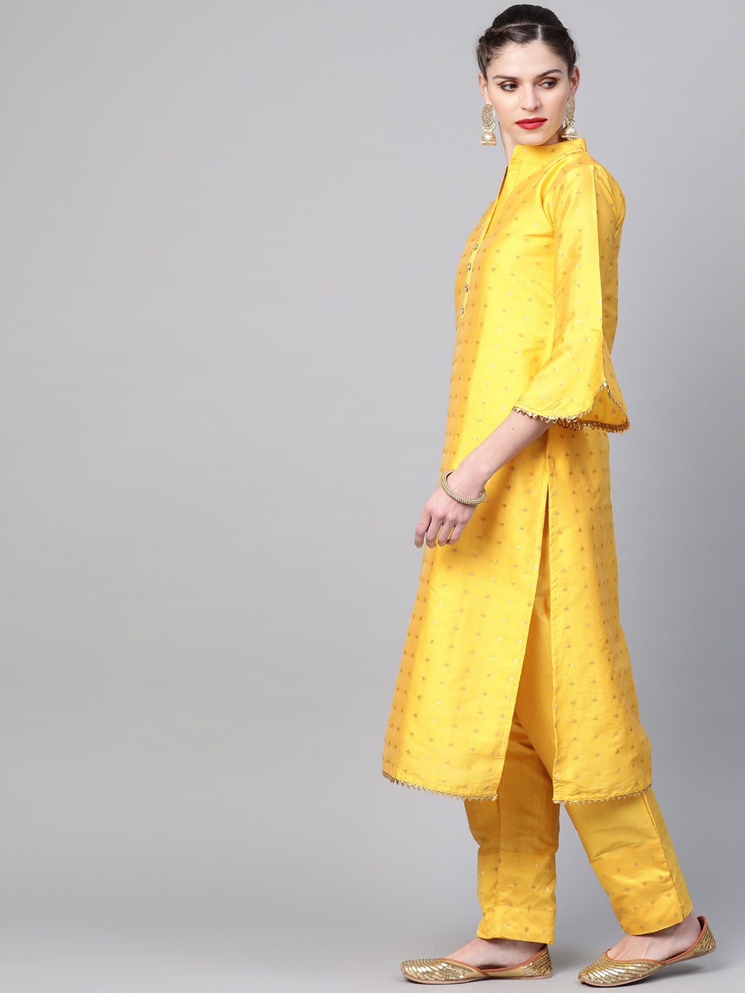 Gota Embellished Kurta Pants Set with Zari Weaving